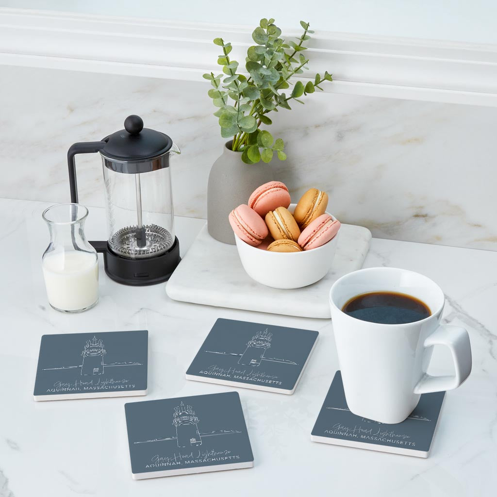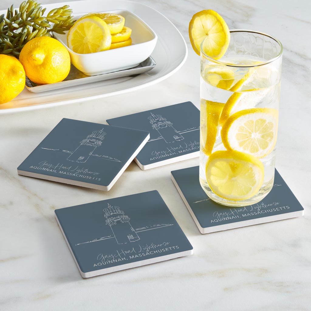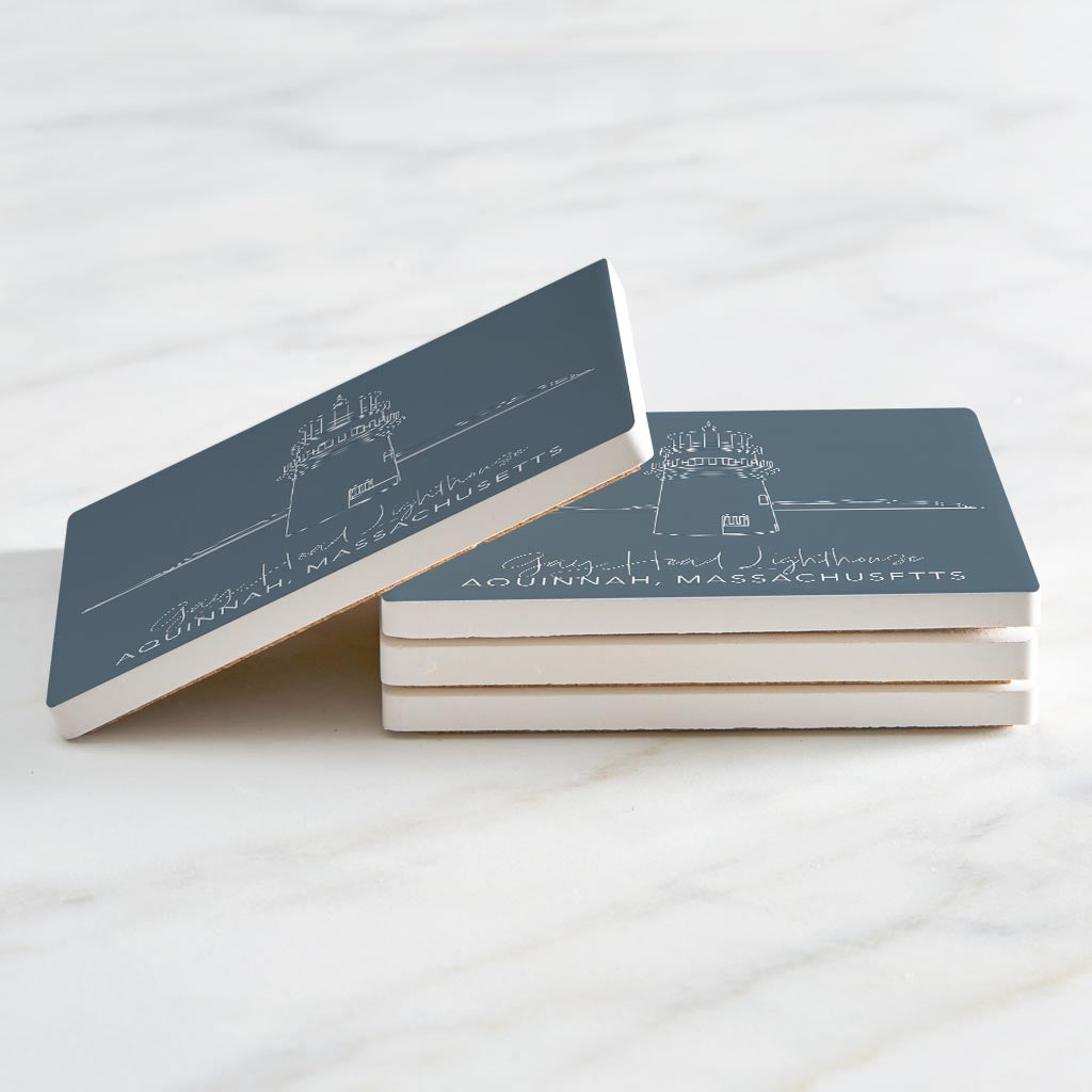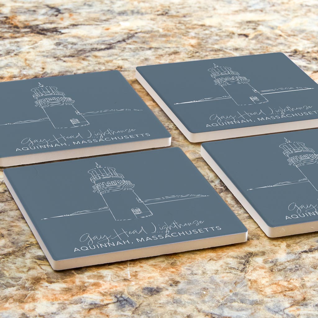 Gay Head Lighthouse Muted Coastal| Absorbent Coasters | Set of 4 | Min 2
