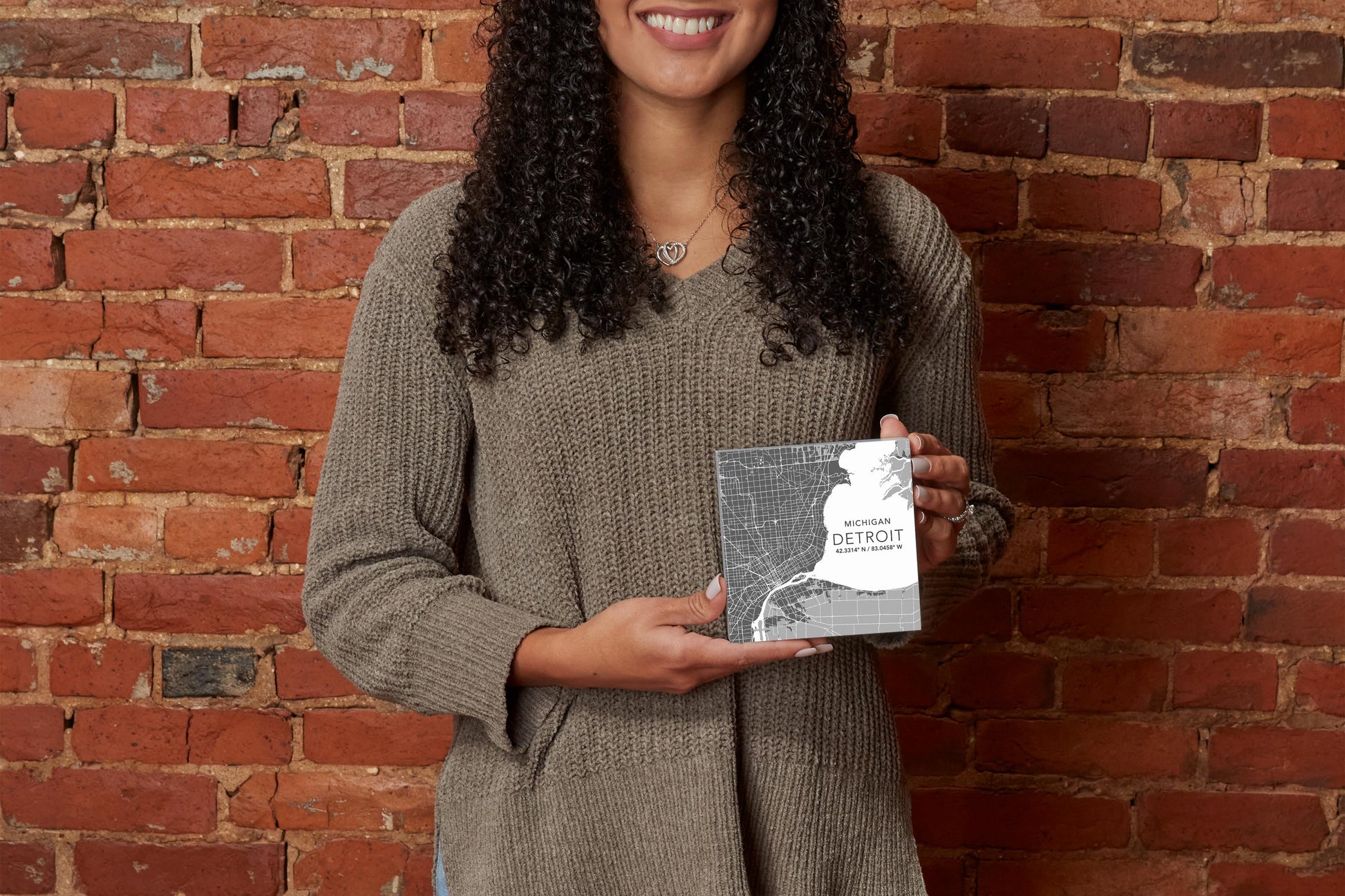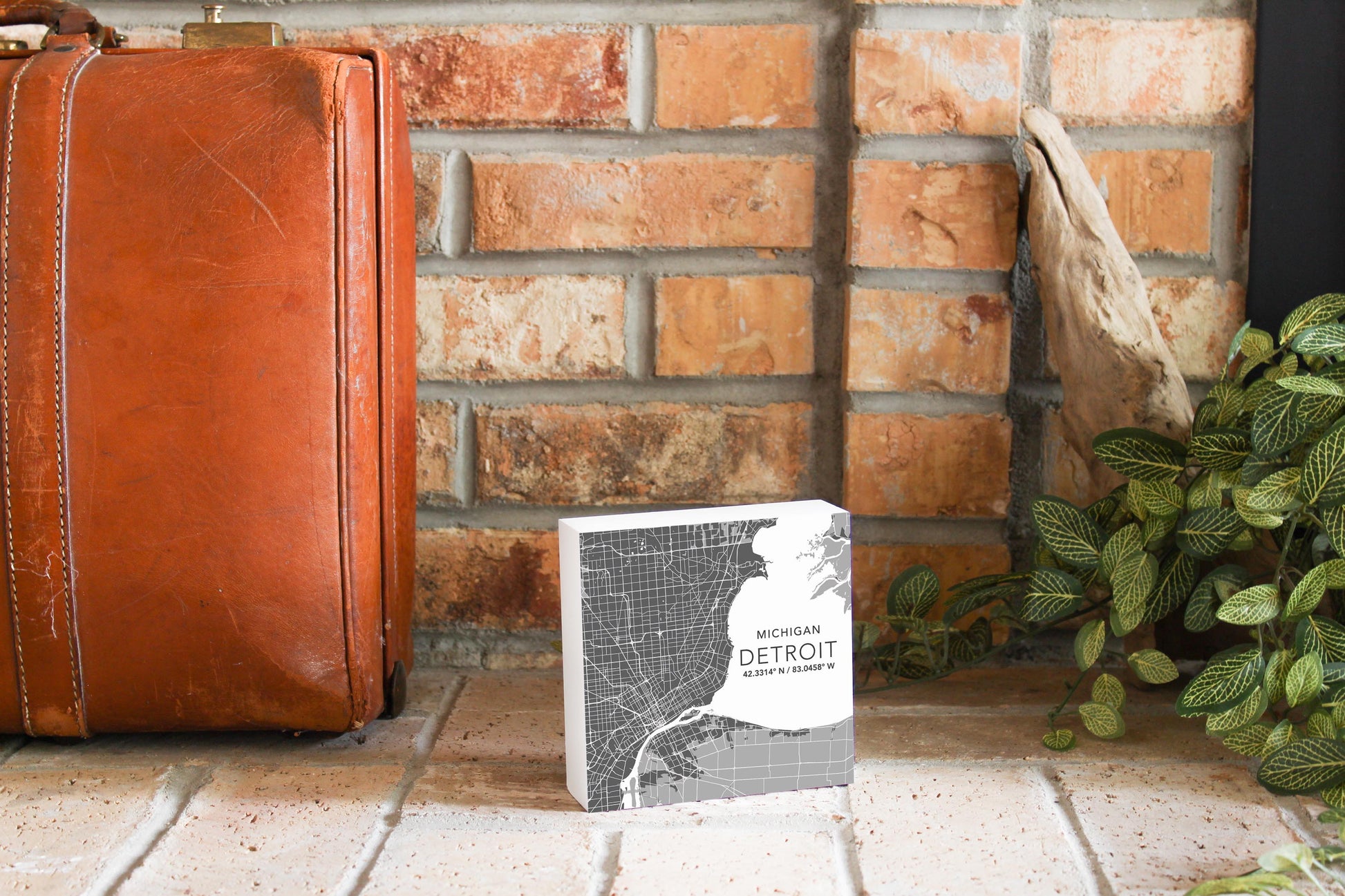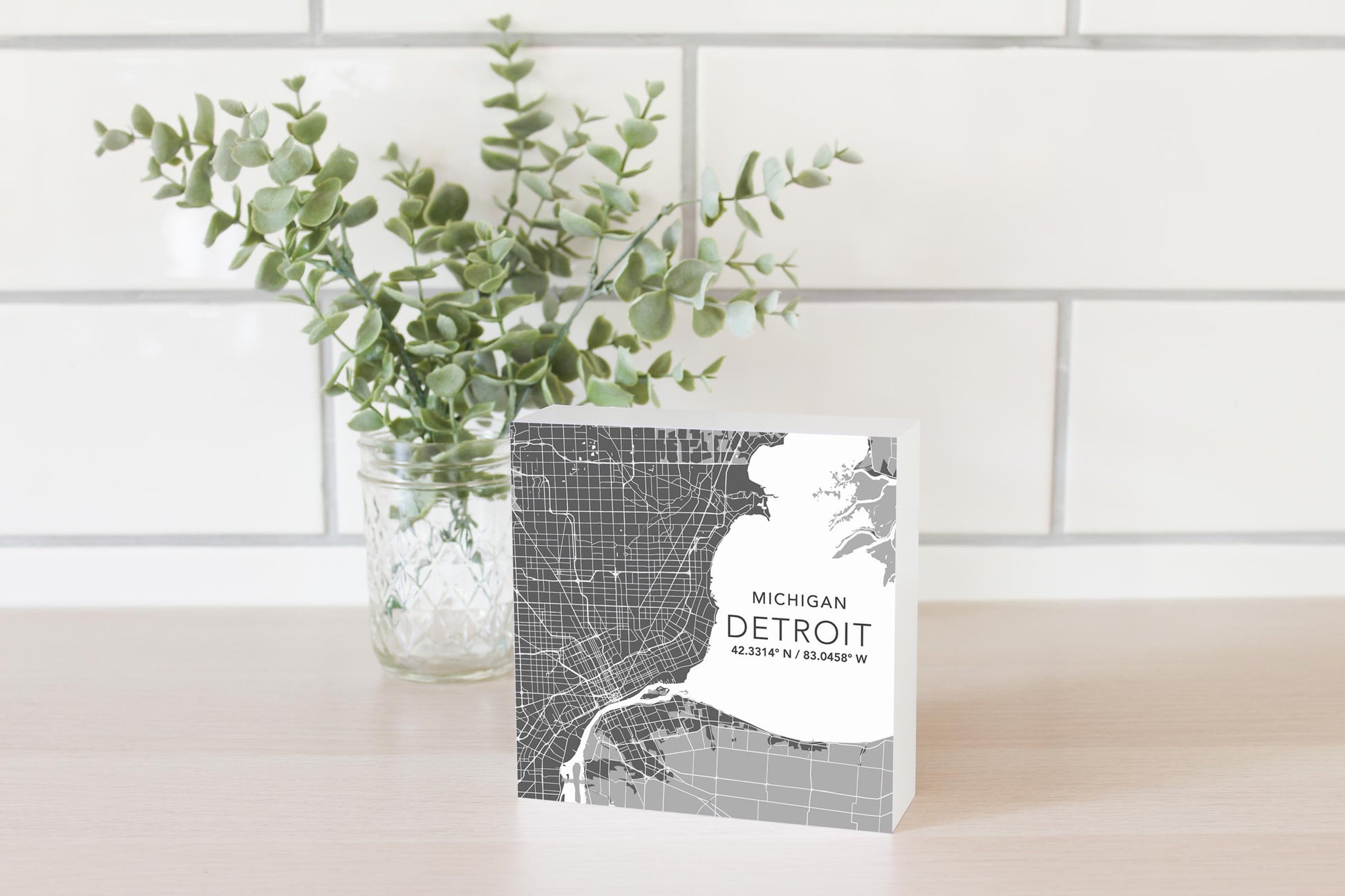 Grey Detroit Michigan Map & Coordinates | 5x5