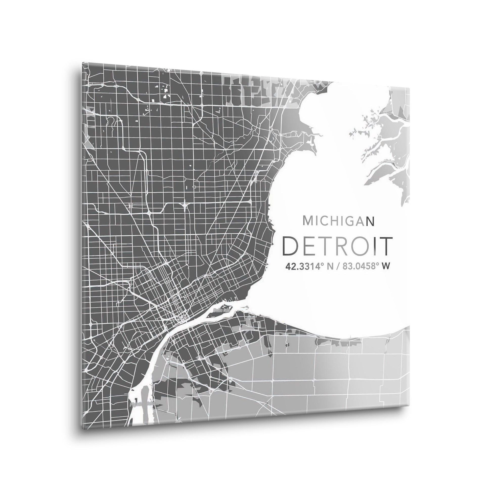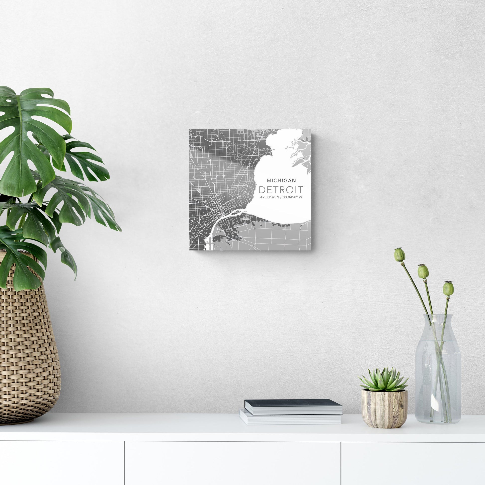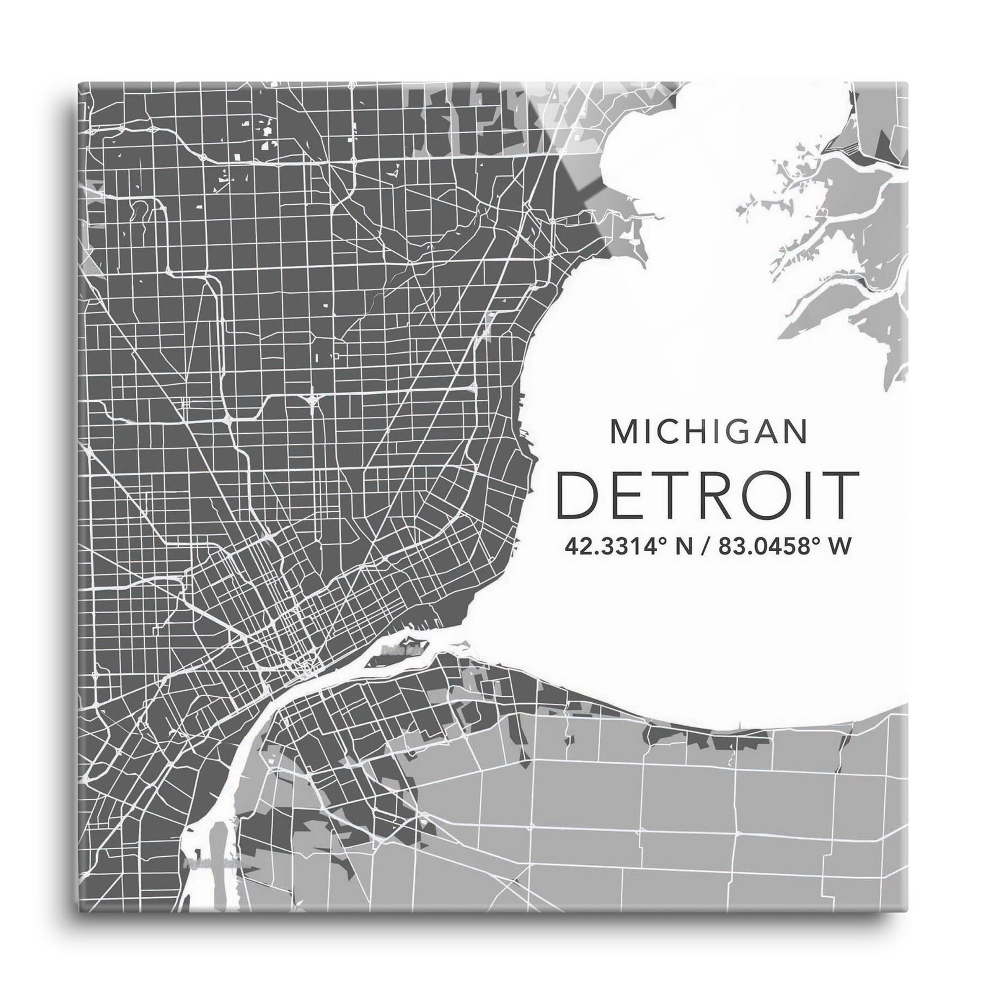 Grey Detroit Michigan Map & Coordinates | 12x12