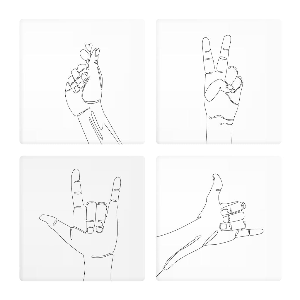 Hand Sign Line Drawings| Absorbent Coasters | Set of 4 | Min 2