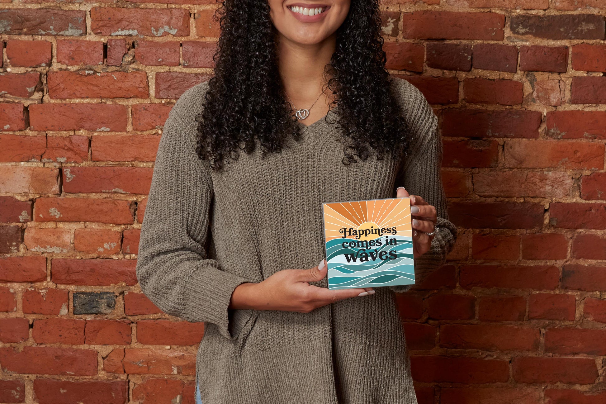 Happiness Comes In Waves | Wood Block | Eaches | Min 4