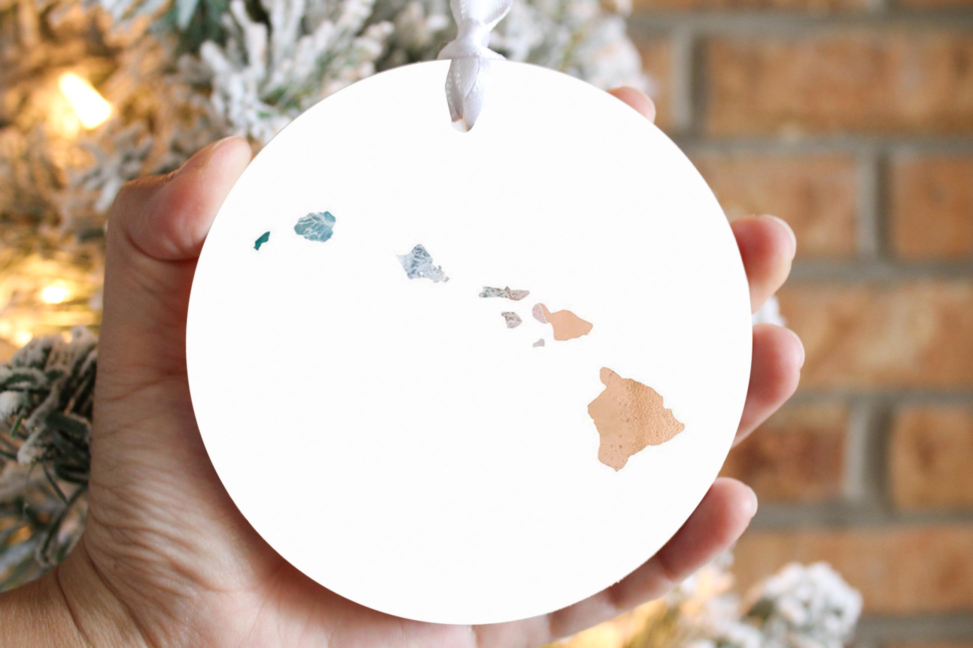 Hawaii State With Scene| Wood Ornament | Eaches | Min 6