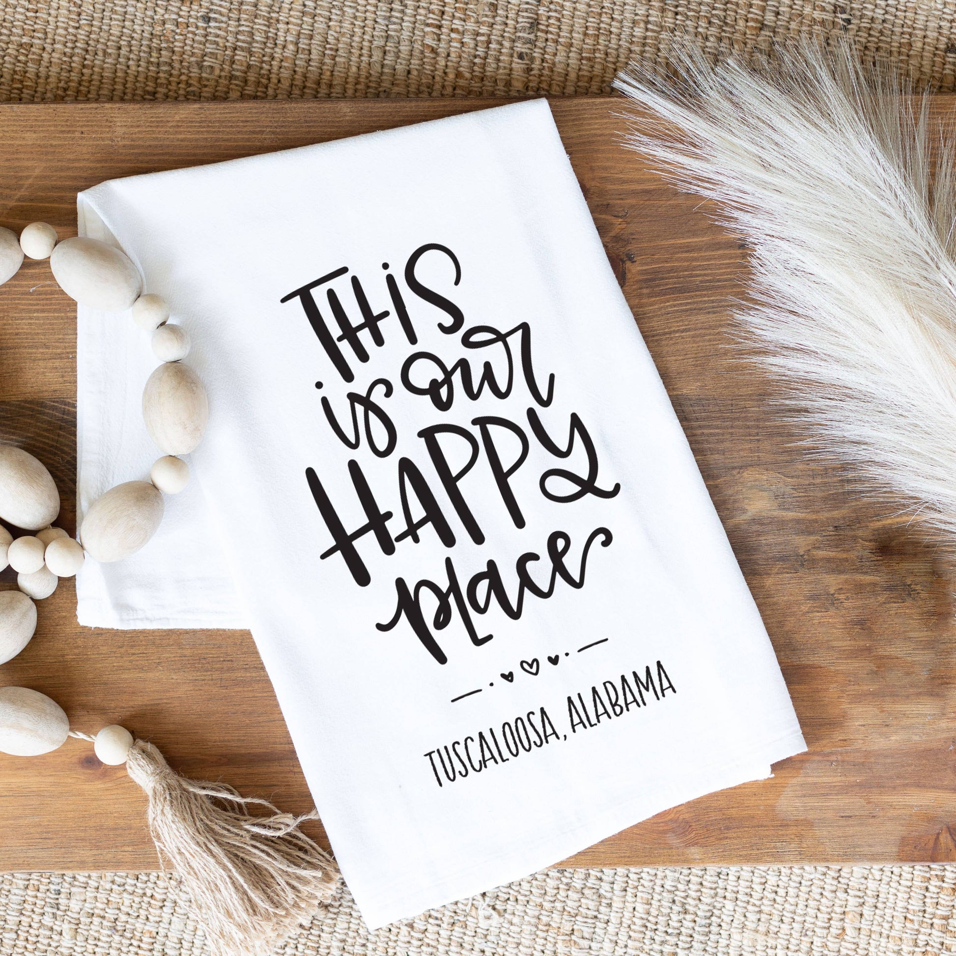 Kitchen Towel, Custom City/State, Tea Towel, Our Happy Place