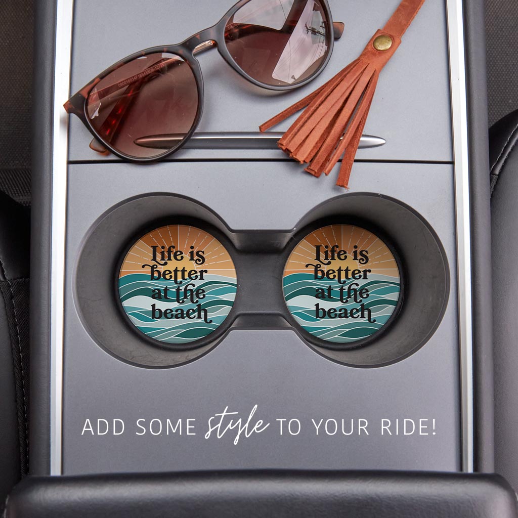 Life Is Better At The Beach | Absorbent Car Coasters | Set of 2 | Min 4