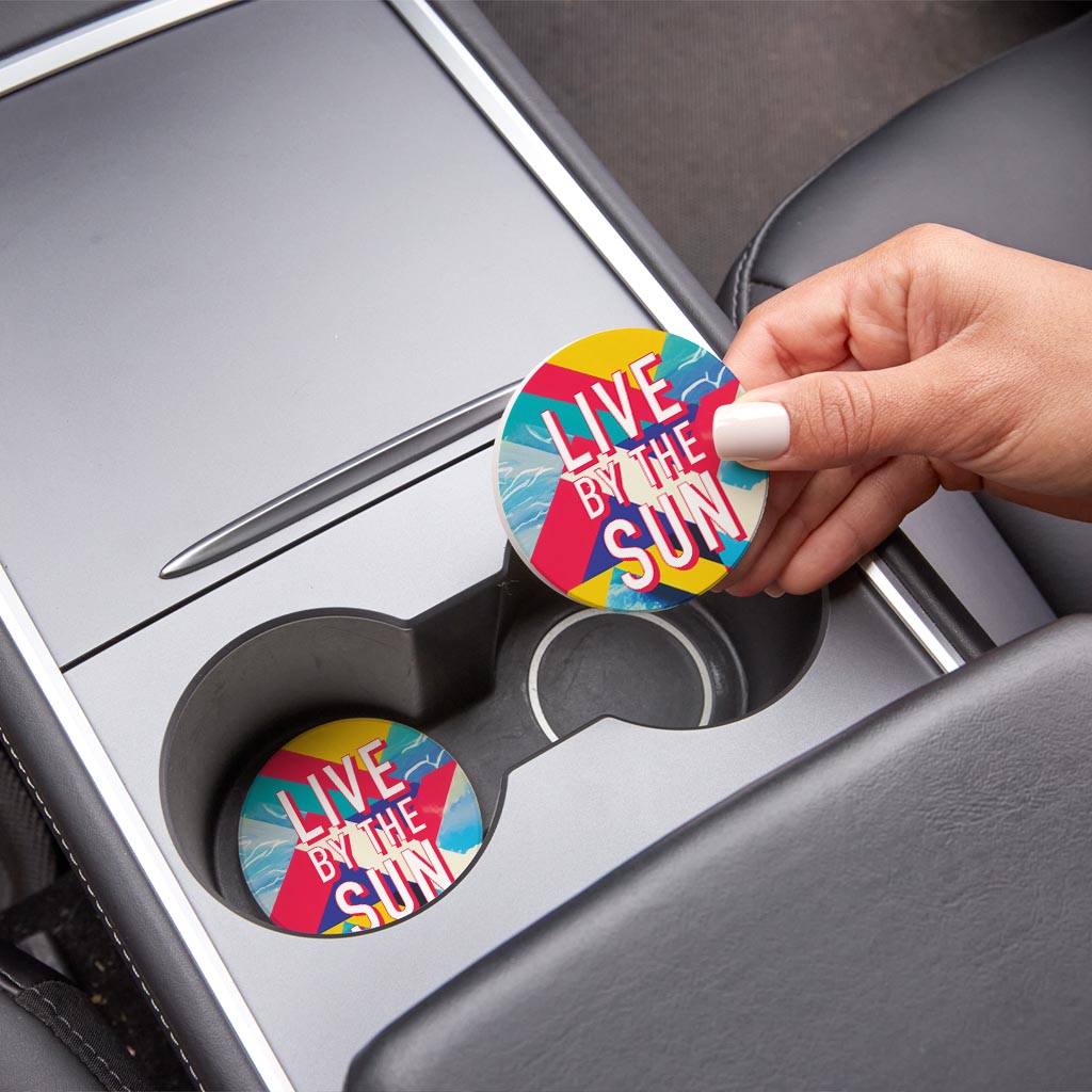 Live By The Sun | Absorbent Car Coasters | Set of 2 | Min 4