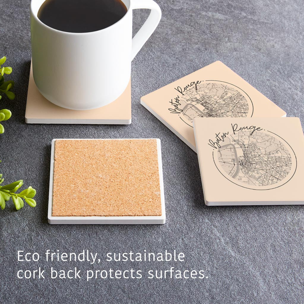 Louisiana Colorful Baton Rouge Circle Map | Absorbent Coasters | Set of 4 | Min 2