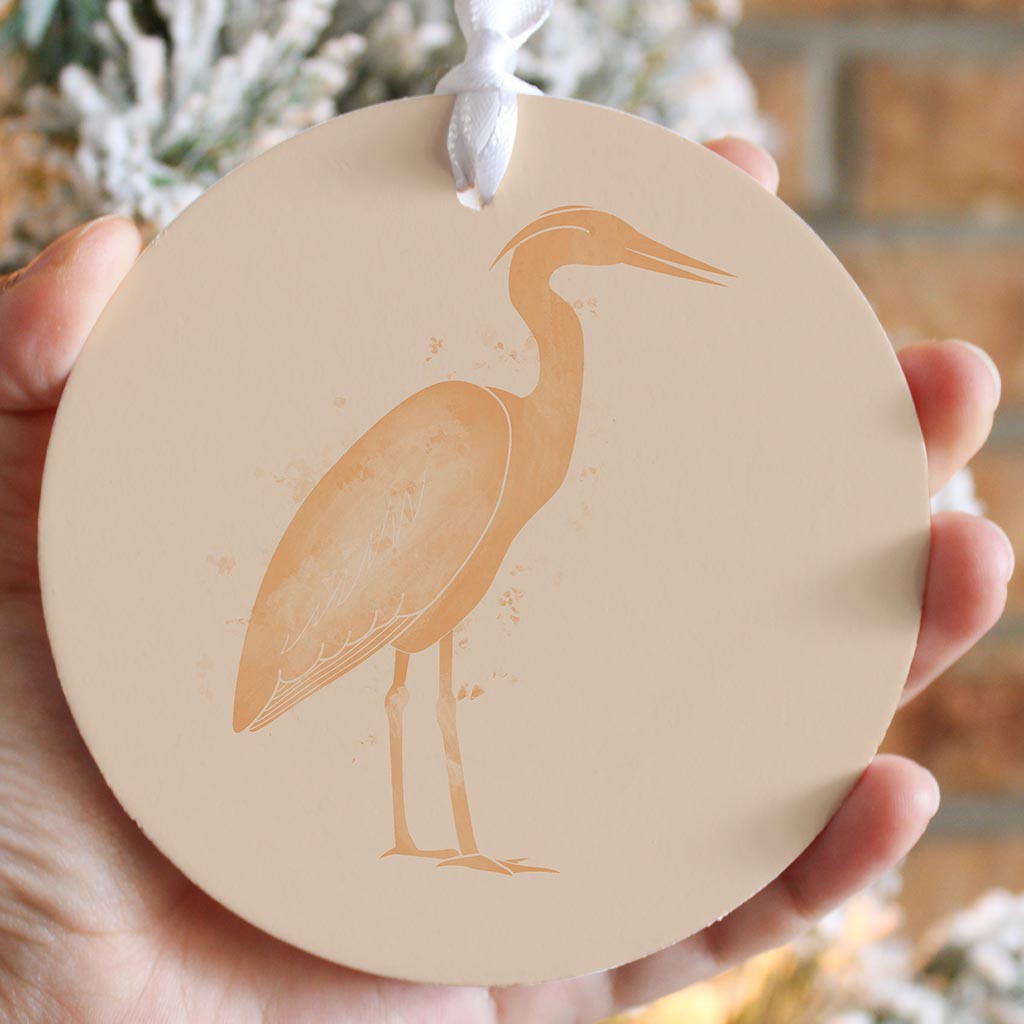 Louisiana Colorful Water Color Heron | Wood Ornament | Eaches | Min 6