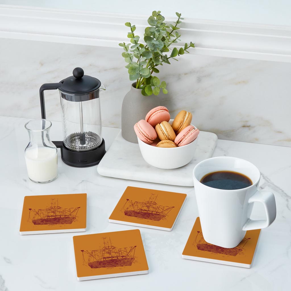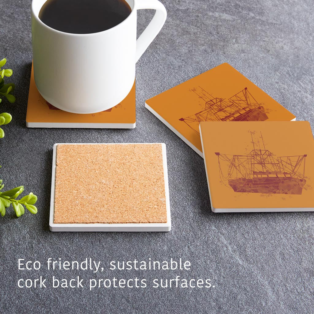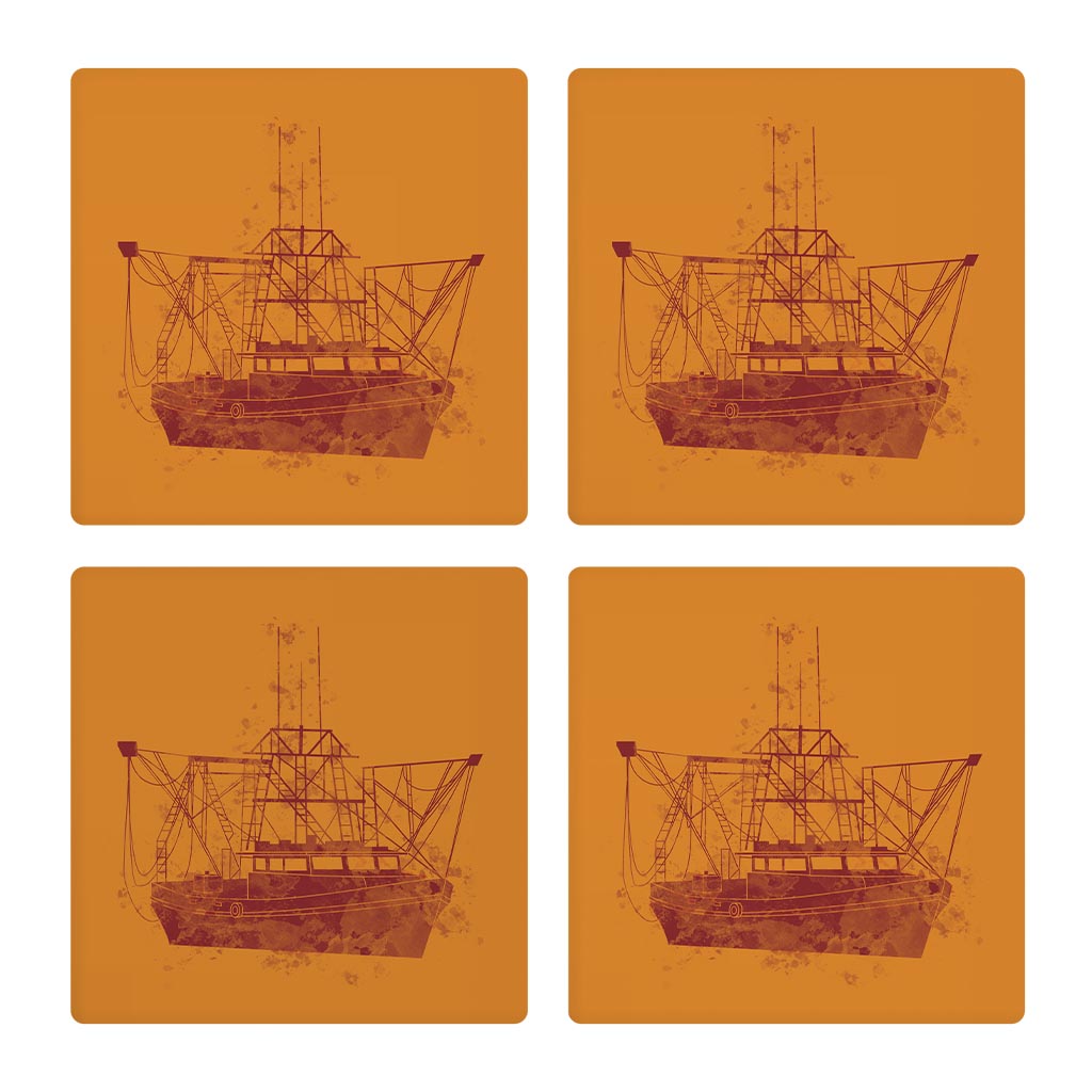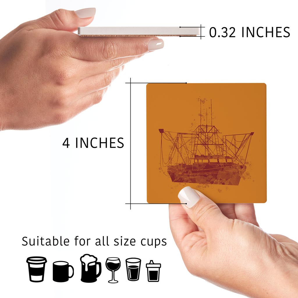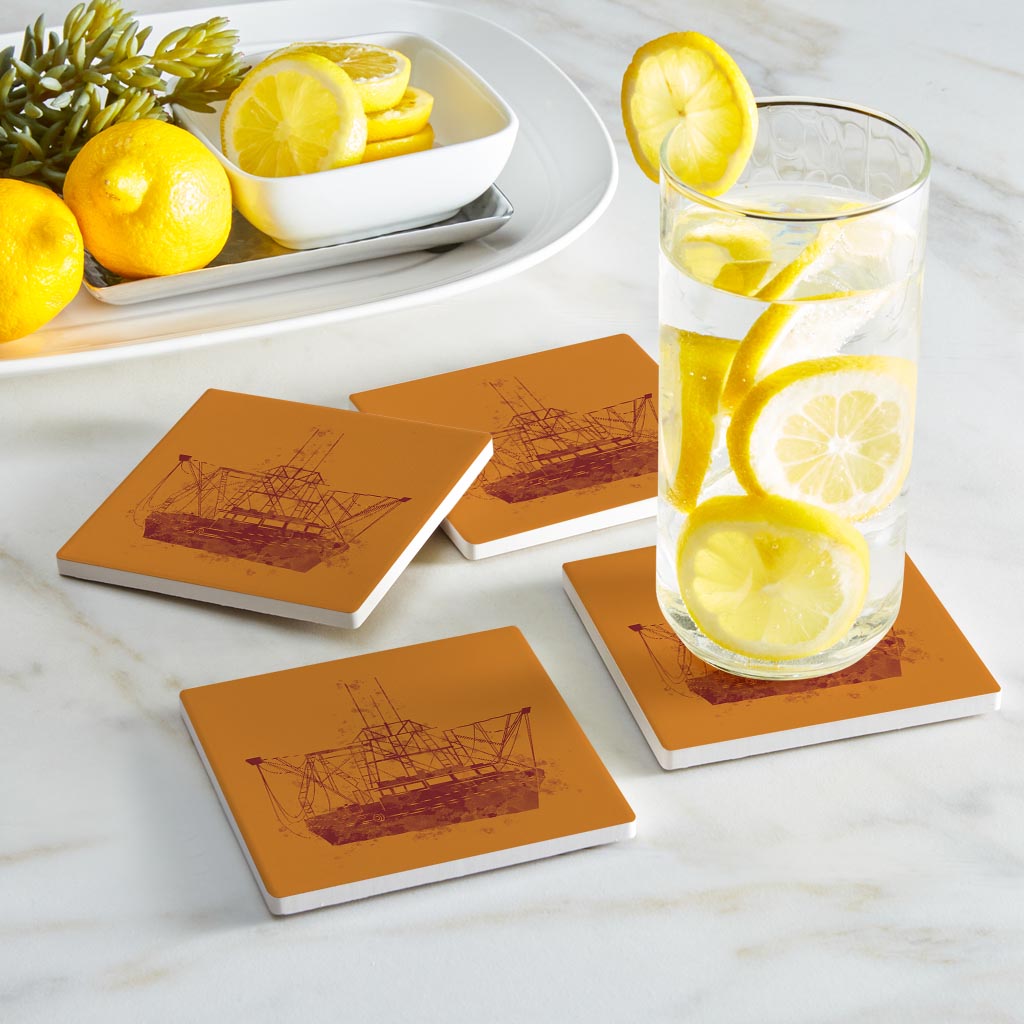 Louisiana Colorful Water Color Shrimp Boat | Absorbent Coasters | Set of 4 | Min 2