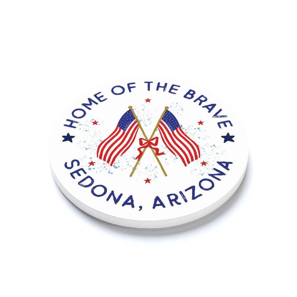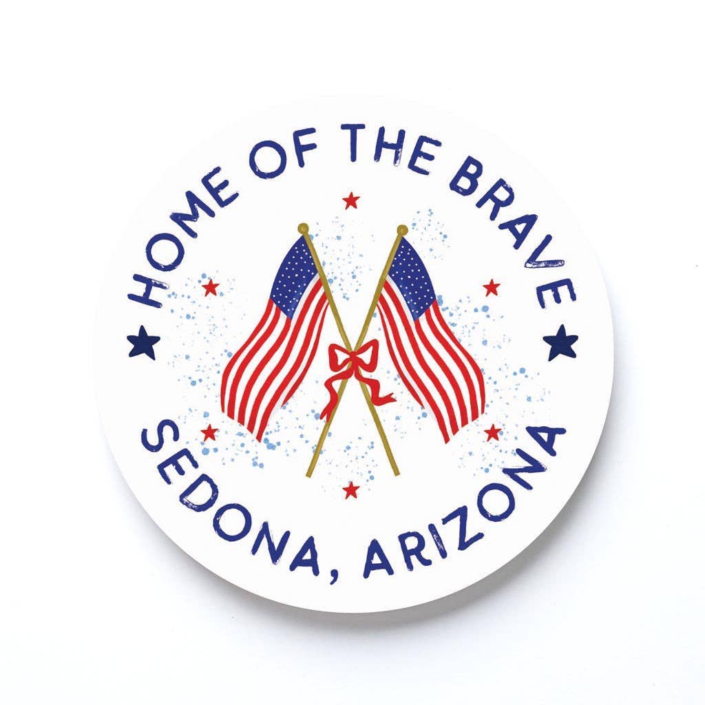 Embrace the spirit of Sedona, Arizona with our Love Local Round Coaster, a tribute to the heartfelt connections we share in our beloved communities. This coaster speaks to your customers' love for their hometowns and the honor of celebrating American values. Each piece is crafted to serve not just a functional purpose but to spark conversation and evoke nostalgia, making it a delightful addition to any kitchen or living space.