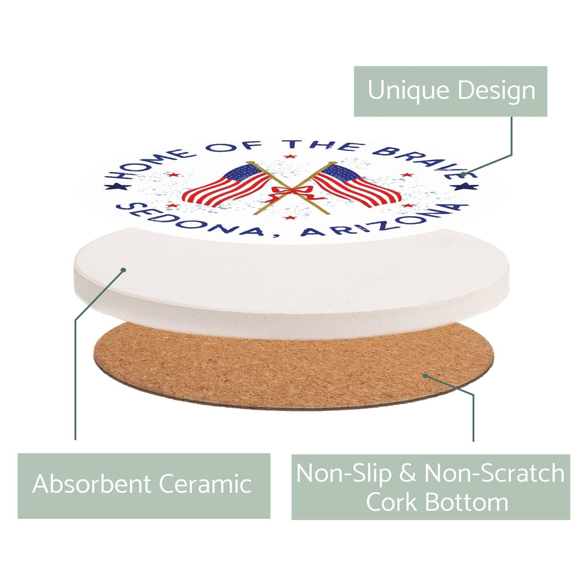 Measuring at 4 inches in diameter, this absorbent ceramic coaster features a beautiful design of American flags adorned with a festive bow, a perfect nod to summer gatherings and celebrations of patriotism. The eco-friendly cork backing ensures it stays securely in place while protecting surfaces from moisture and heat, allowing your customers to enjoy their morning coffee or evening cocktails without worry.