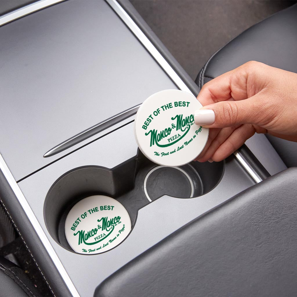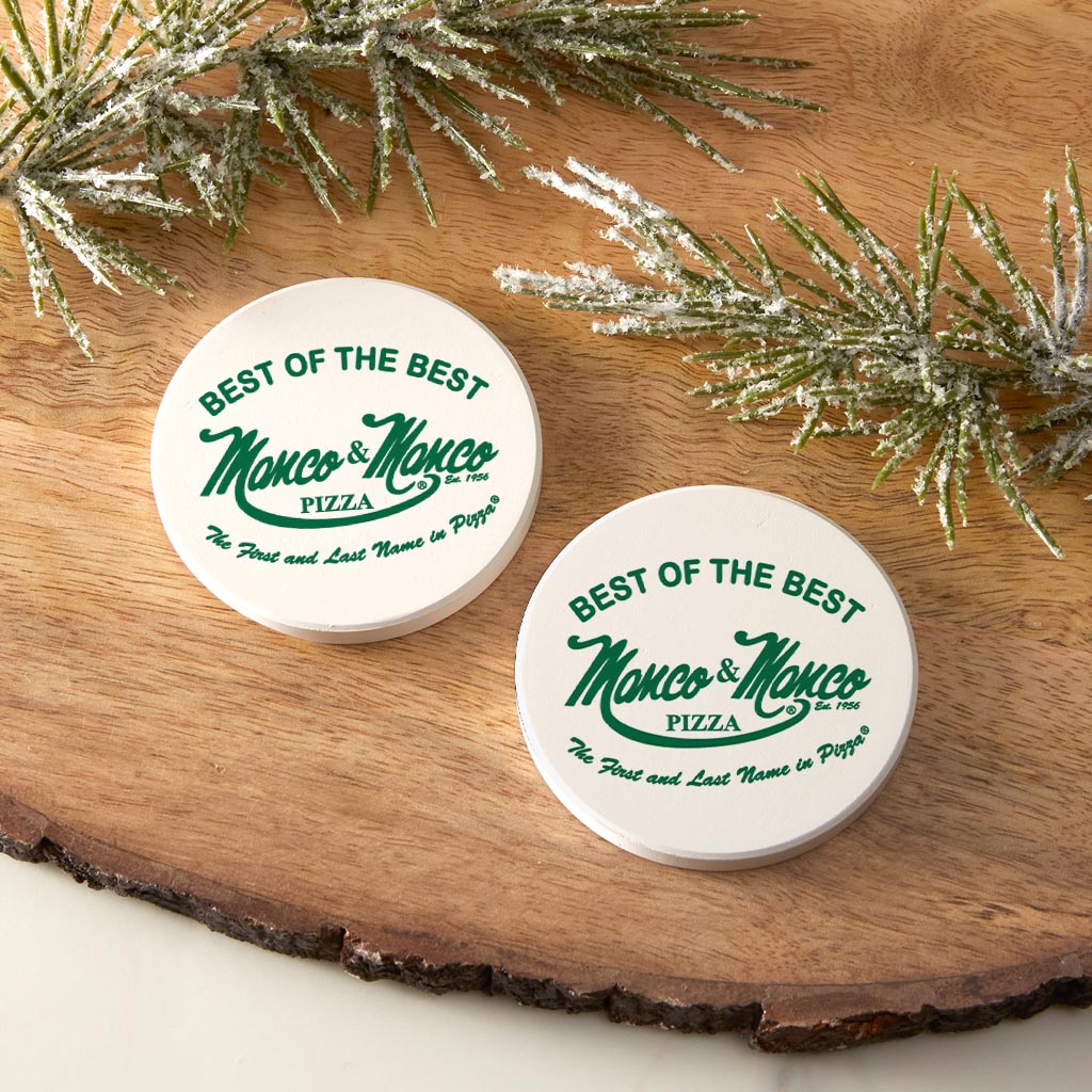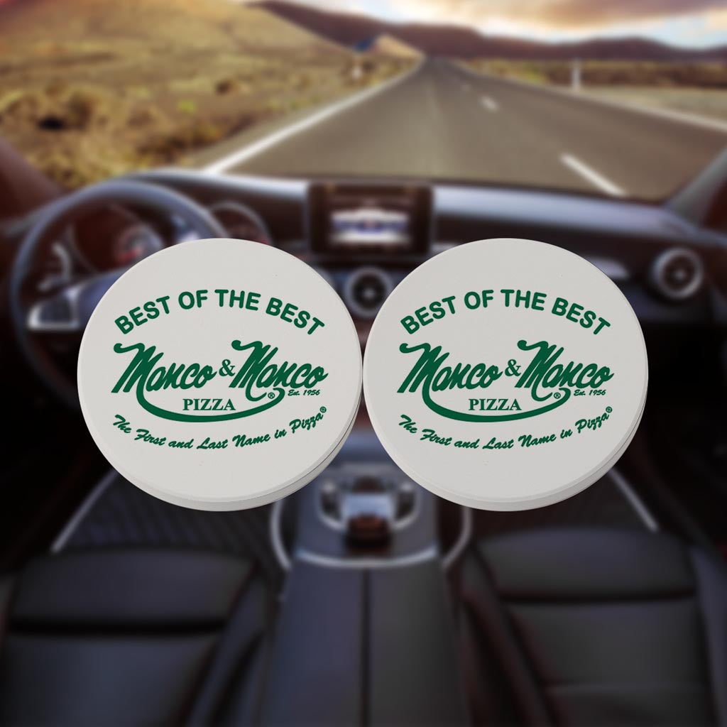 Manco Pizza Logo | Absorbent Car Coasters | Set of 2 | Min 4