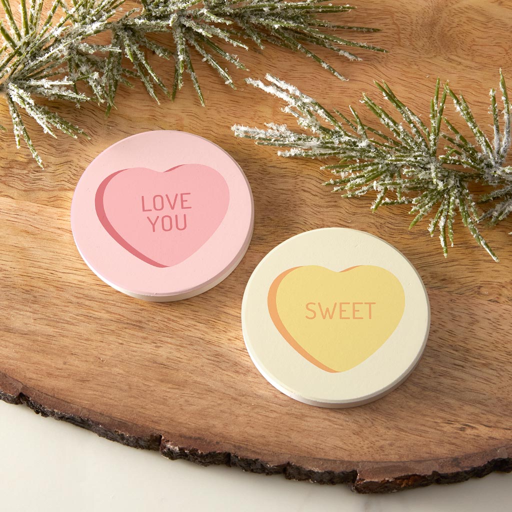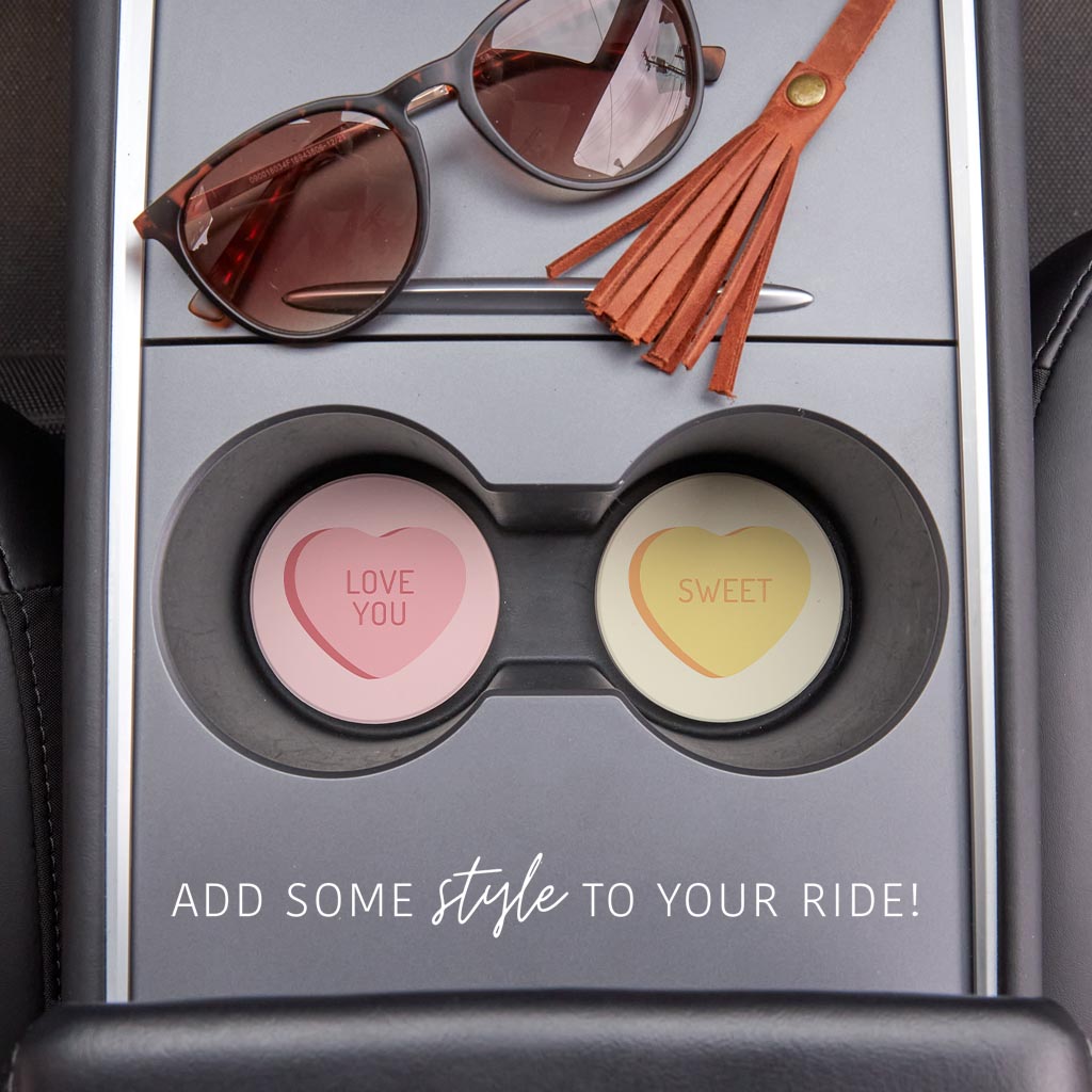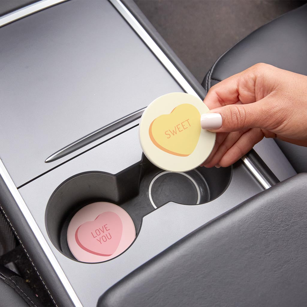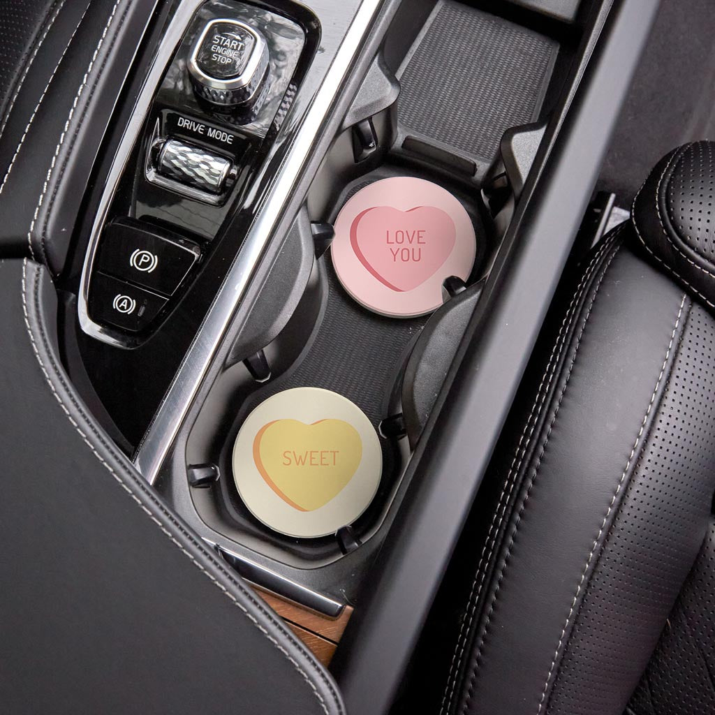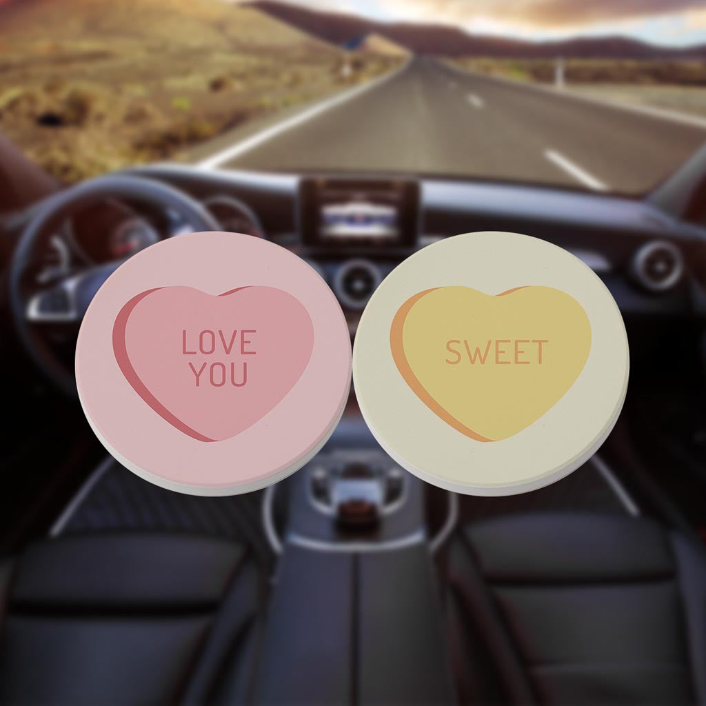 Message Hearts Love You Sweet| Absorbent Car Coasters | Set of 2 | Min 4