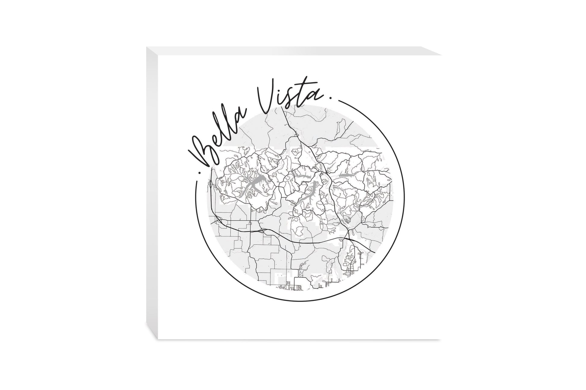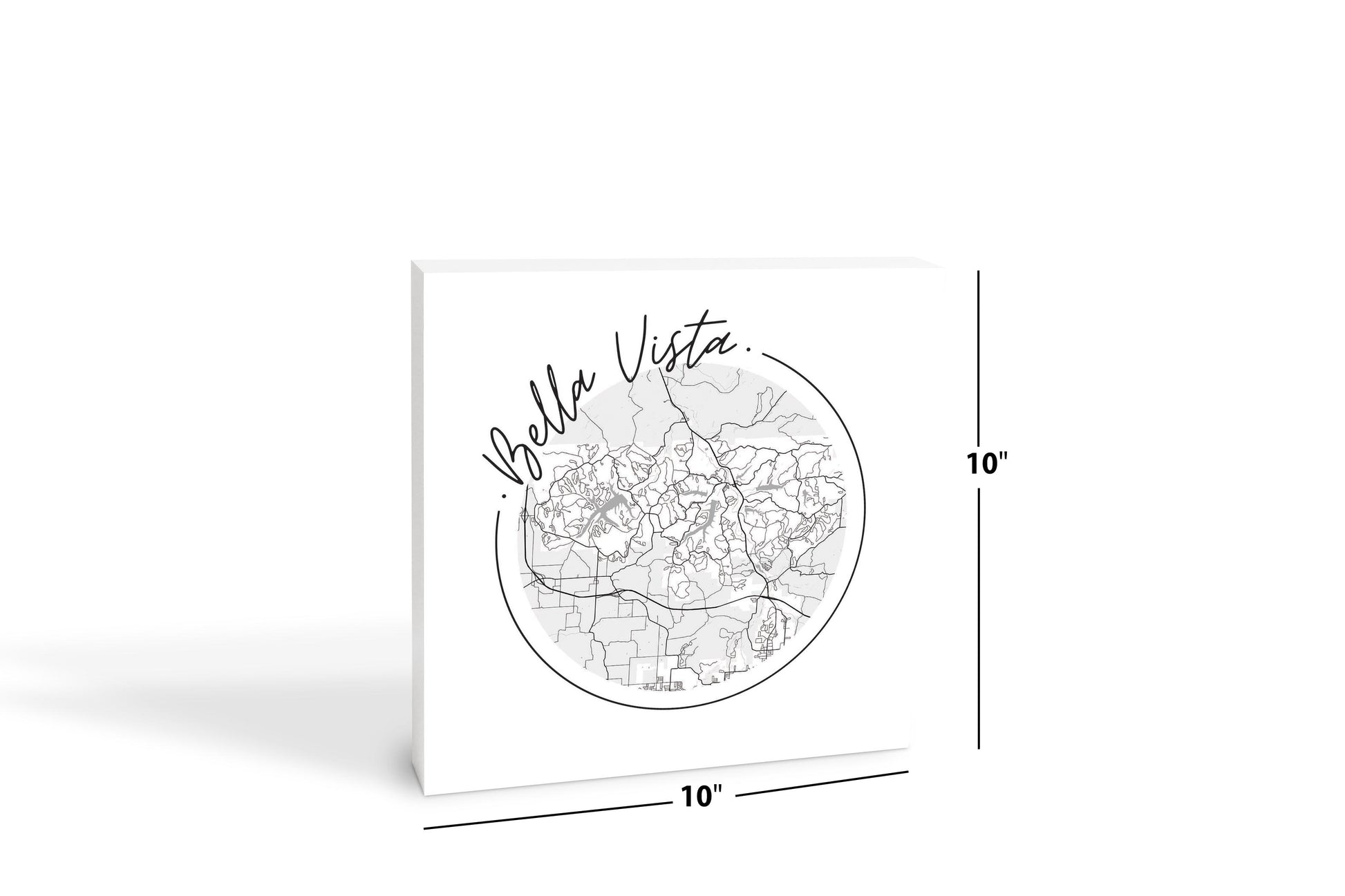Minimalist B&W Arkansas Bella Vista Circle Map | Wood Block | Eaches | Min 2
