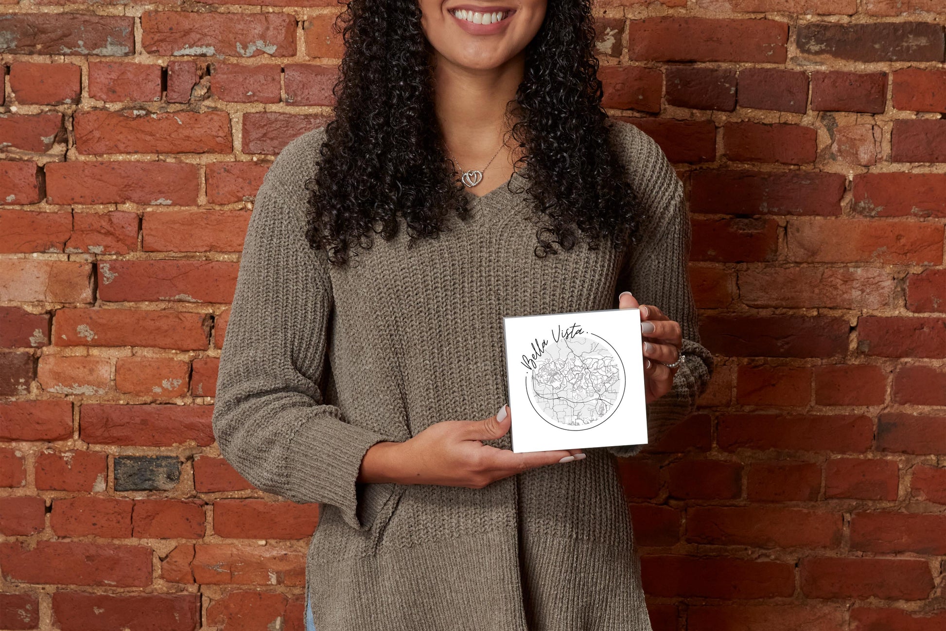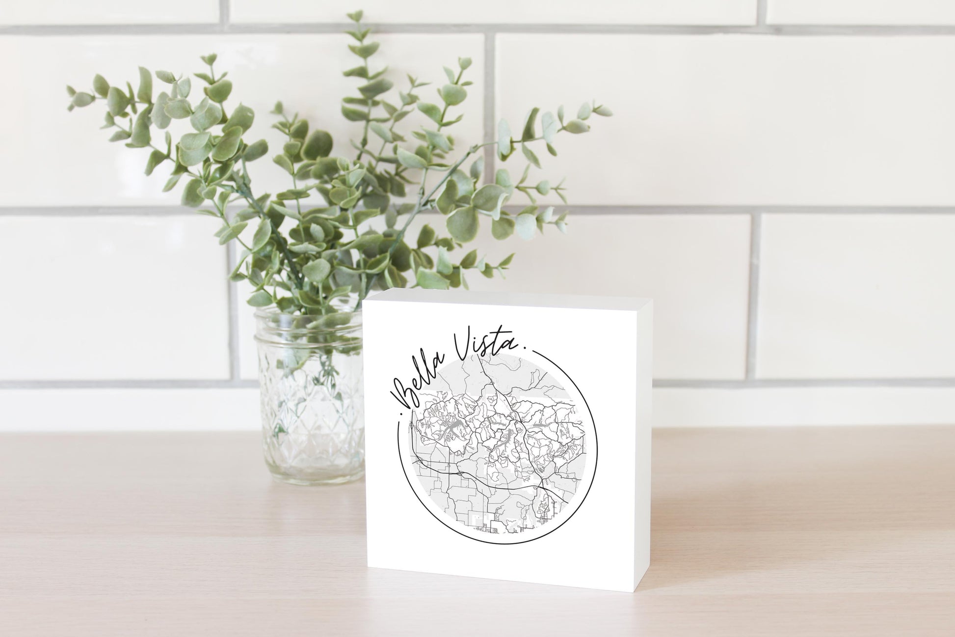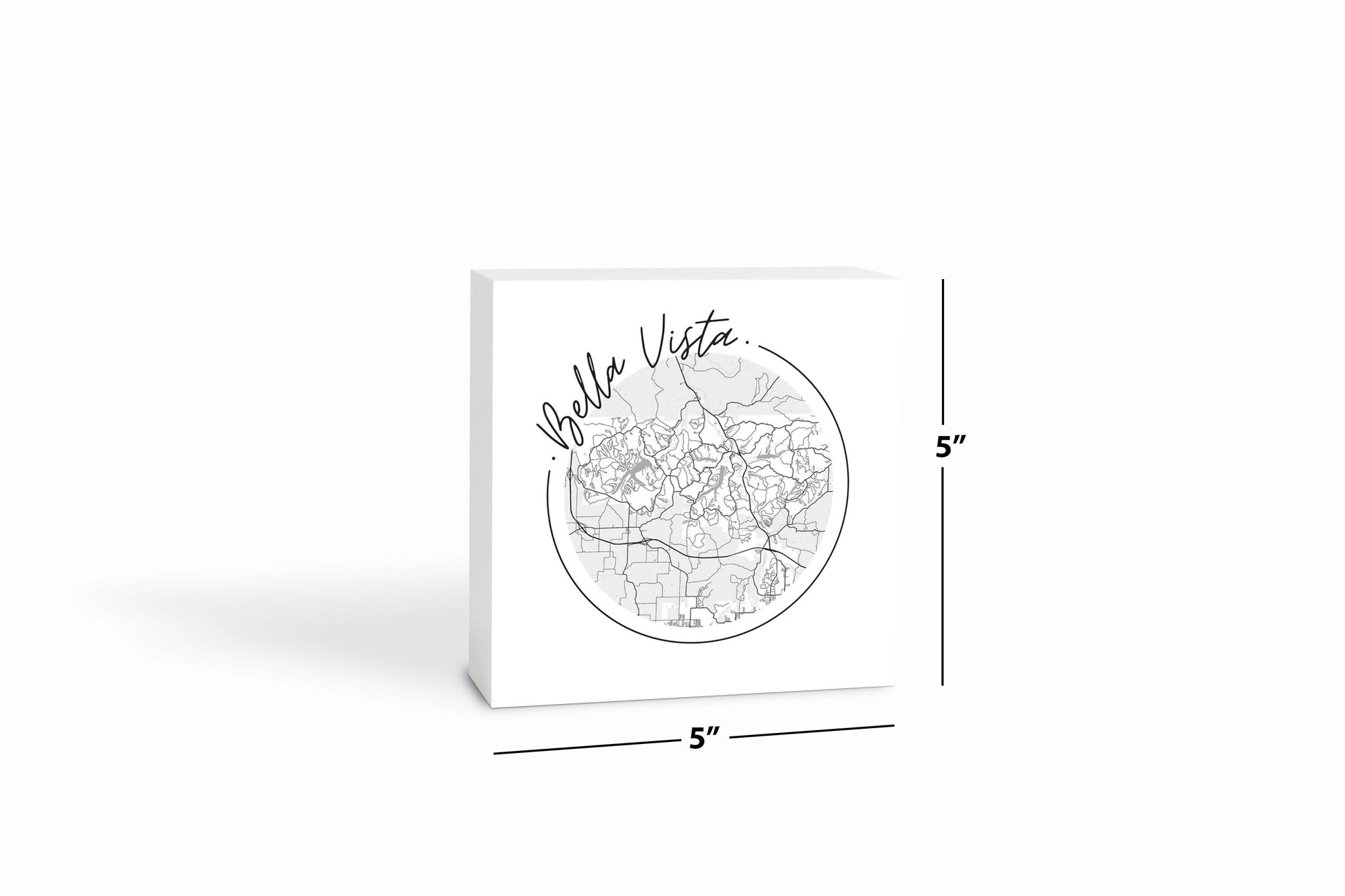 Minimalist B&W Arkansas Bella Vista Circle Map | Wood Block | Eaches | Min 4