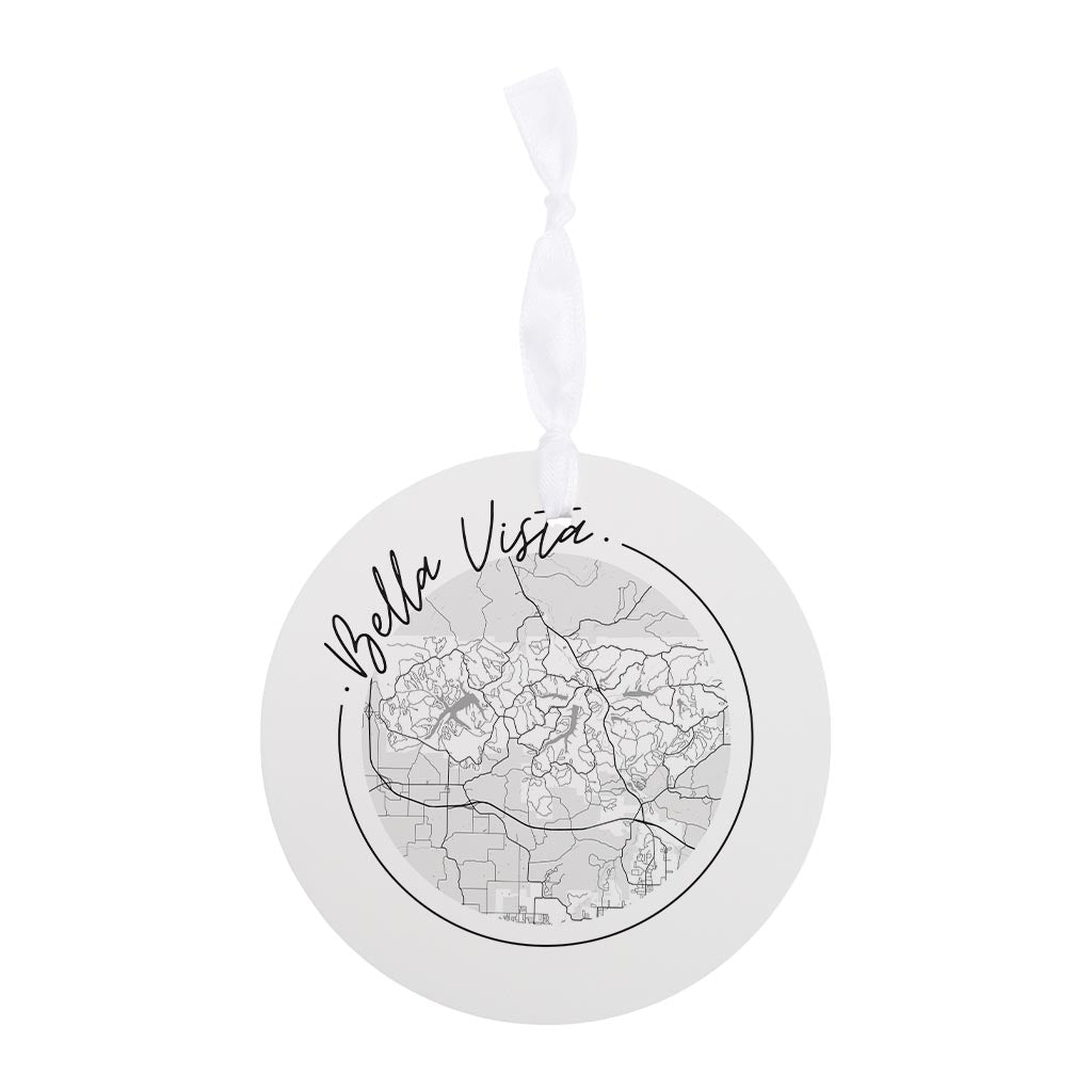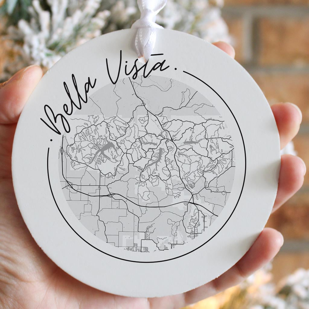 Minimalist B&W Arkansas Bella Vista Circle Map | Wood Ornament | Eaches | Min 6