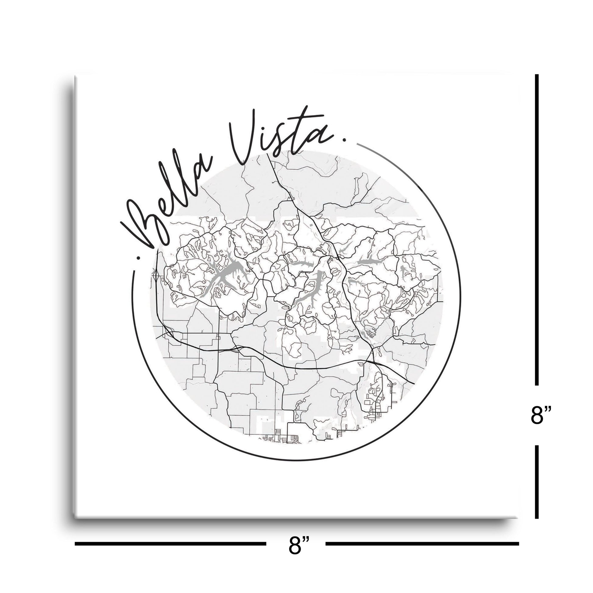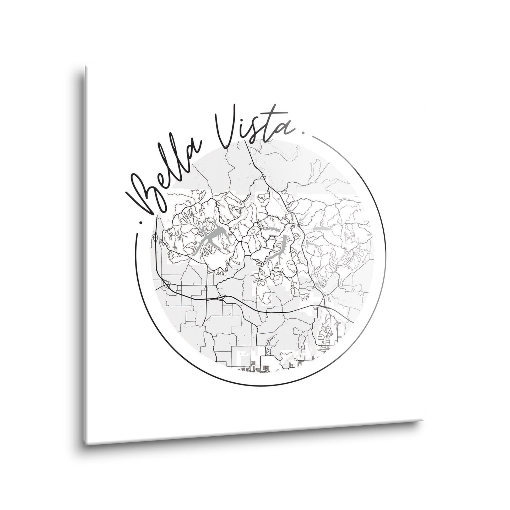 Minimalist B&W Arkansas Bella Vista Circle Map | Hi-Def Glass Art | Eaches | Min 2