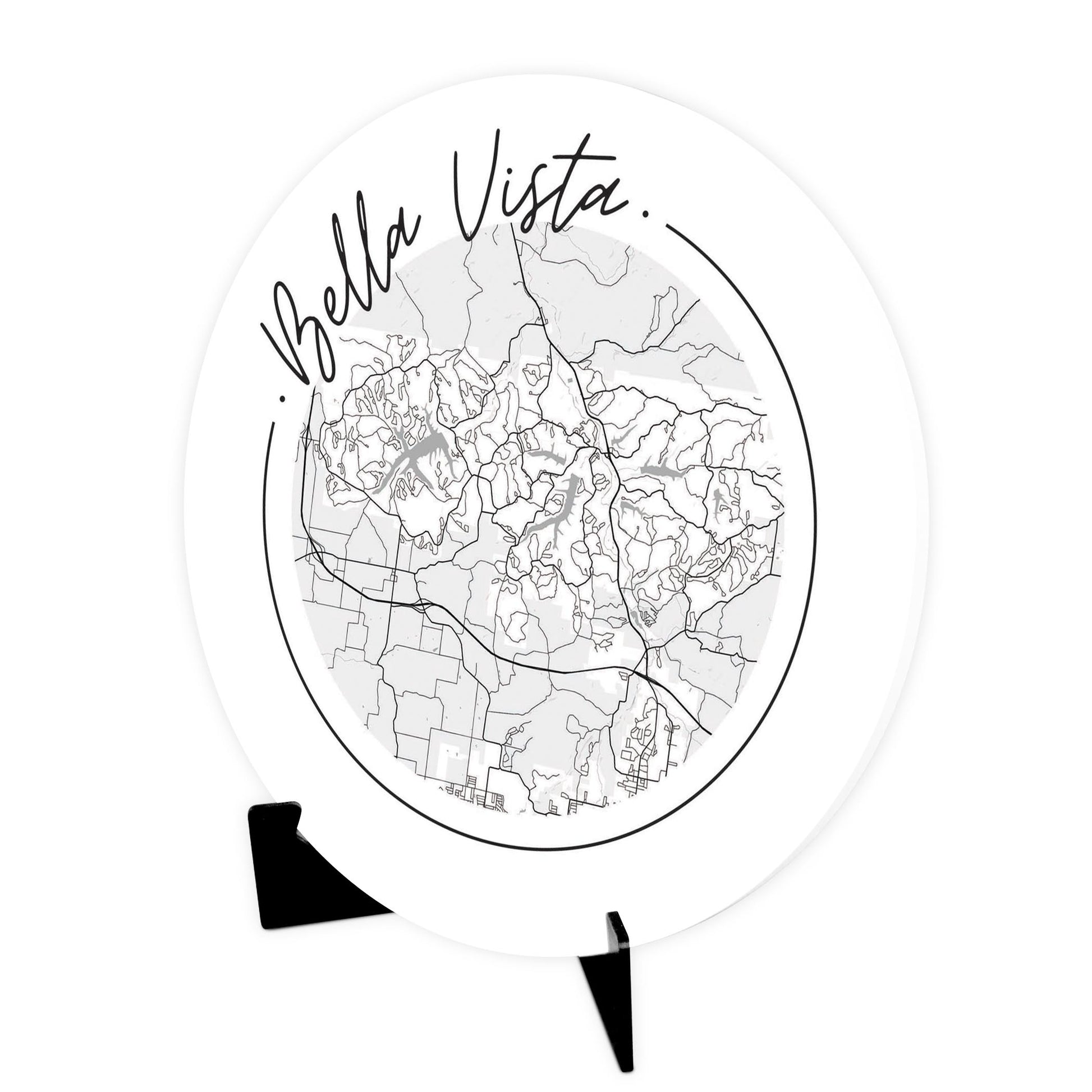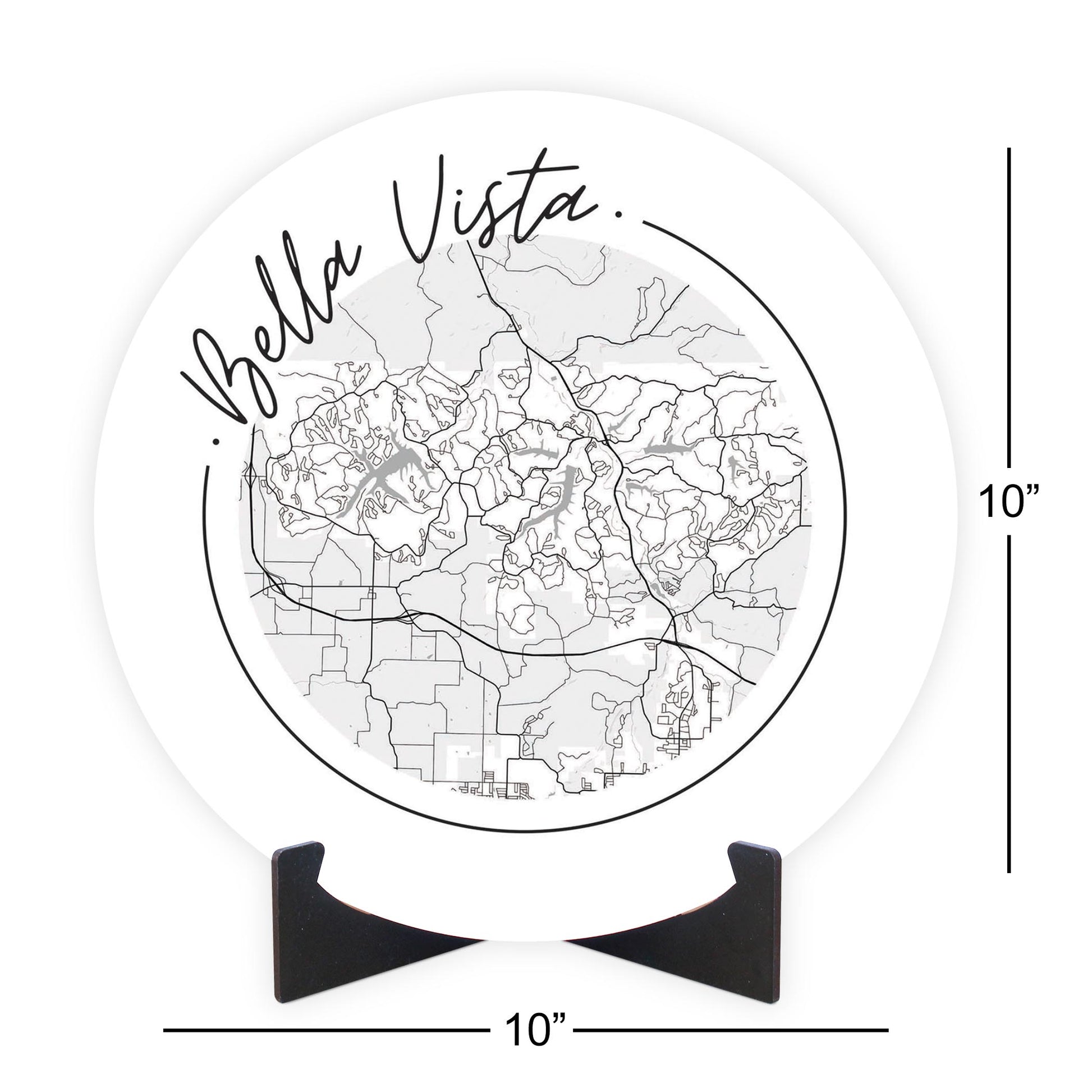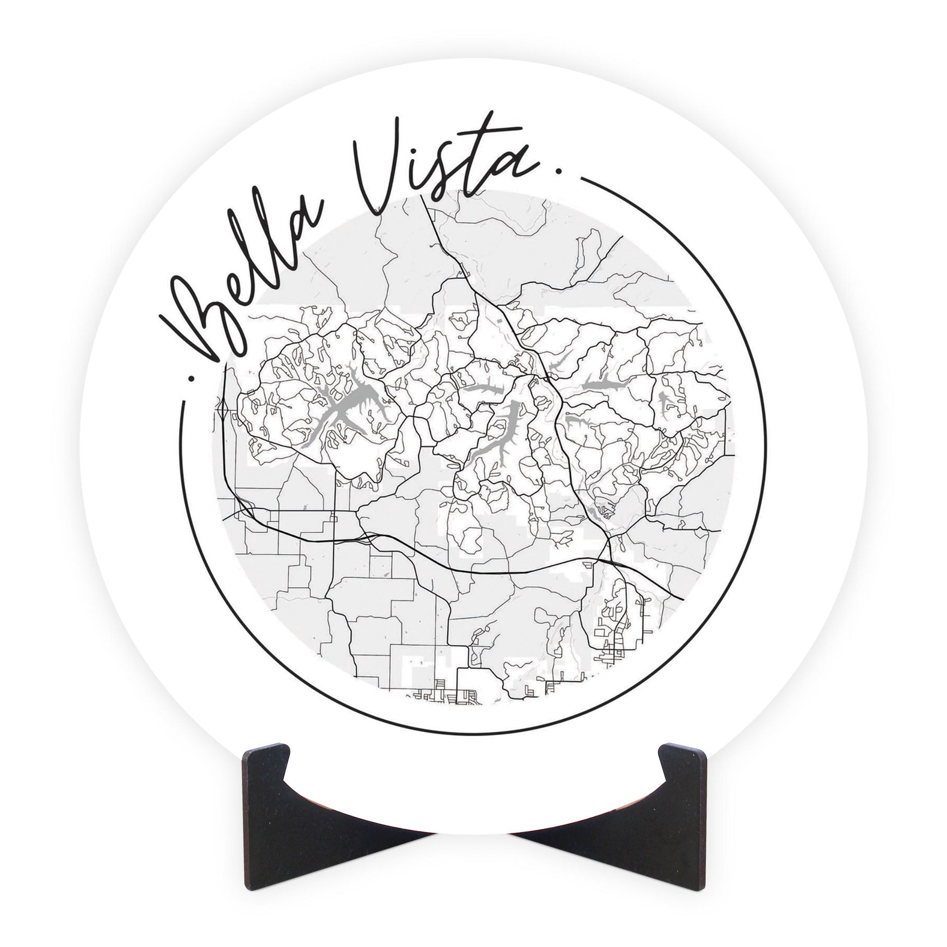 Minimalist B&W Arkansas Bella Vista Circle Map | Wood Sign | Eaches | Min 1