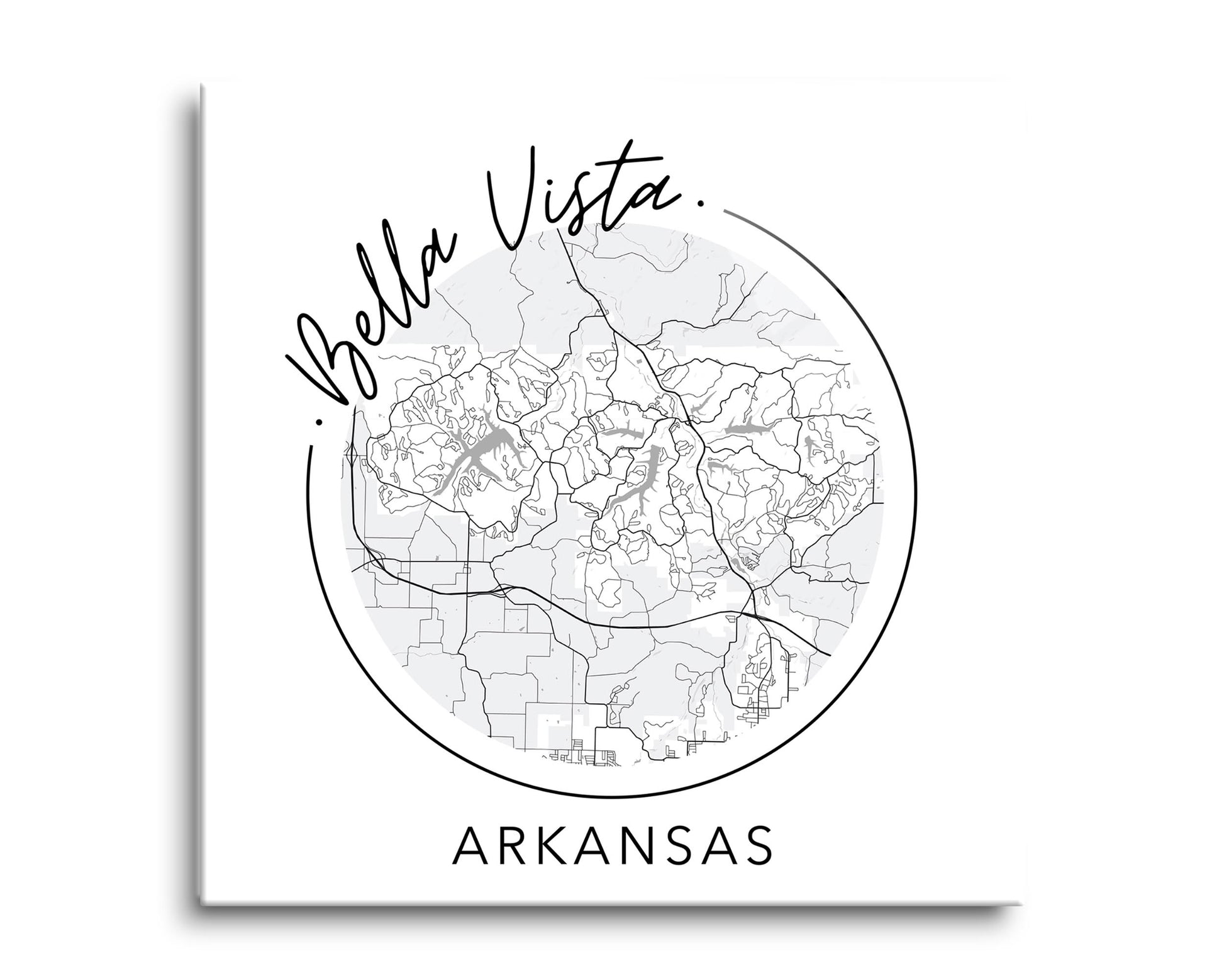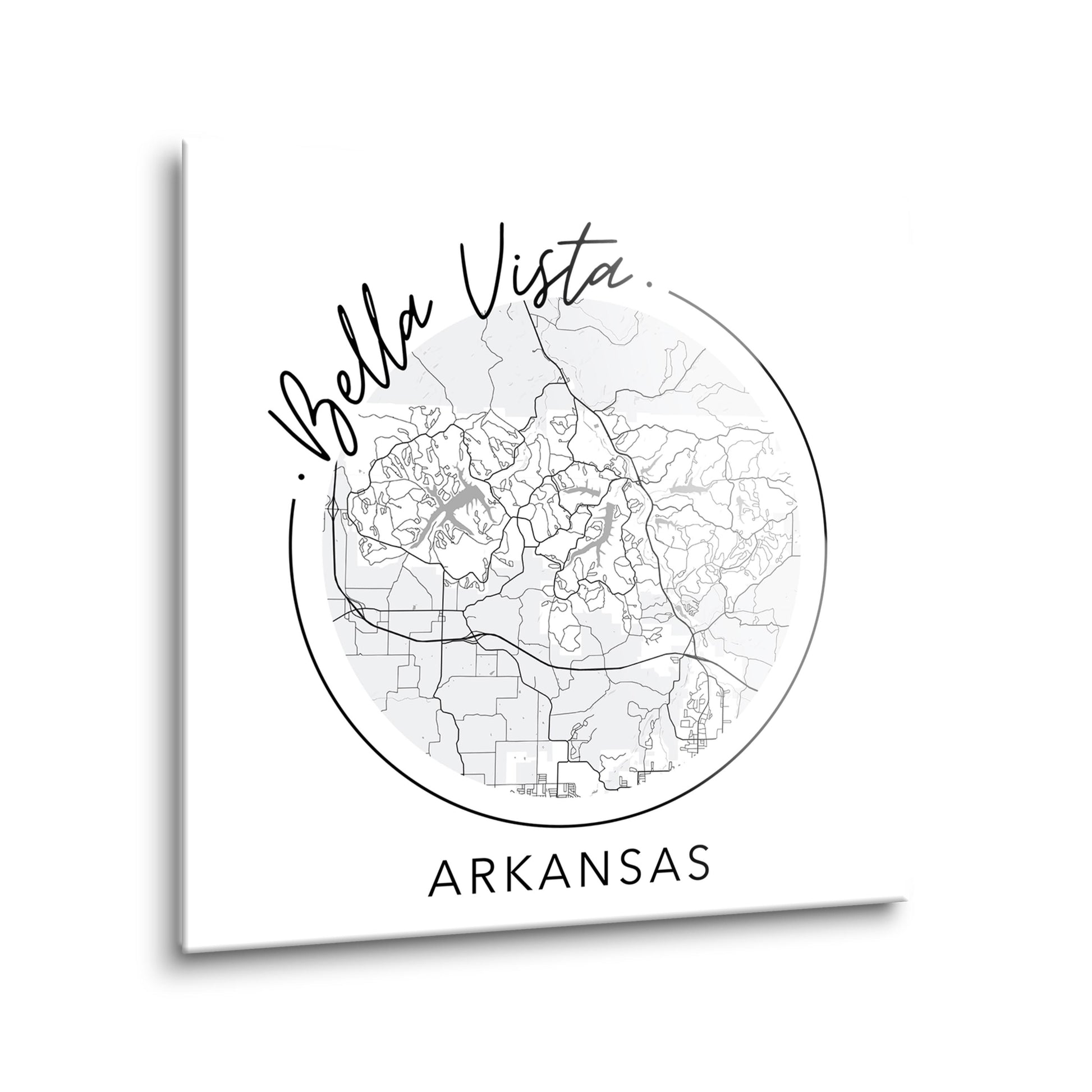 Minimalist B&W Arkansas Bella Vista Circle Map State | Hi-Def Glass Art | Eaches | Min 2