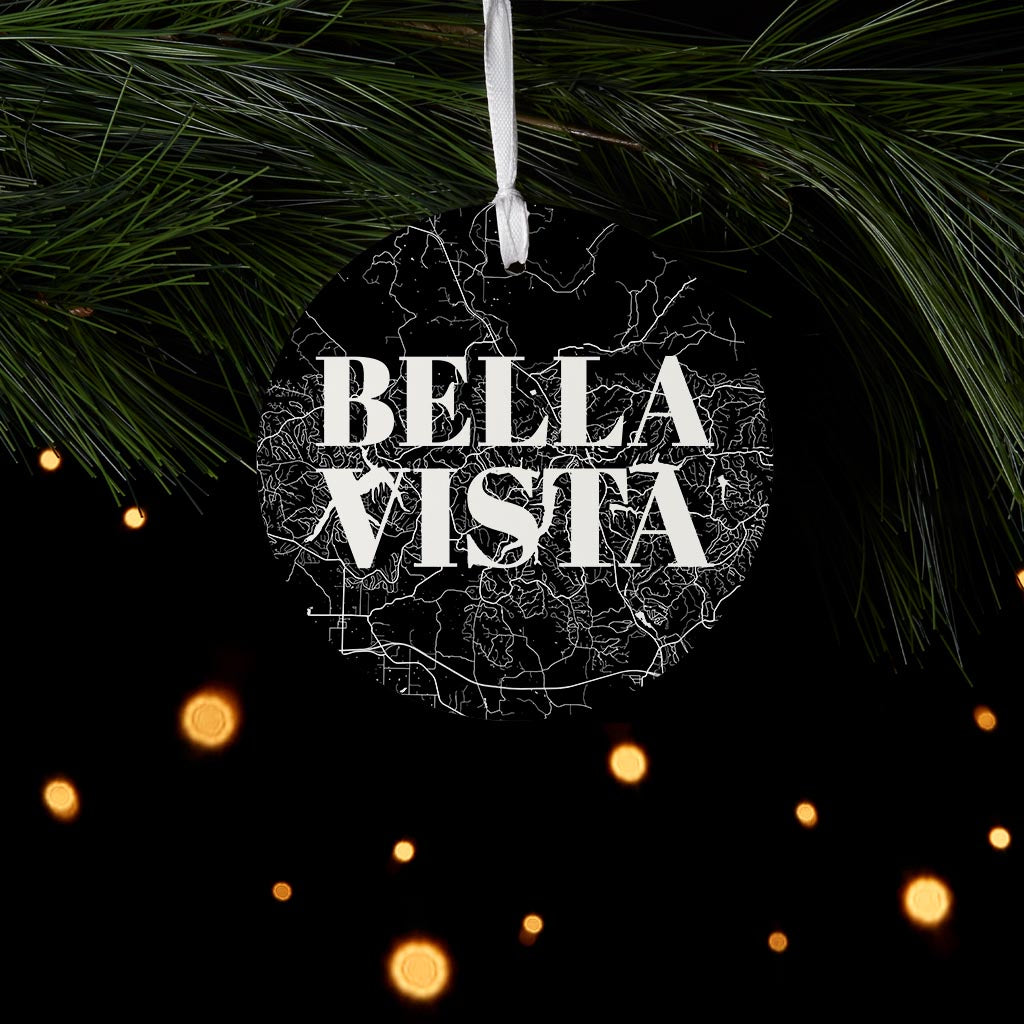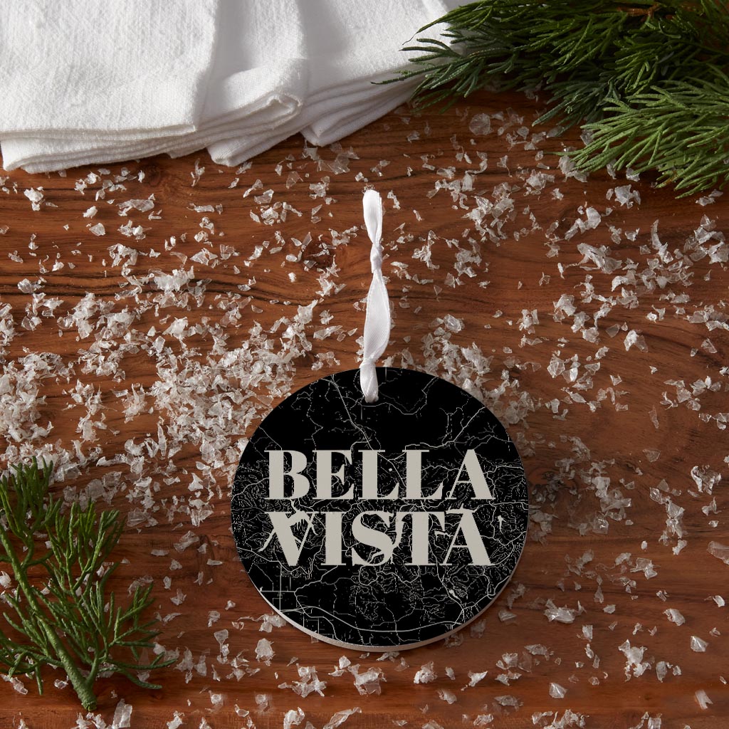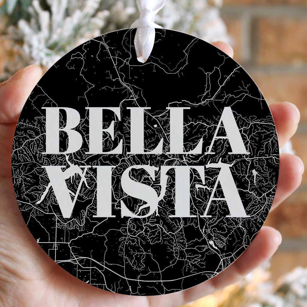 Minimalist B&W Arkansas Bella Vista Map | Wood Ornament | Eaches | Min 6