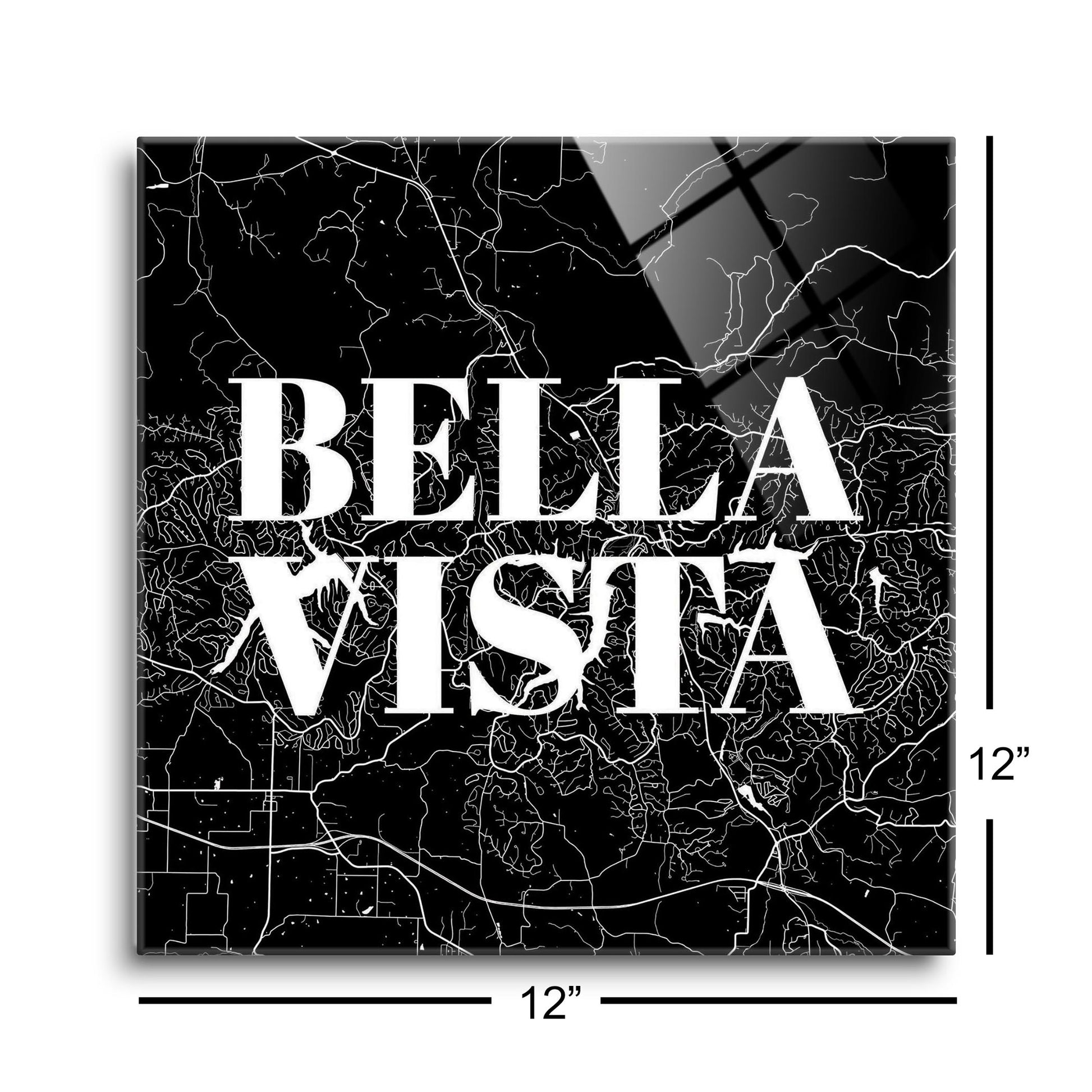 Minimalist B&W Arkansas Bella Vista Map | Hi-Def Glass Art | Eaches | Min 1