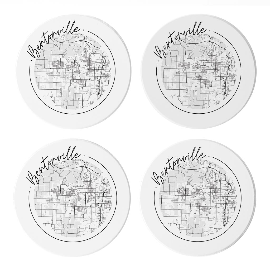 Minimalist B&W Arkansas Bentonville Circle Map | Absorbent Coasters | Set of 4 | Min 2