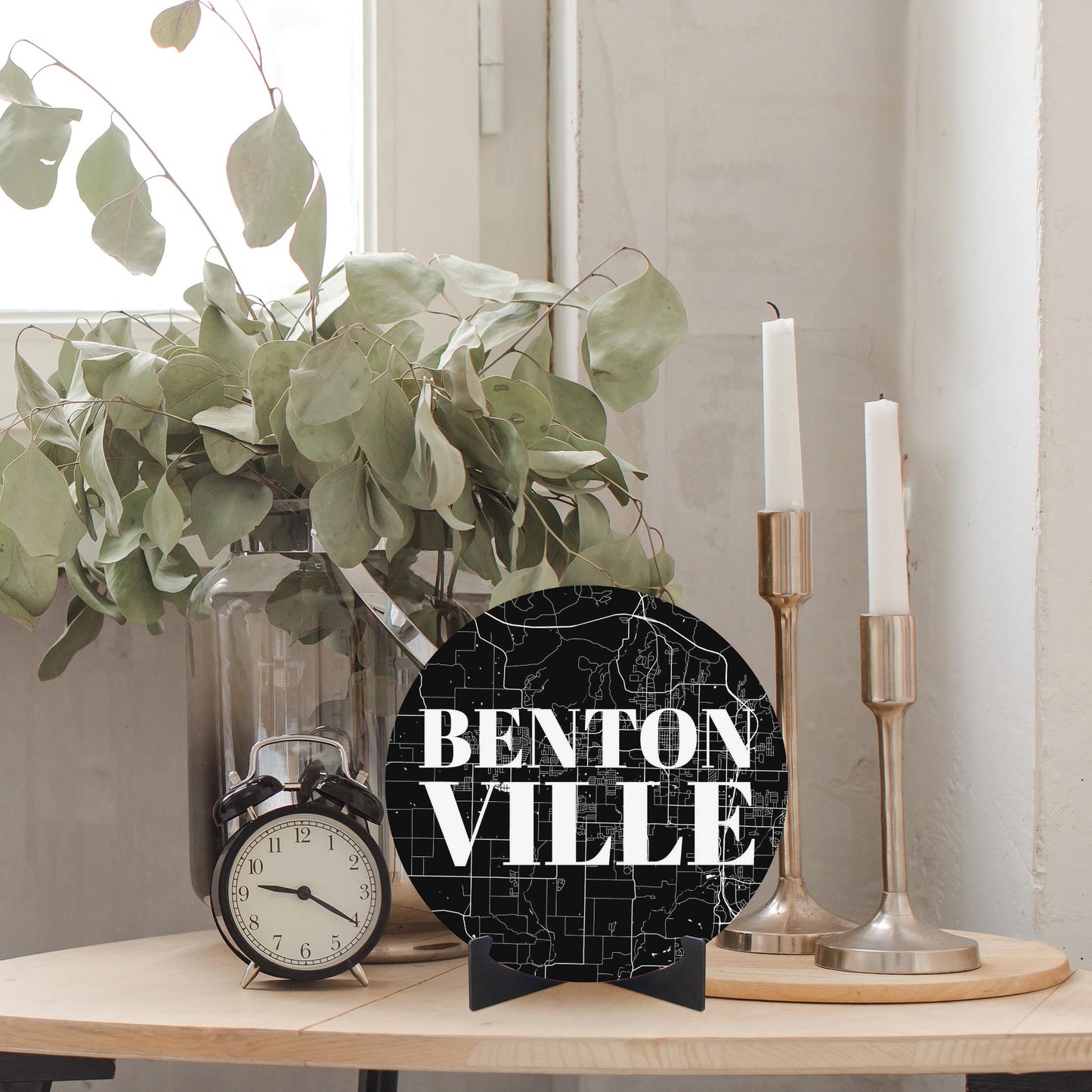 Minimalist B&W Arkansas Bentonville Map | Wood Sign | Eaches | Min 1