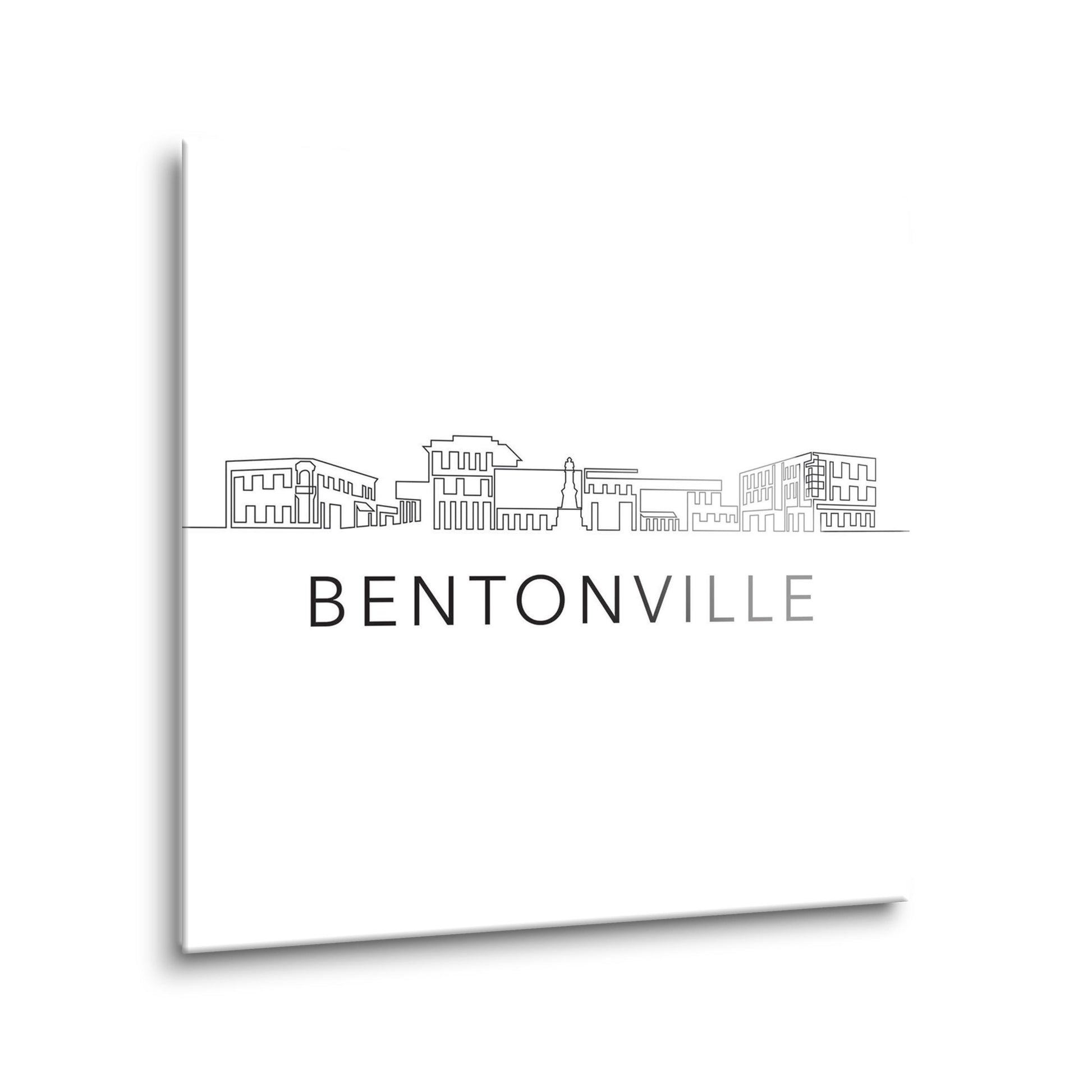 Minimalist B&W Arkansas Bentonville Skyline | Hi-Def Glass Art | Eaches | Min 2