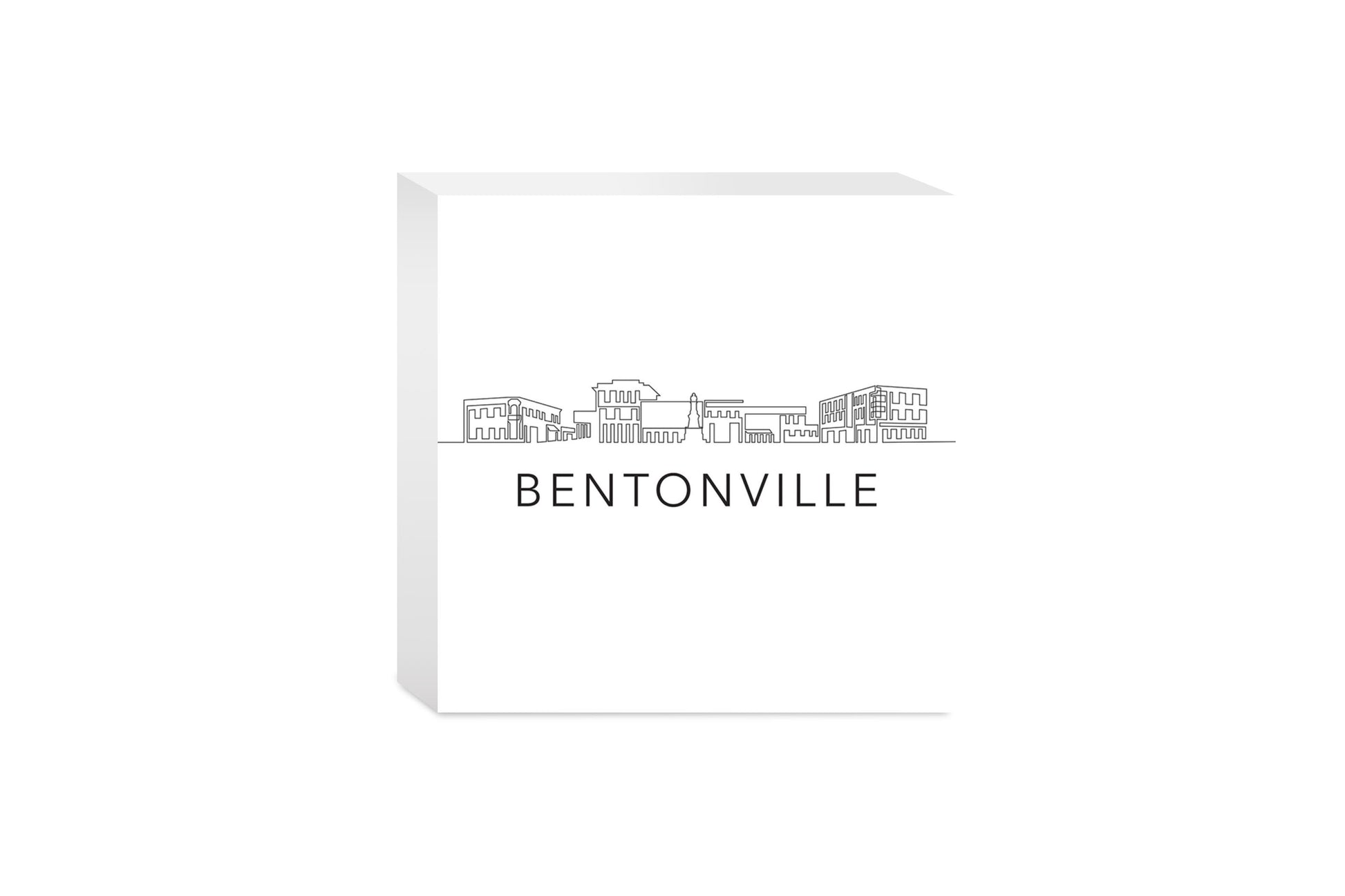 Minimalist B&W Arkansas Bentonville Skyline | Wood Block | Eaches | Min 4