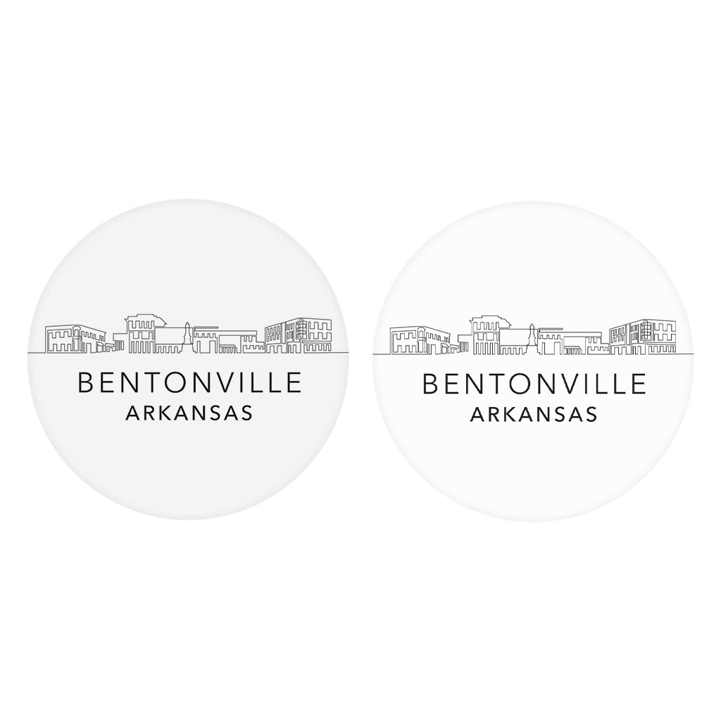 Minimalist B&W Arkansas Bentonville Skyline State| Absorbent Car Coasters | Set of 2 | Min 4