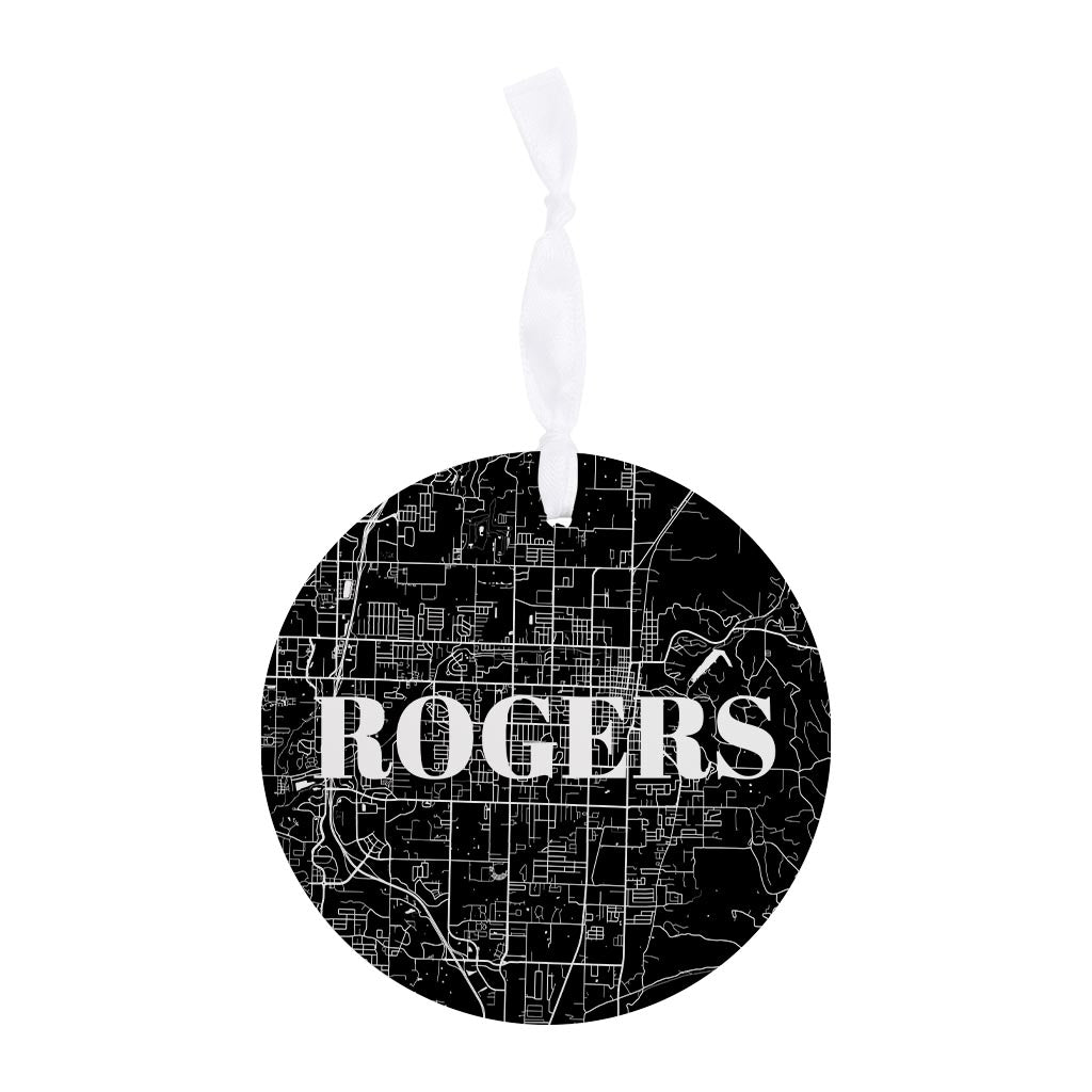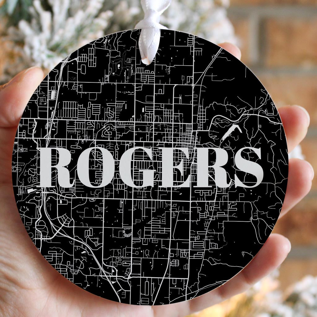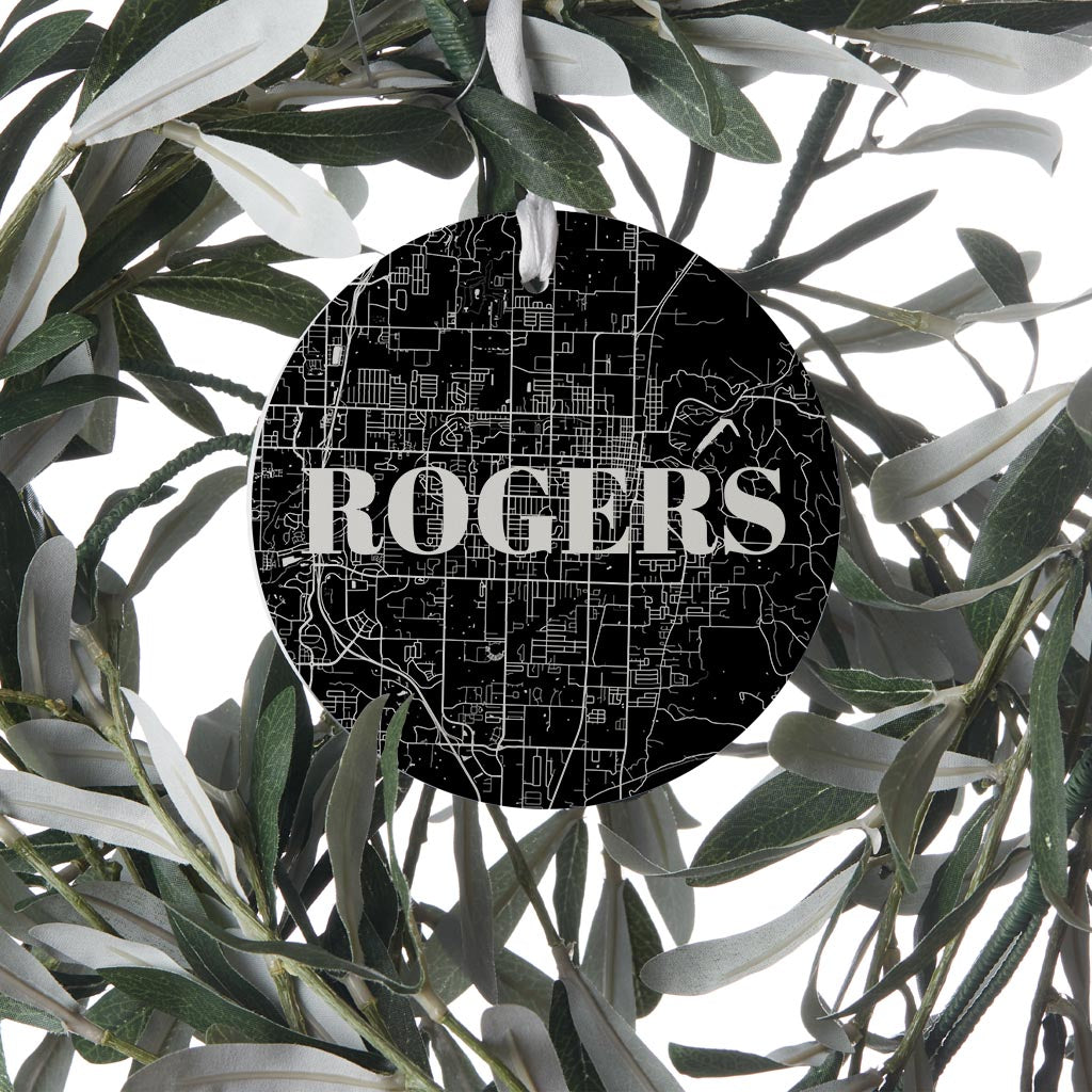 Minimalist B&W Arkansas Rogers Map | Wood Ornament | Eaches | Min 6
