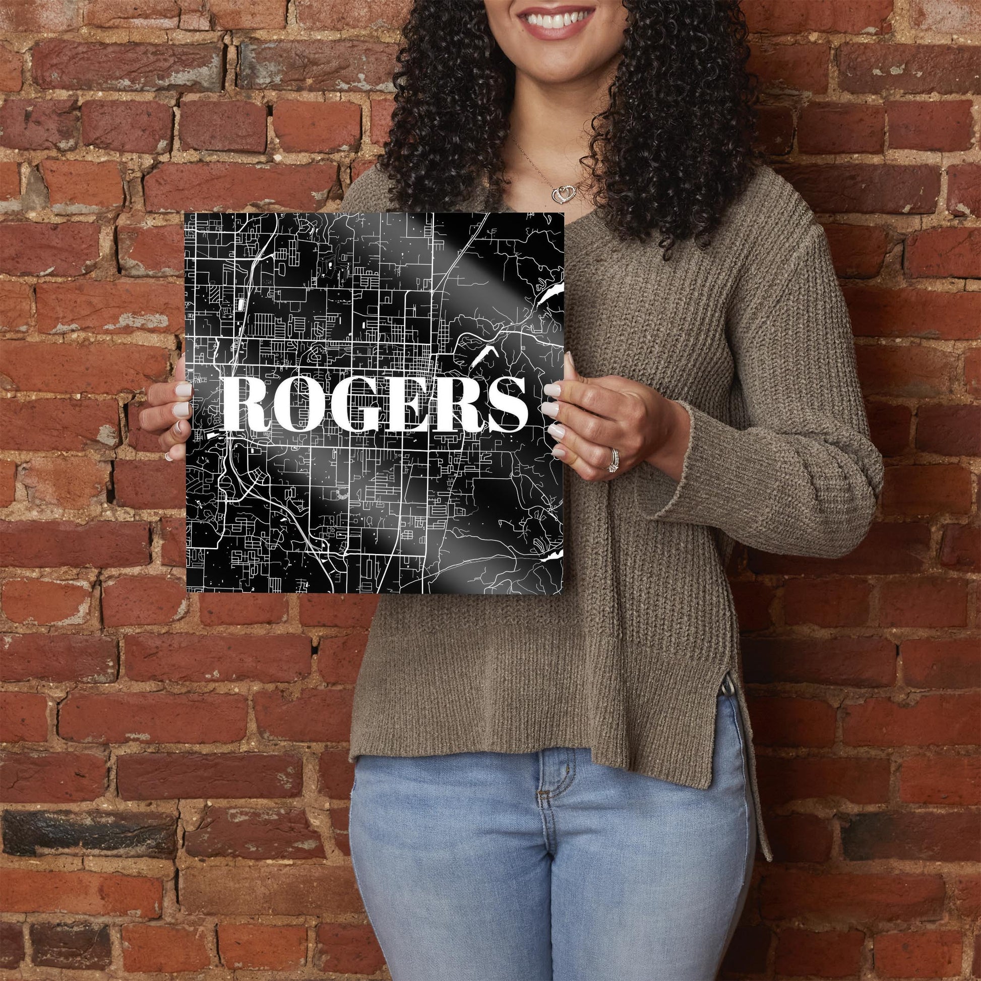 Minimalist B&W Arkansas Rogers Map | Hi-Def Glass Art | Eaches | Min 1