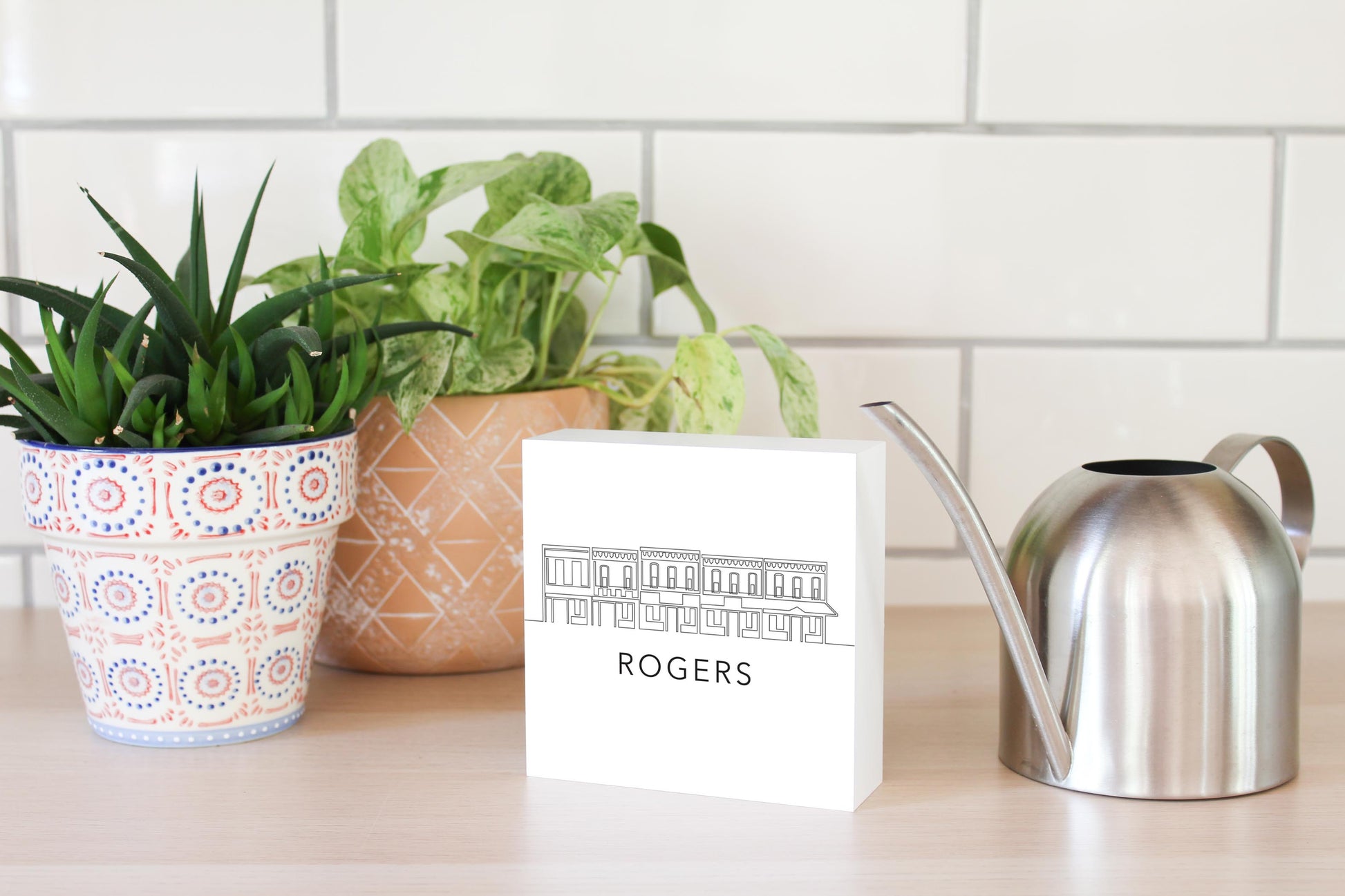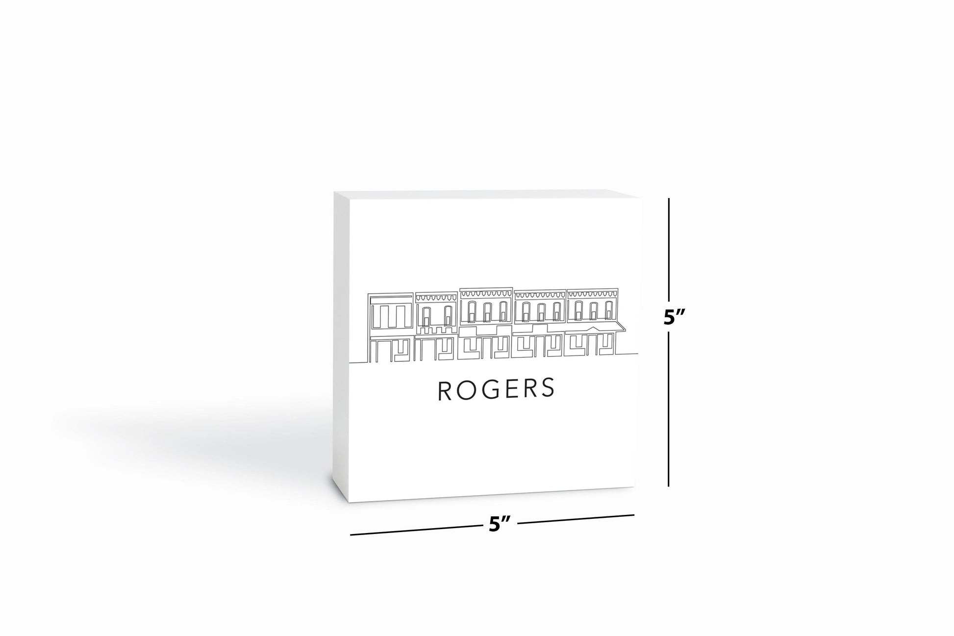 Minimalist B&W Arkansas Rogers Skyline | Wood Block | Eaches | Min 4