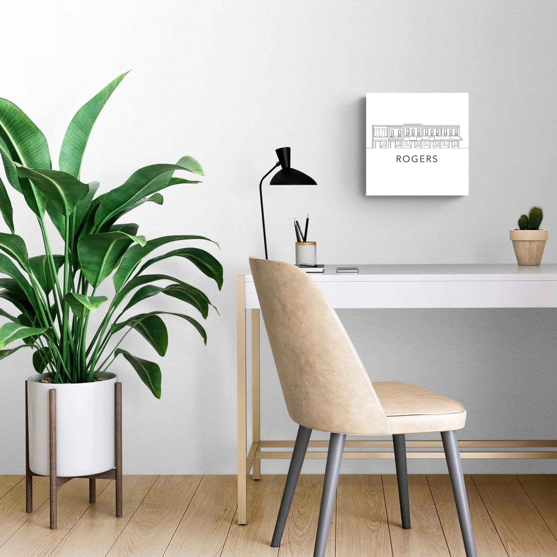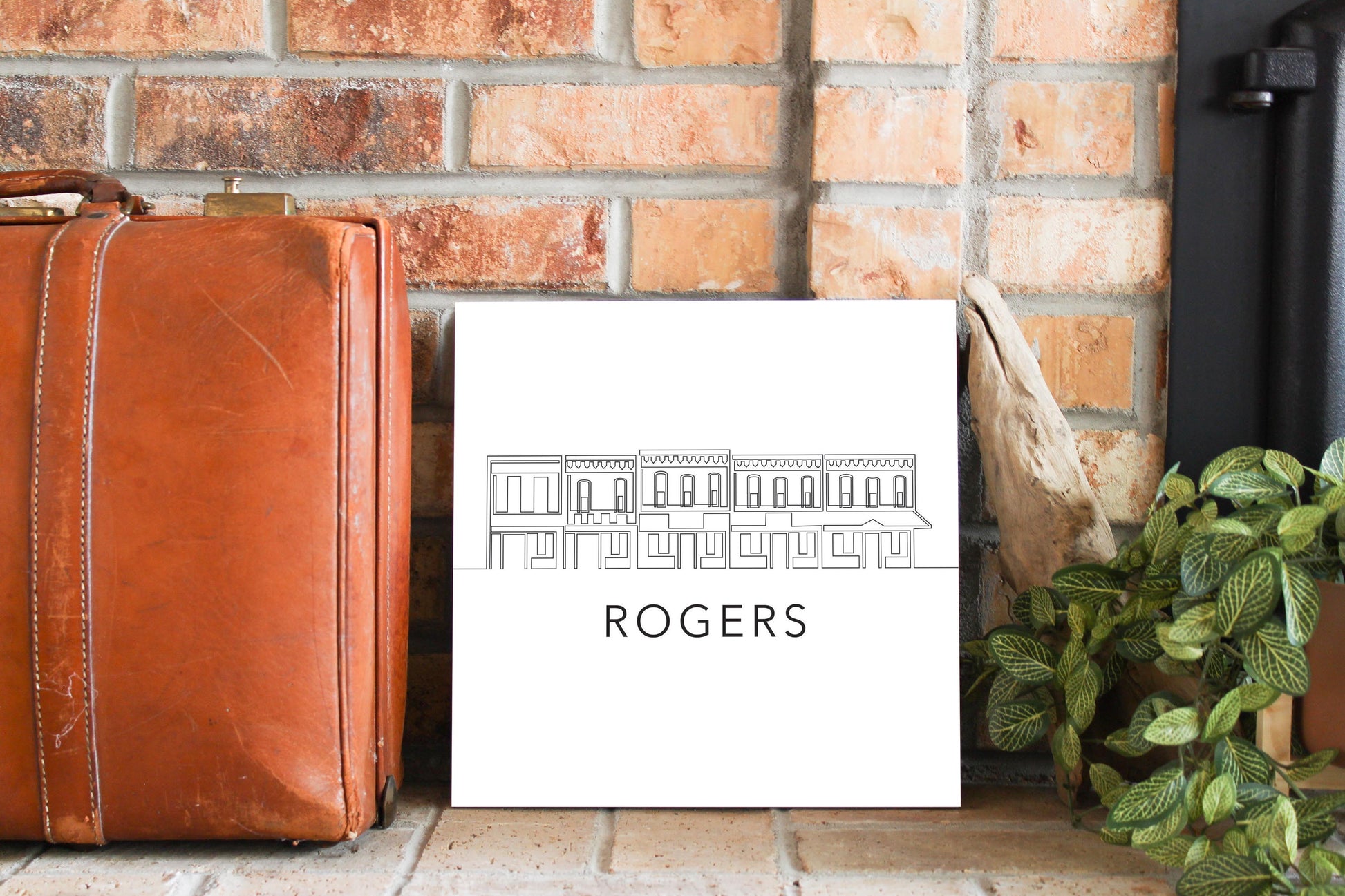 Minimalist B&W Arkansas Rogers Skyline | Wood Sign | Eaches | Min 2