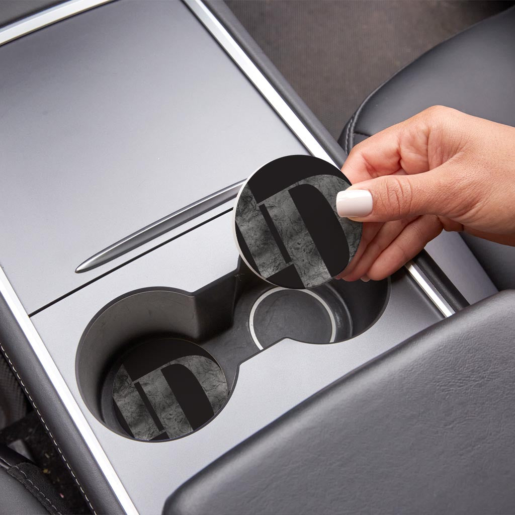 Minimalist B&W Idaho Black Initials | Absorbent Car Coasters | Set of 2 | Min 4