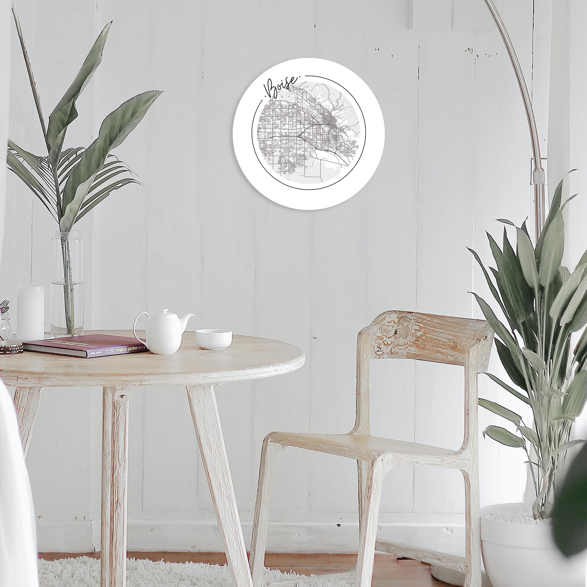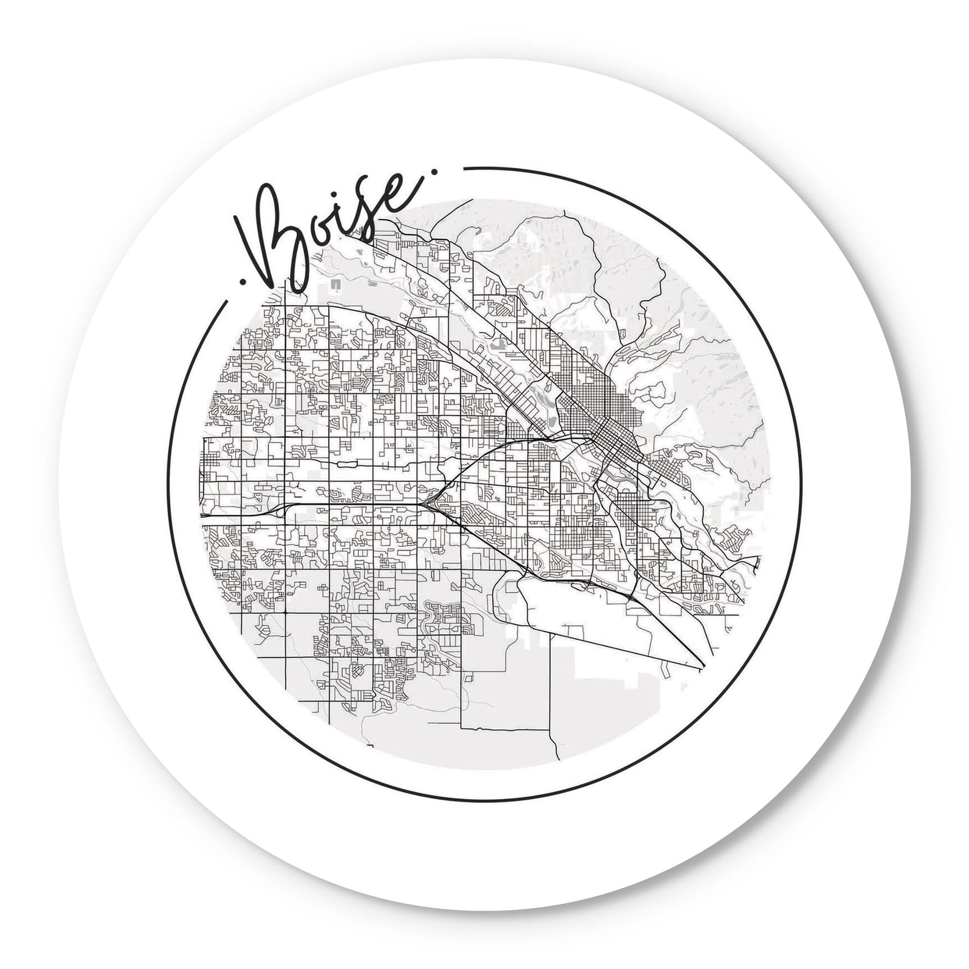 Minimalist B&W Idaho Boise Circle Map | Wood Sign | Eaches | Min 1