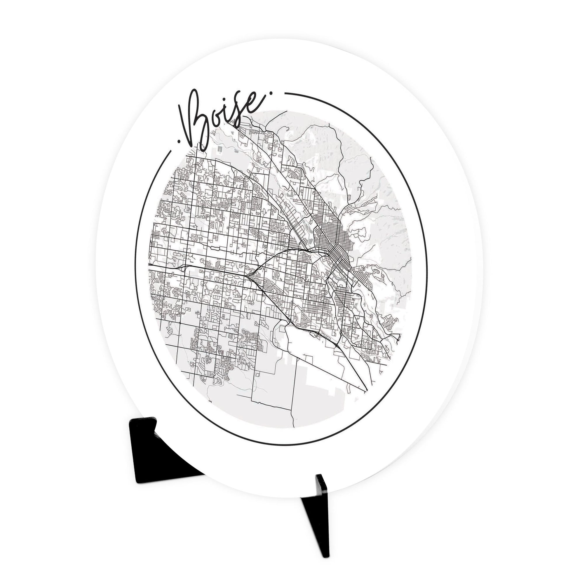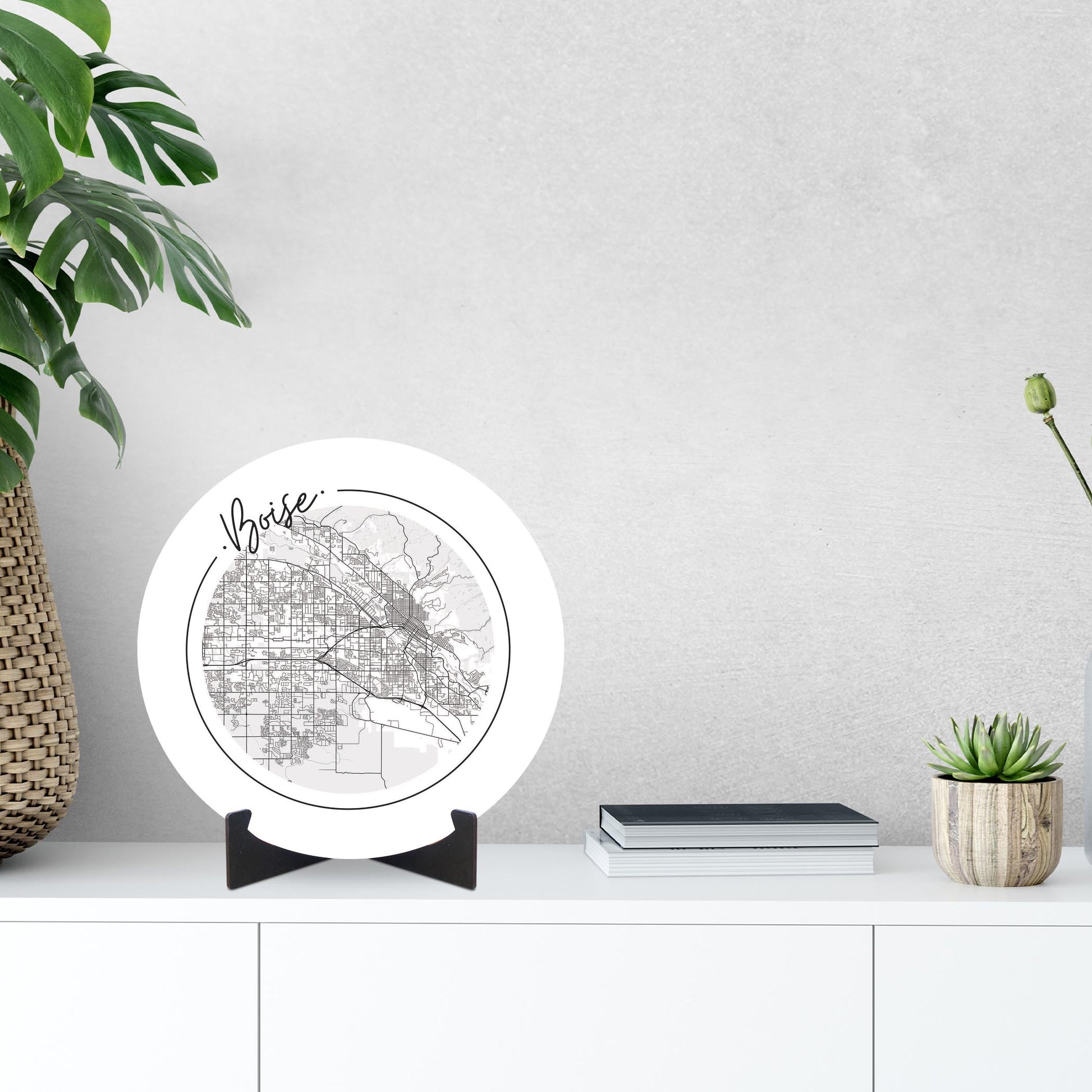 Minimalist B&W Idaho Boise Circle Map | Wood Sign | Eaches | Min 1