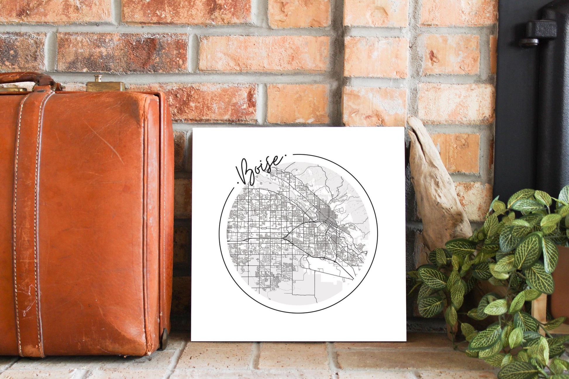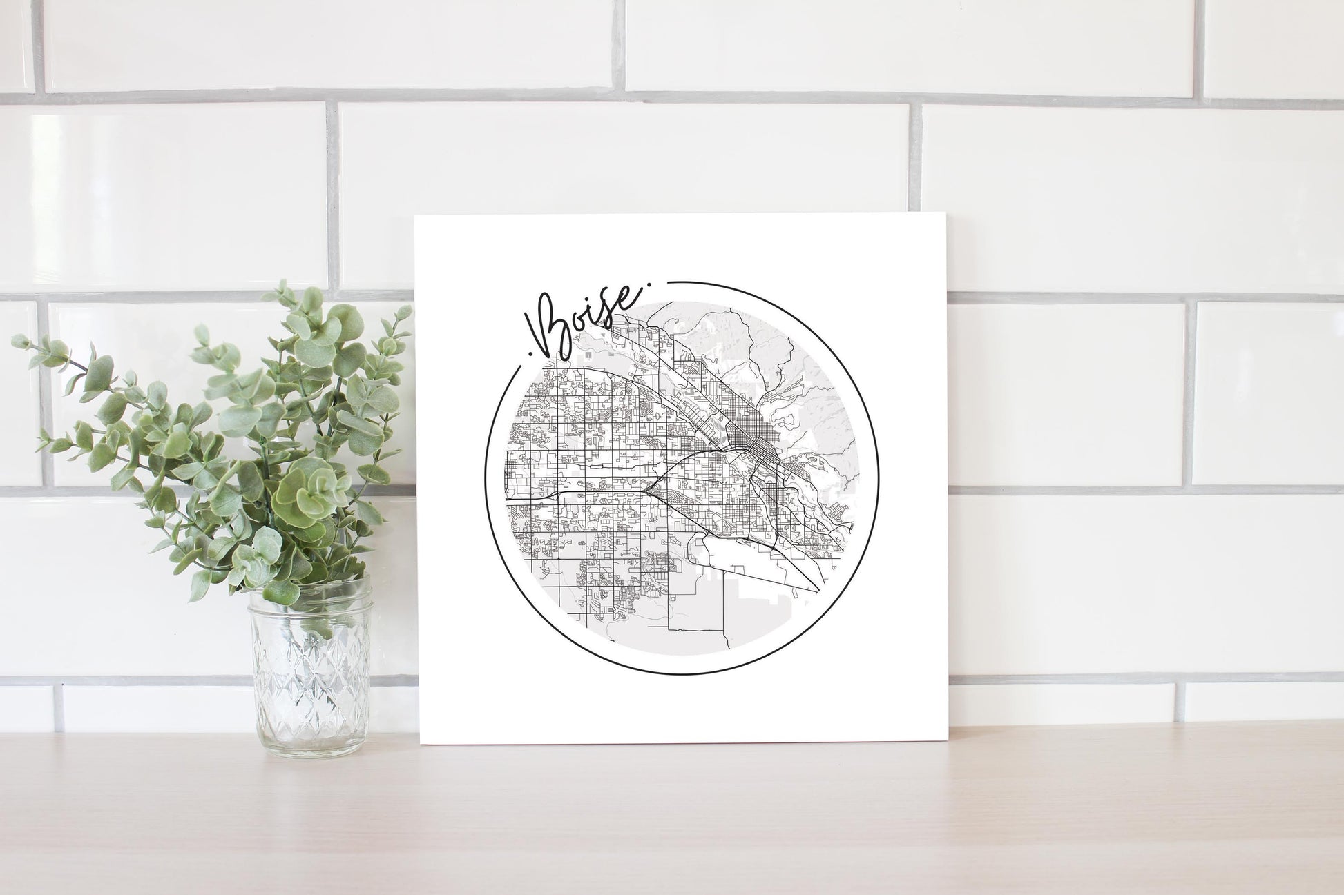 Minimalist B&W Idaho Boise Circle Map | Wood Sign | Eaches | Min 2