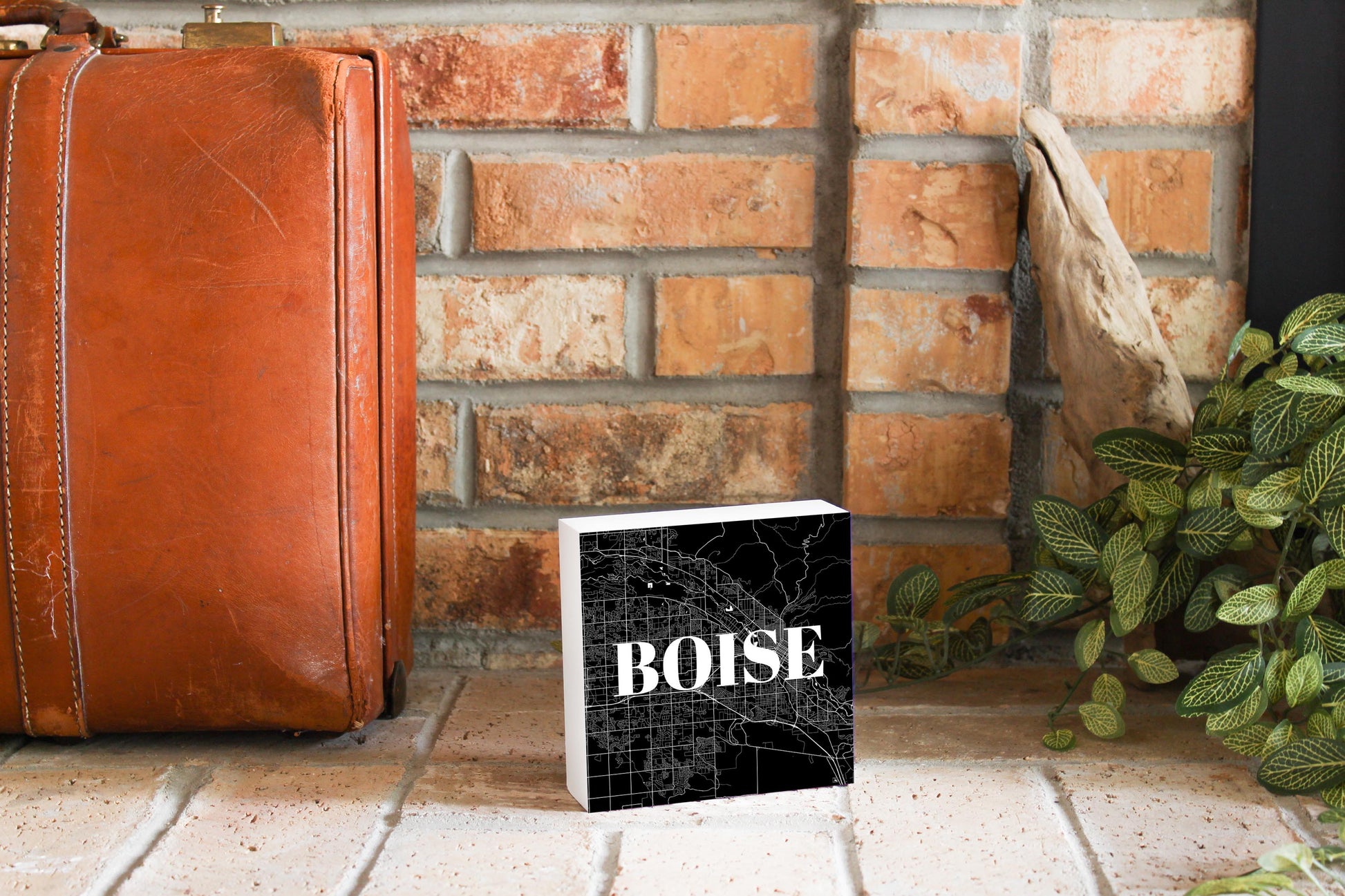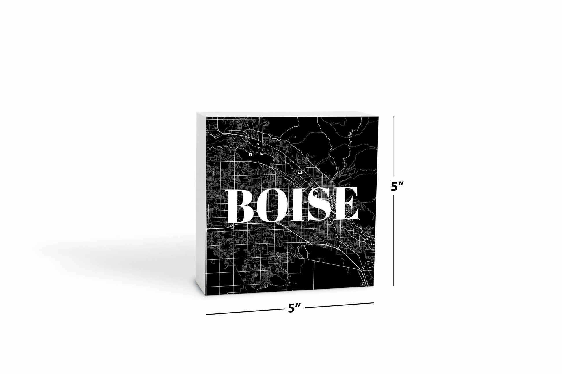 Minimalist B&W Idaho Boise Map | Wood Block | Eaches | Min 4