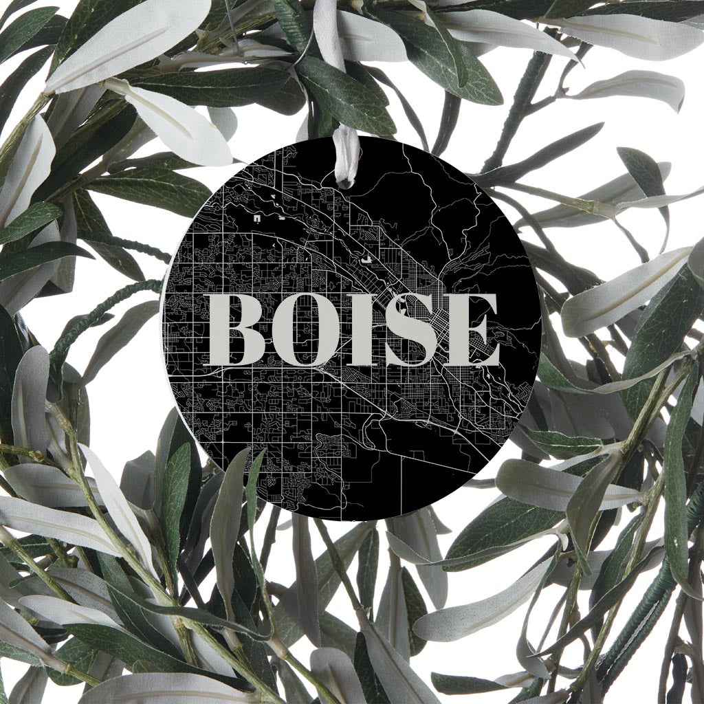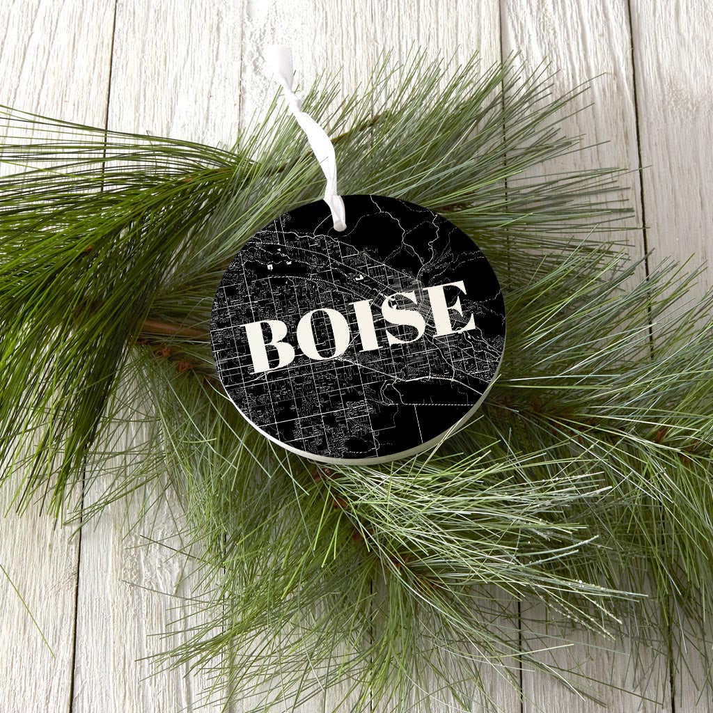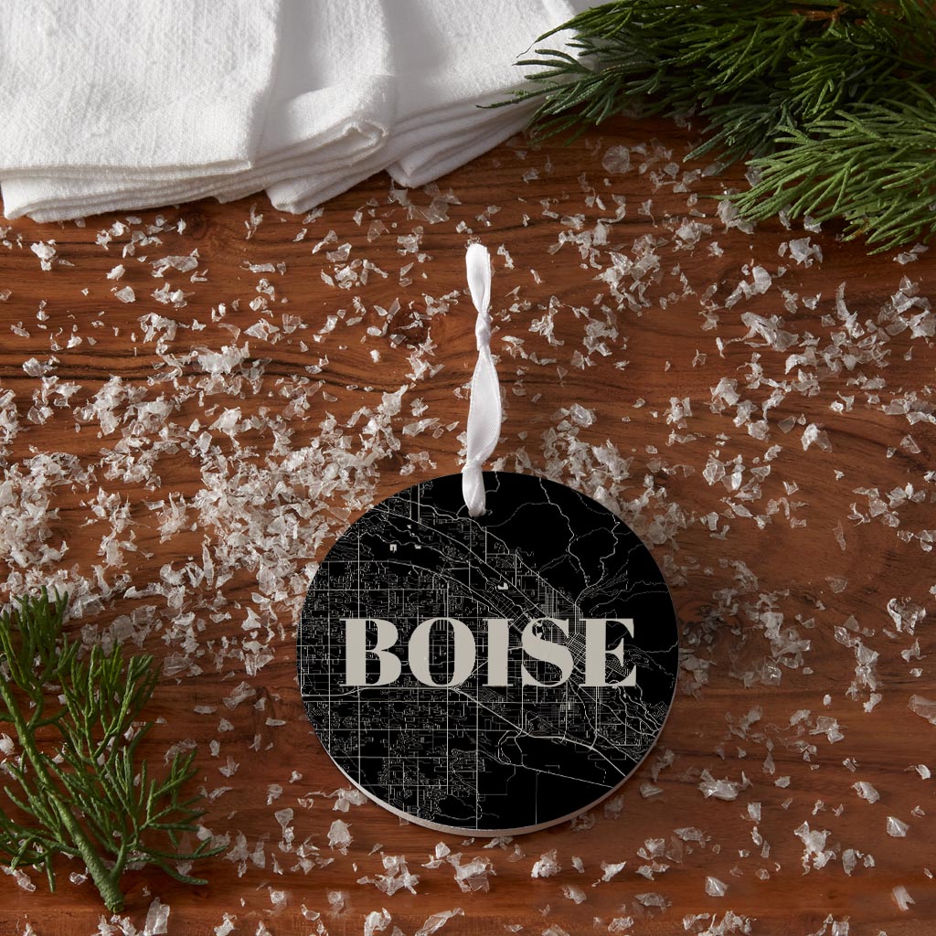 Minimalist B&W Idaho Boise Map | Wood Ornament | Eaches | Min 6