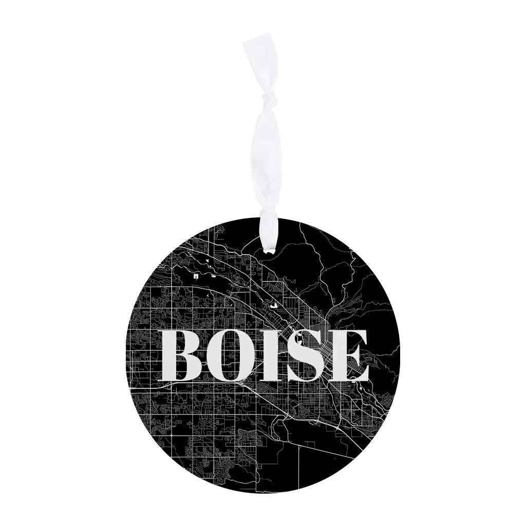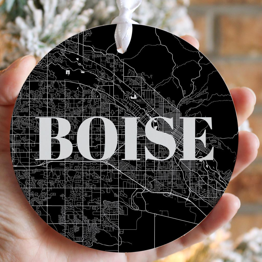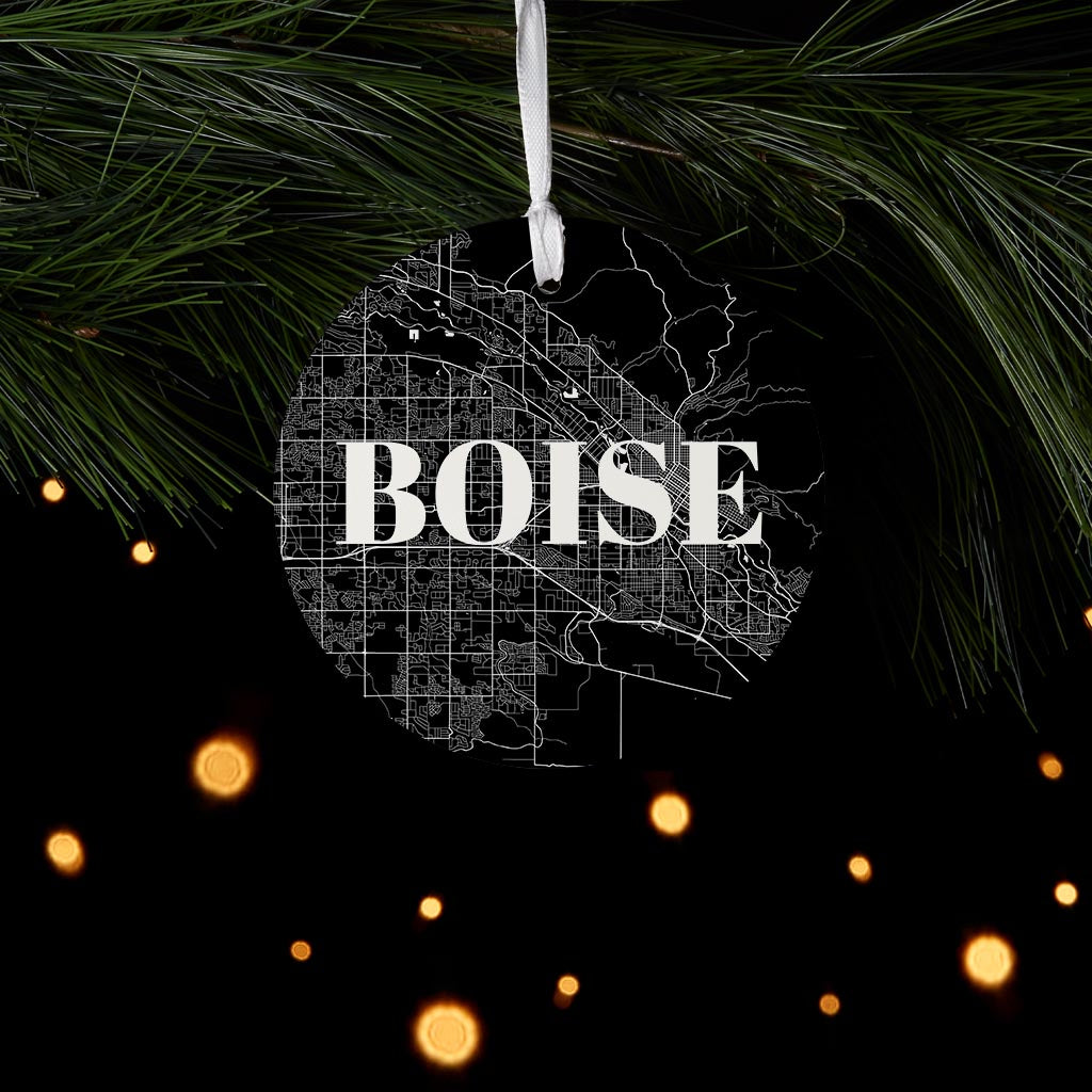 Minimalist B&W Idaho Boise Map | Wood Ornament | Eaches | Min 6