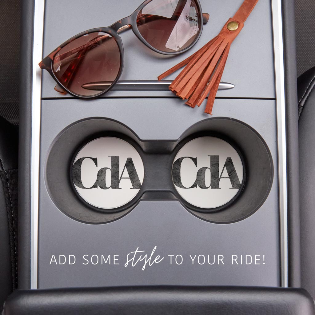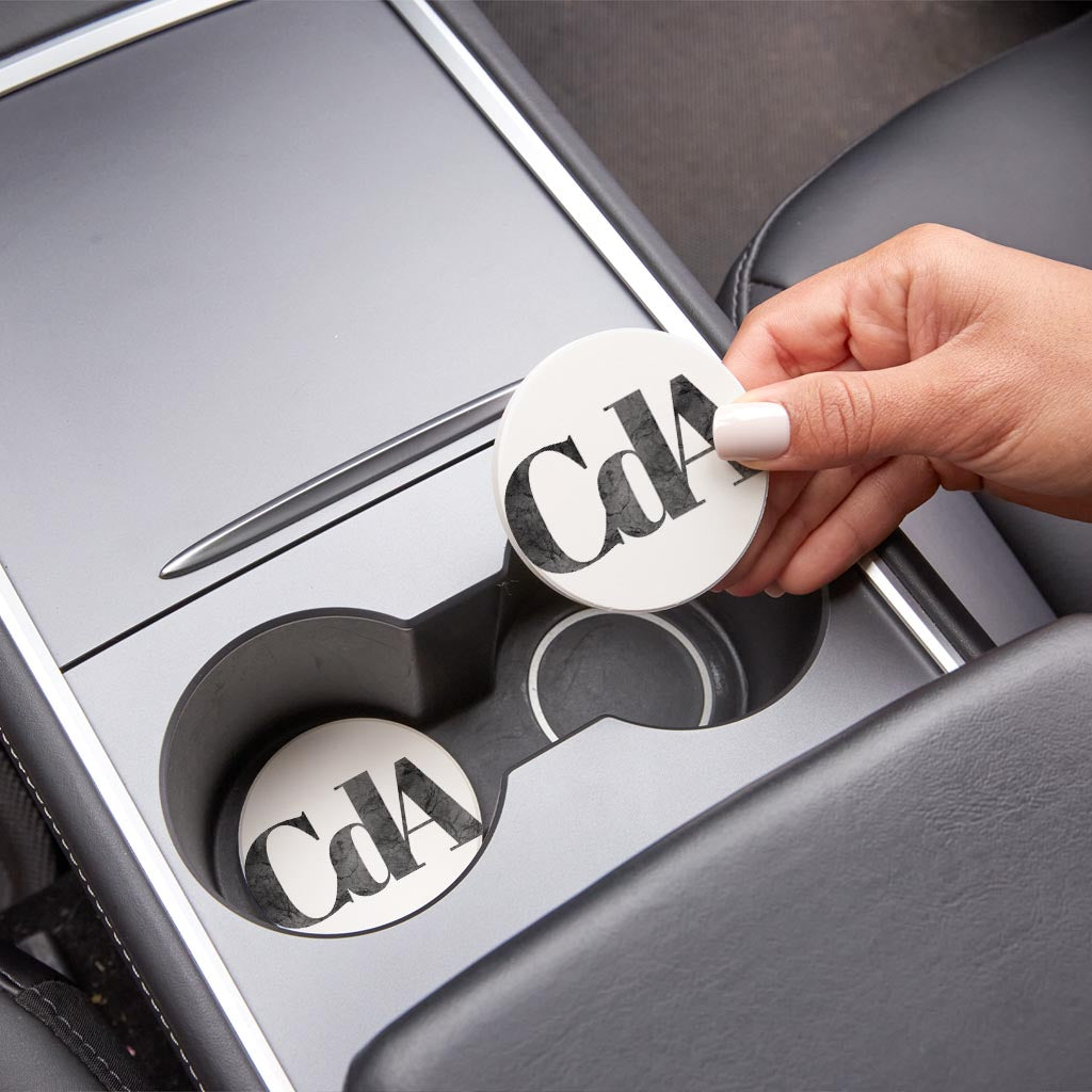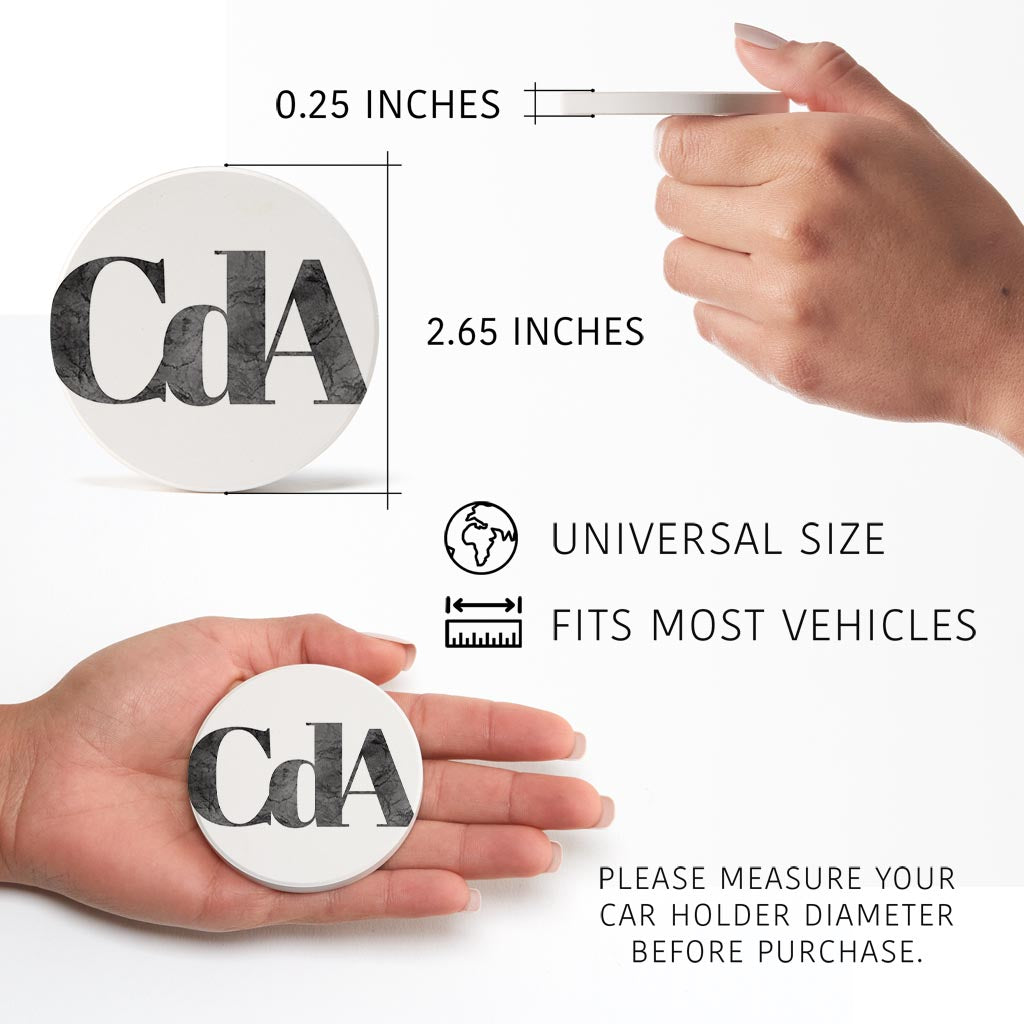 Minimalist B&W Idaho Cda White Initials | Absorbent Car Coasters | Set of 2 | Min 4