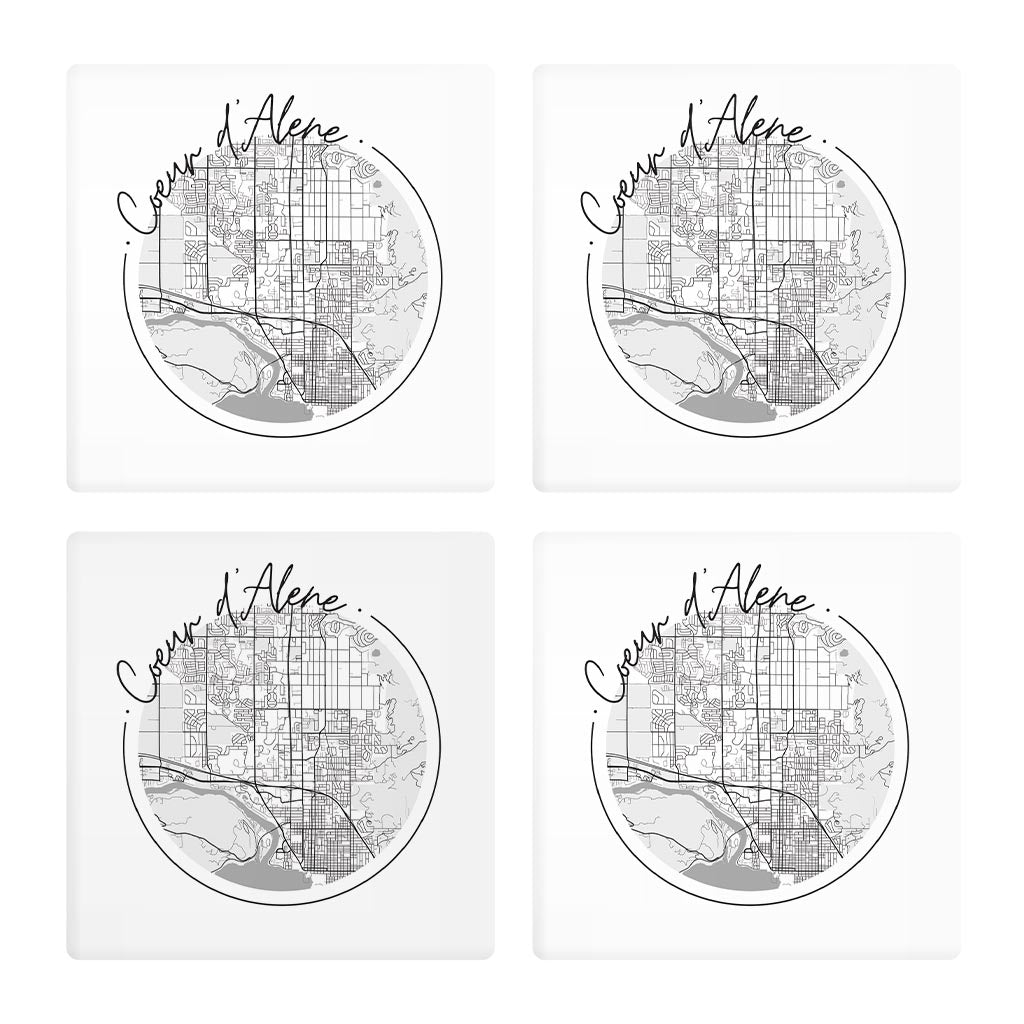 Minimalist B&W Idaho Coeur Dalene Circle Map | Absorbent Coasters | Set of 4 | Min 2
