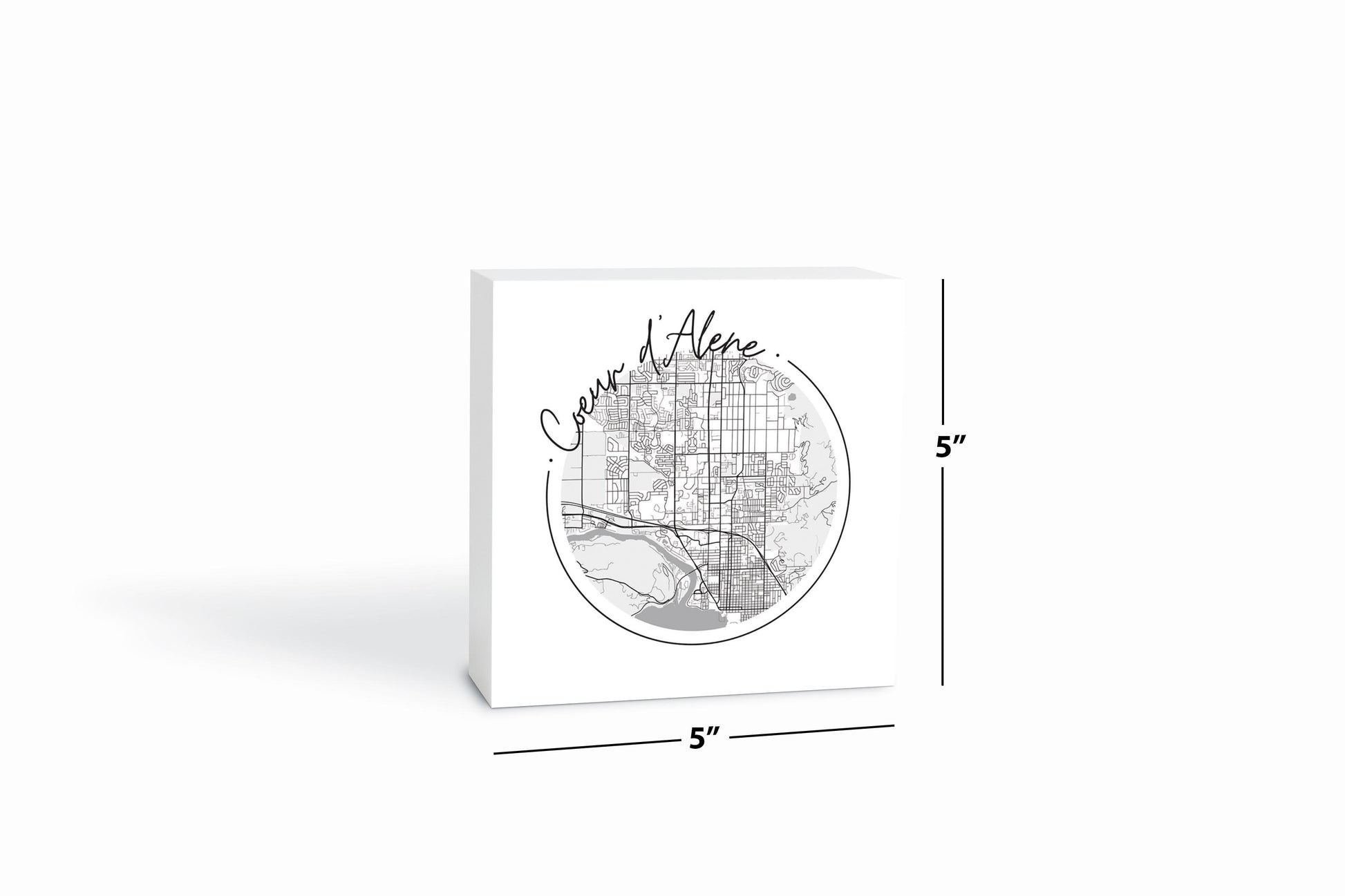 Minimalist B&W Idaho Coeur Dalene Circle Map | Wood Block | Eaches | Min 4