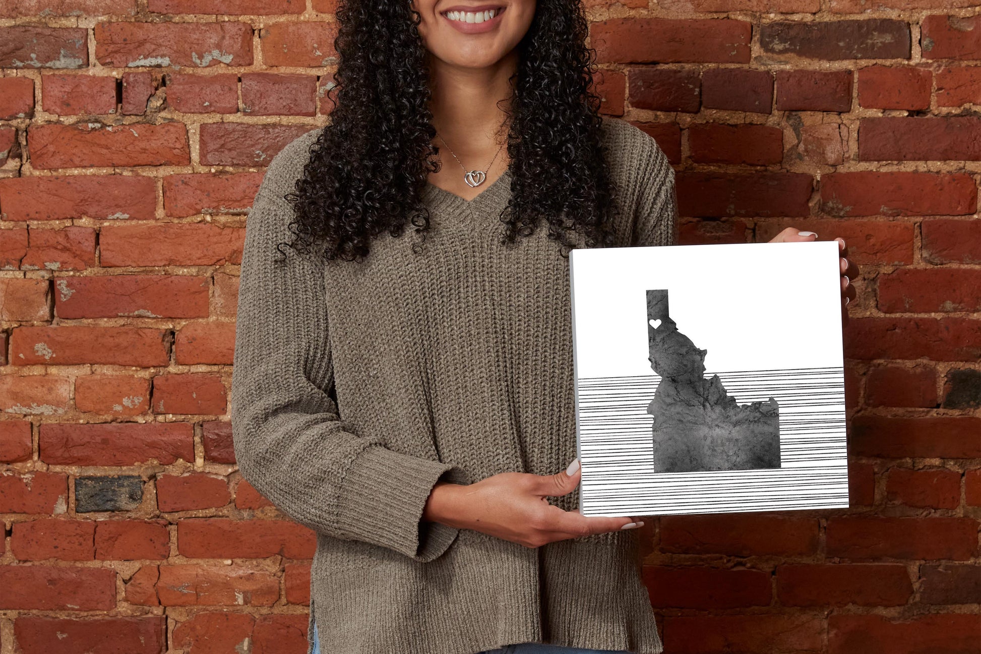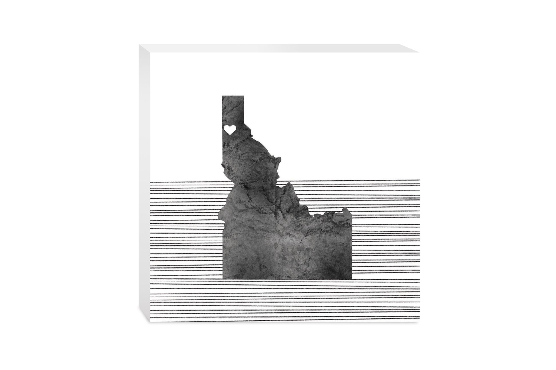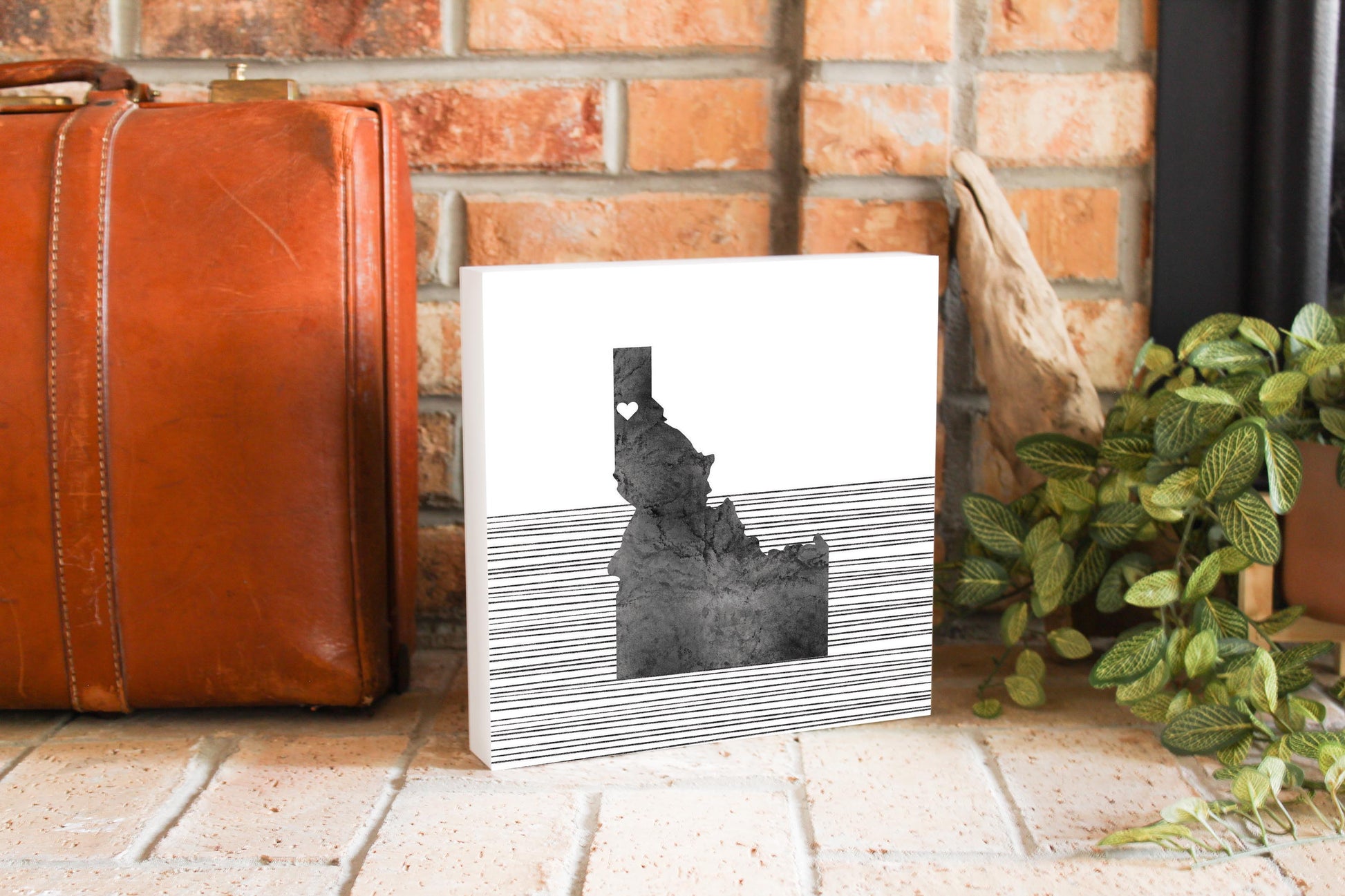 Minimalist B&W Idaho Coeur Dalene Heart Straight Lines | Wood Block | Eaches | Min 2