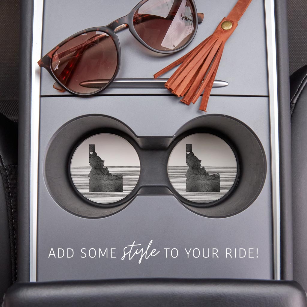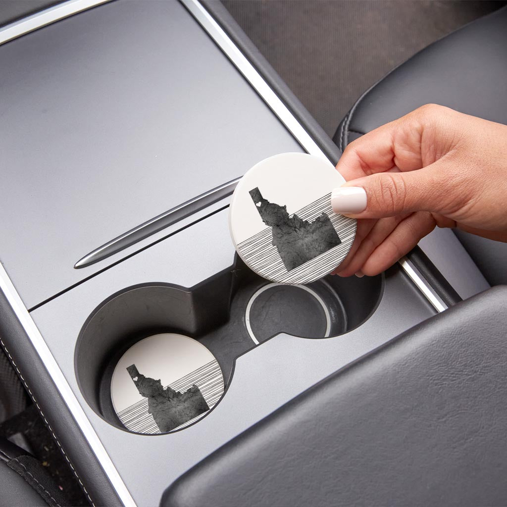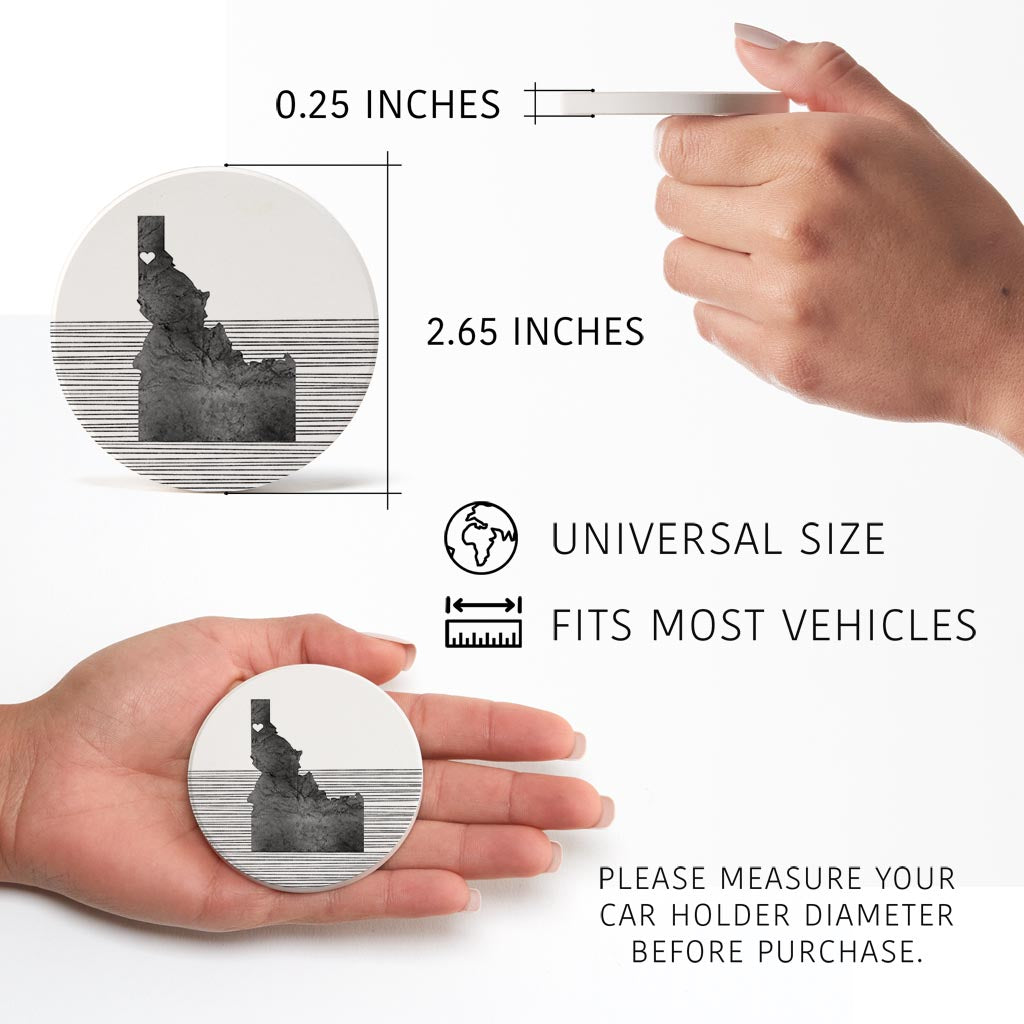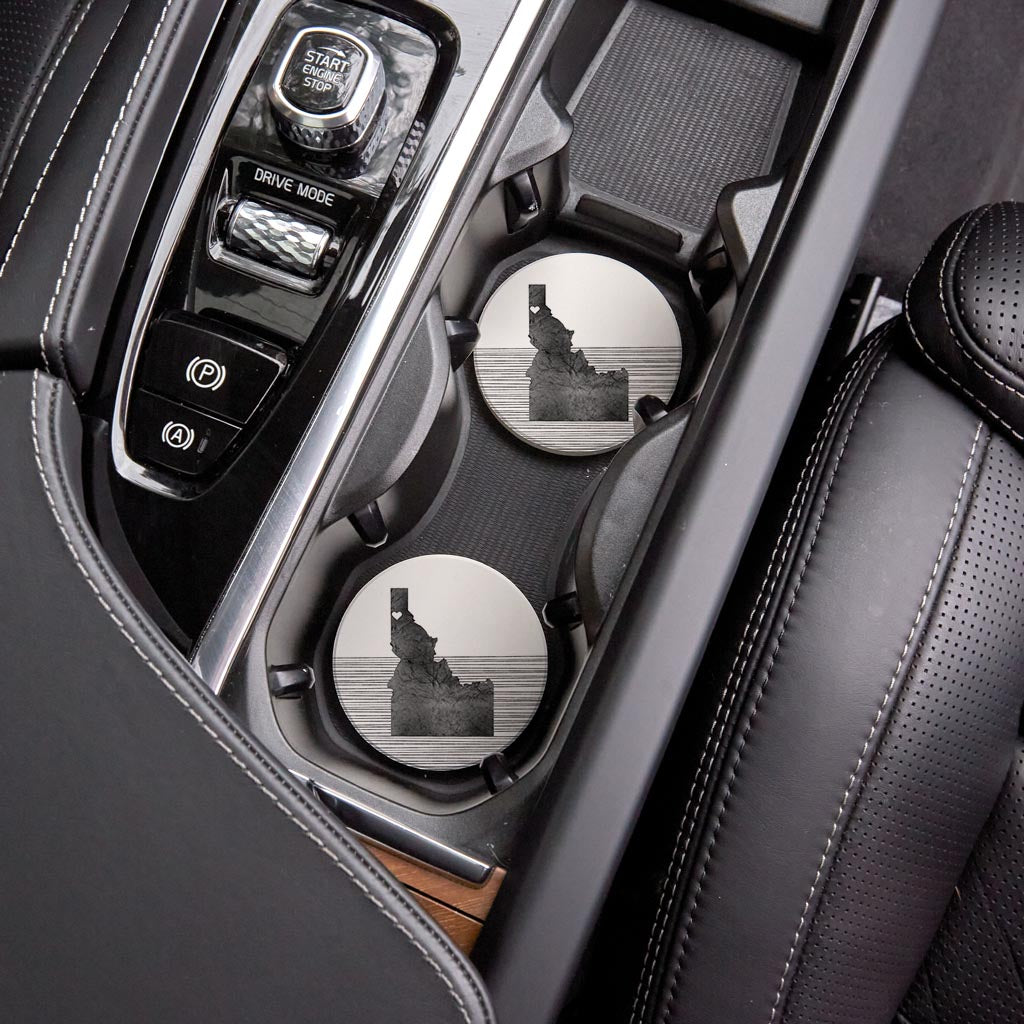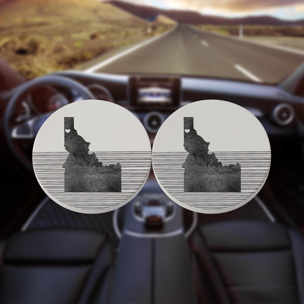 Minimalist B&W Idaho Coeur Dalene Heart Straight Lines | Absorbent Car Coasters | Set of 2 | Min 4