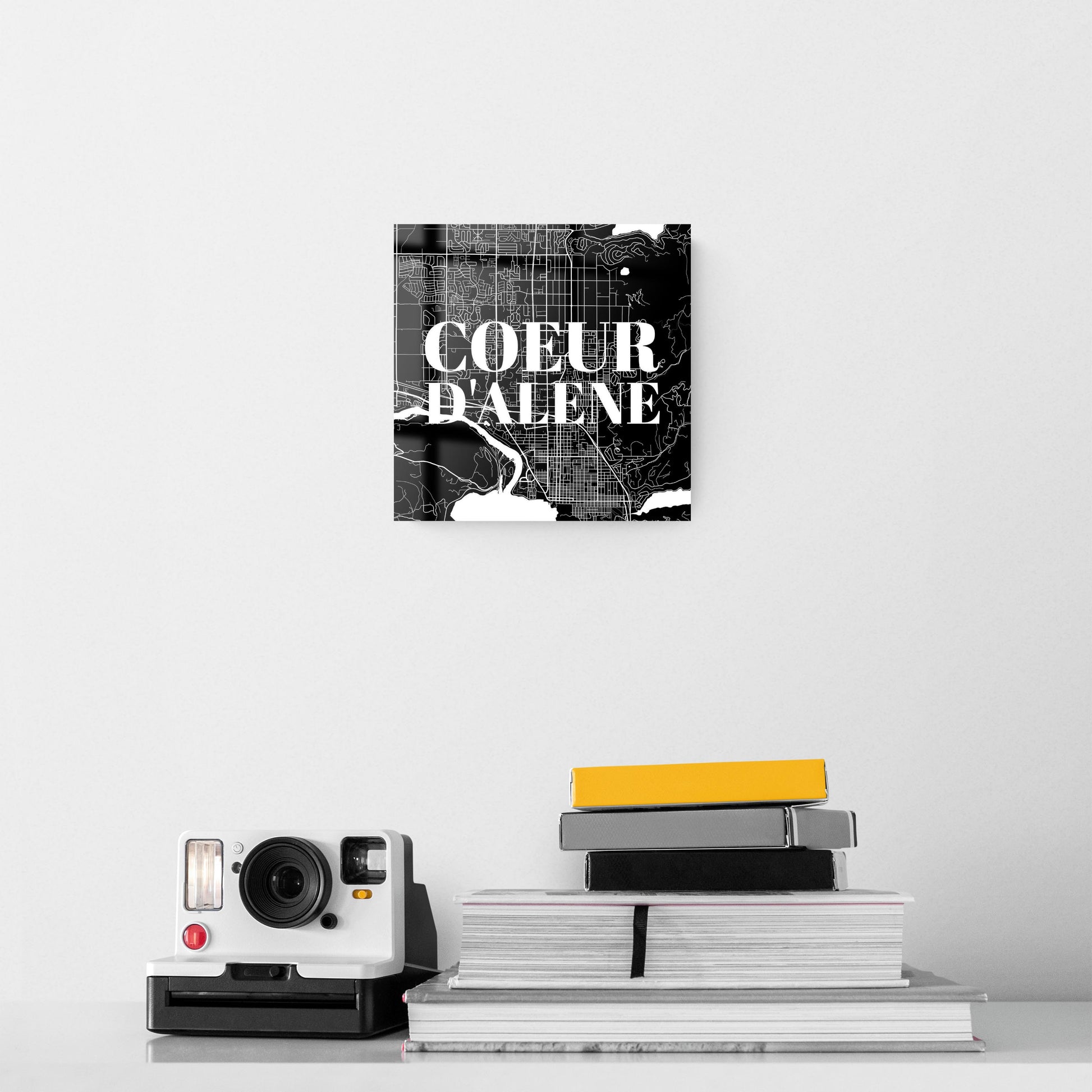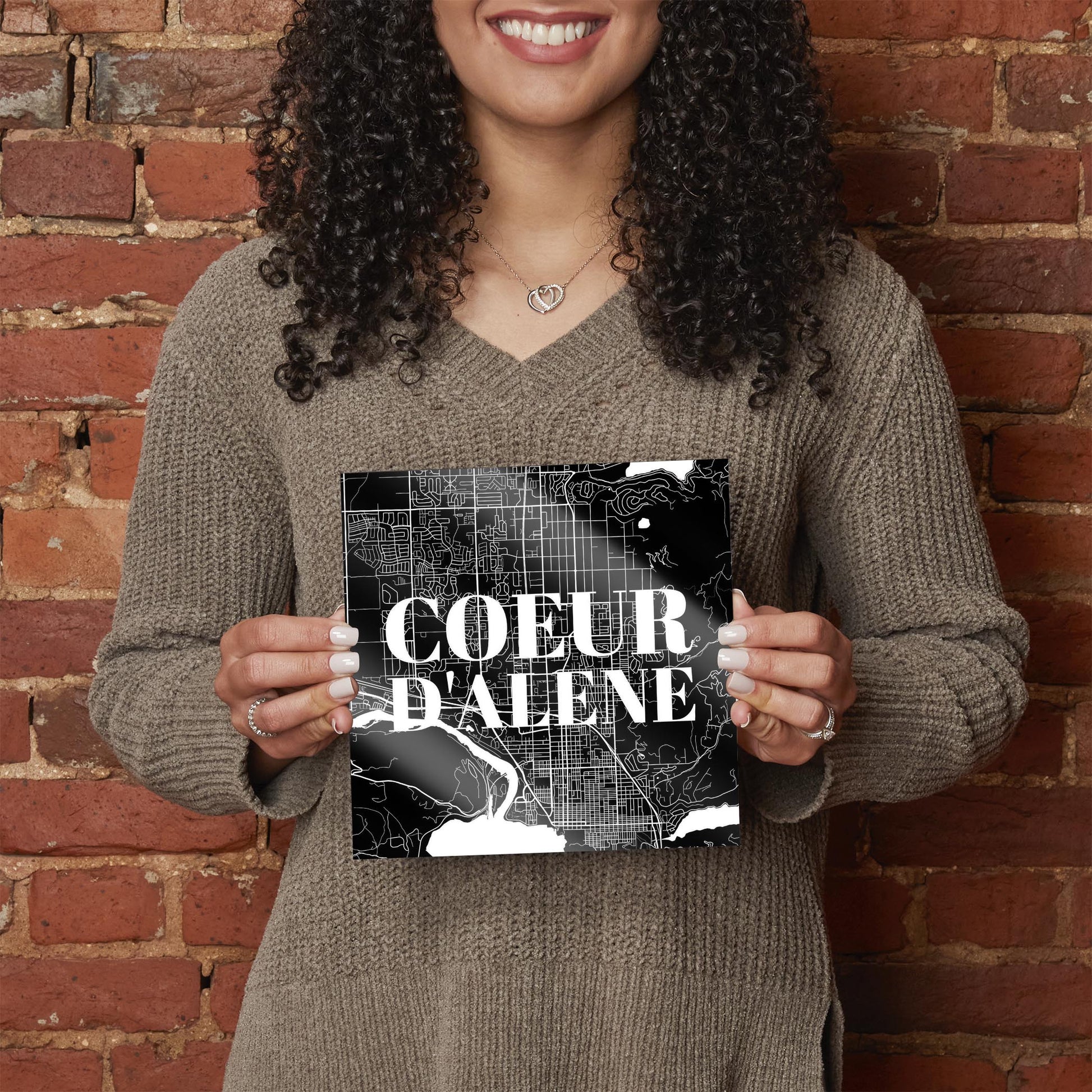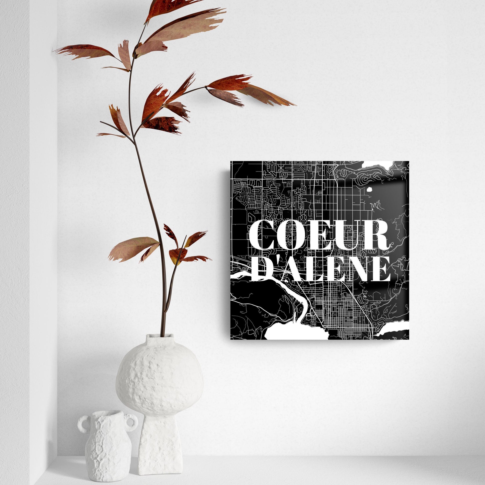 Minimalist B&W Idaho Coeur Dalene Map | Hi-Def Glass Art | Eaches | Min 2