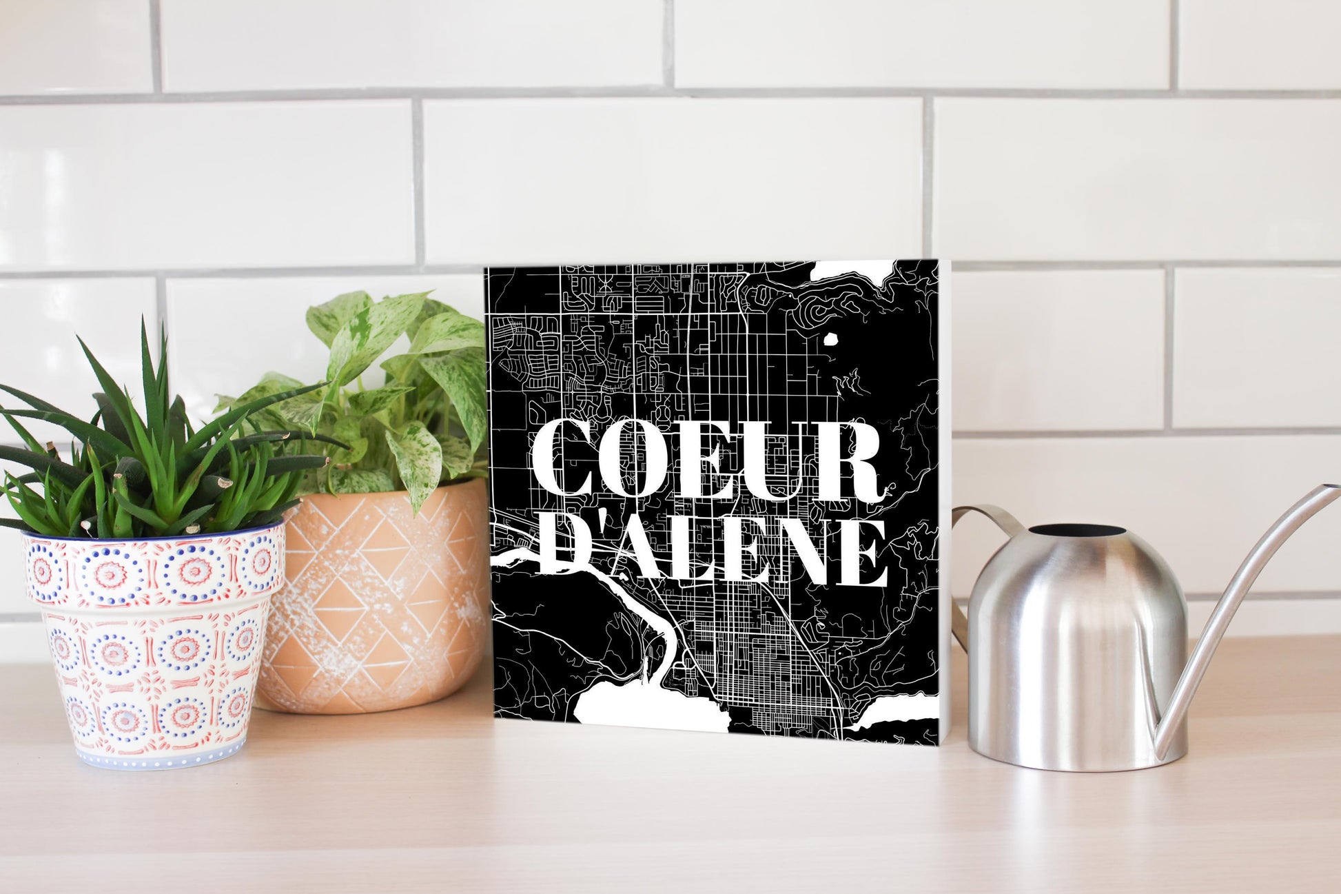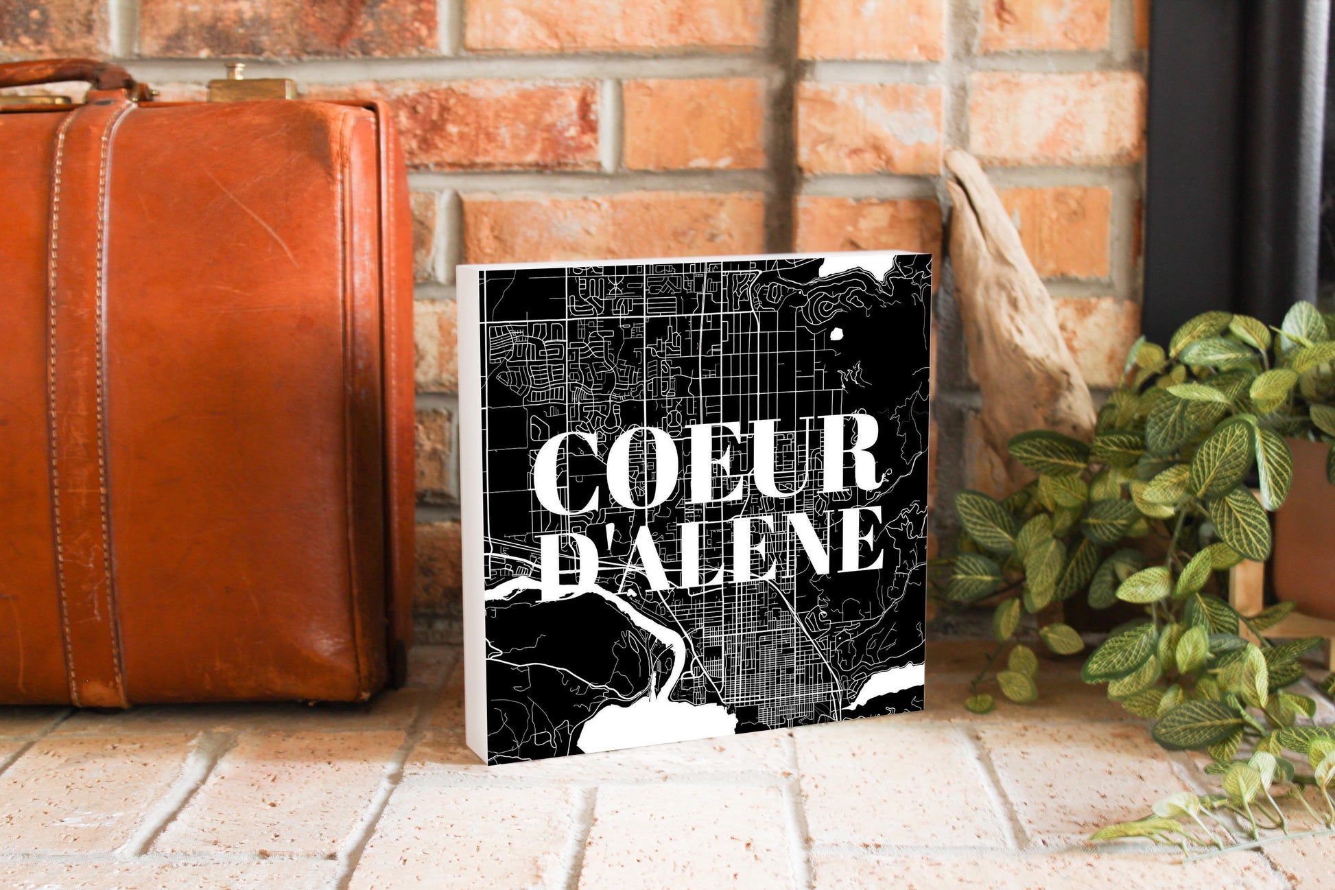 Minimalist B&W Idaho Coeur Dalene Map | Wood Block | Eaches | Min 2