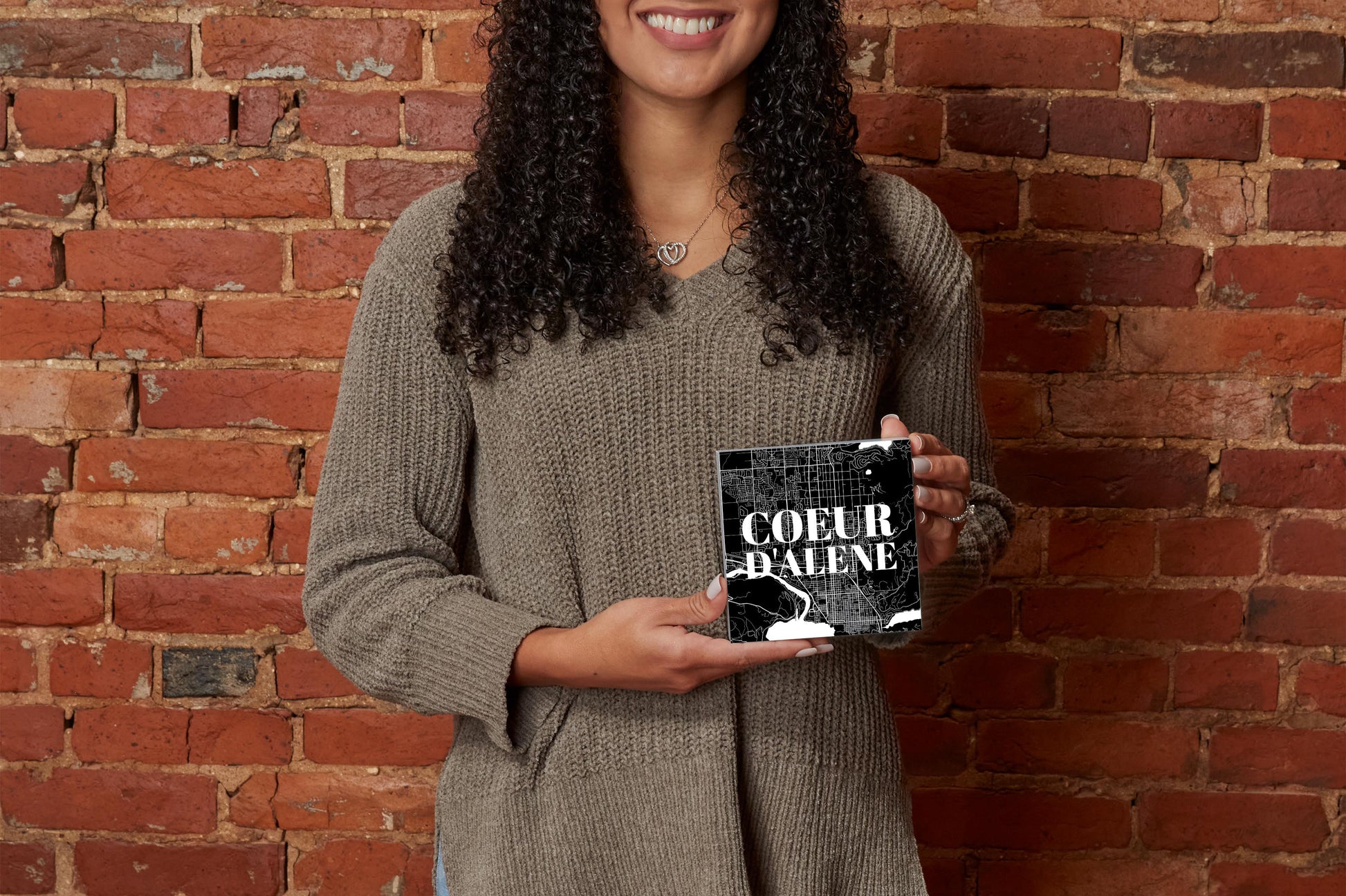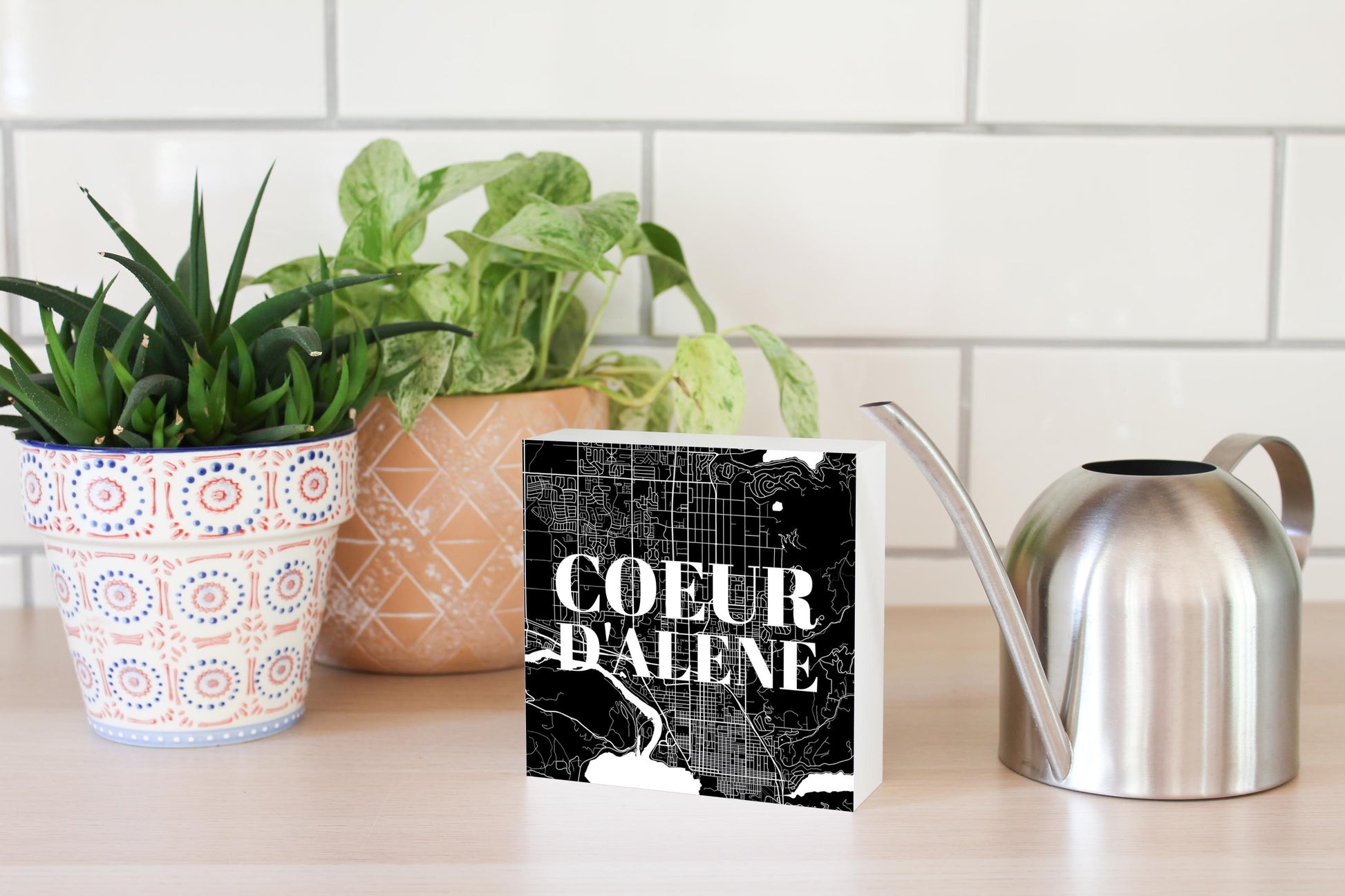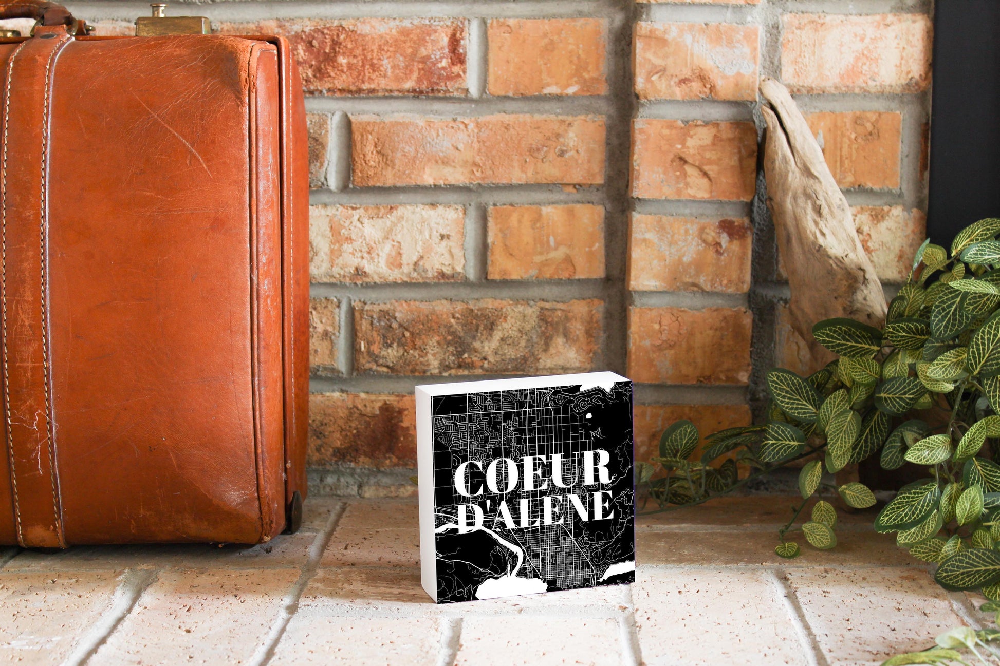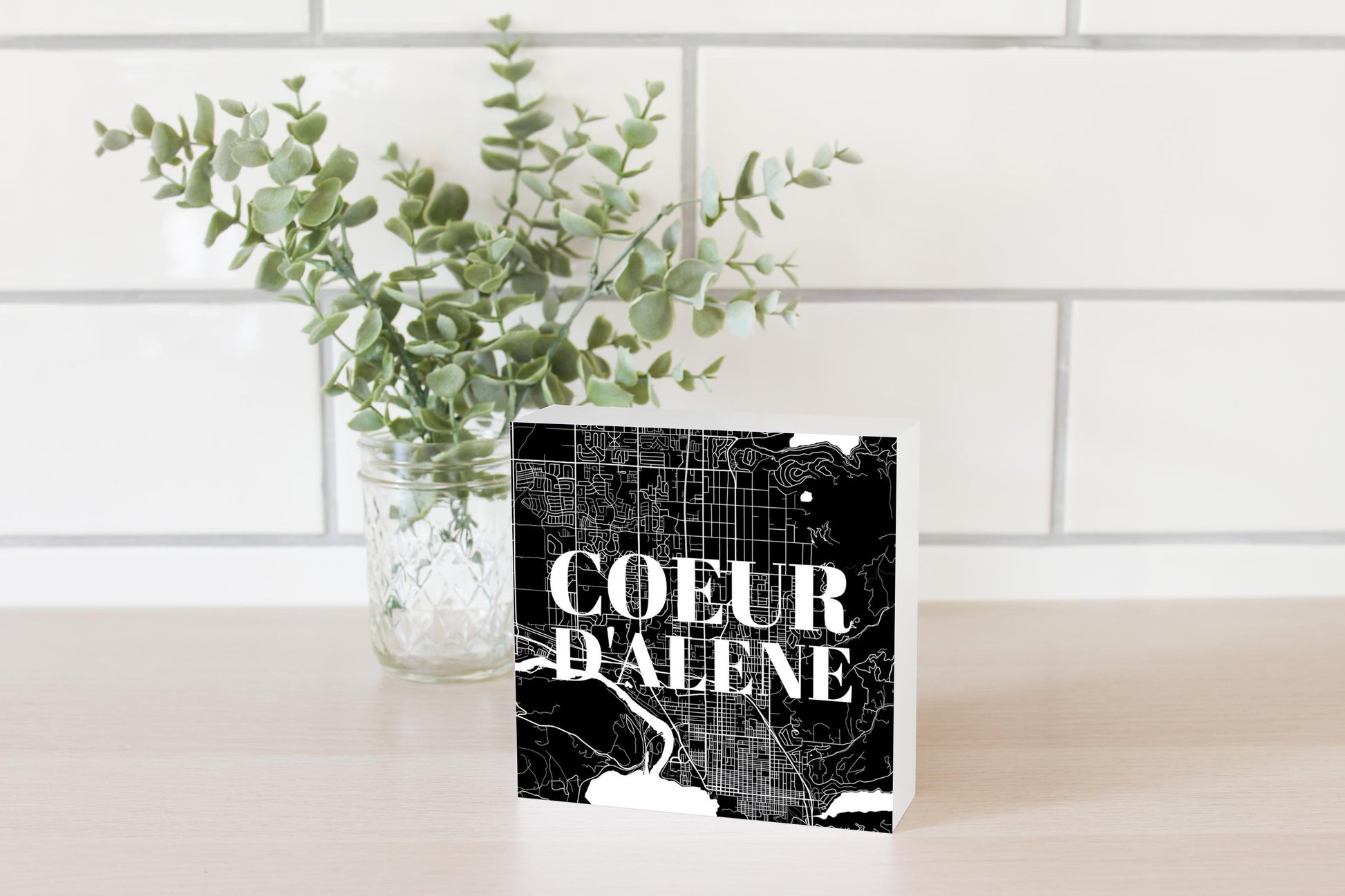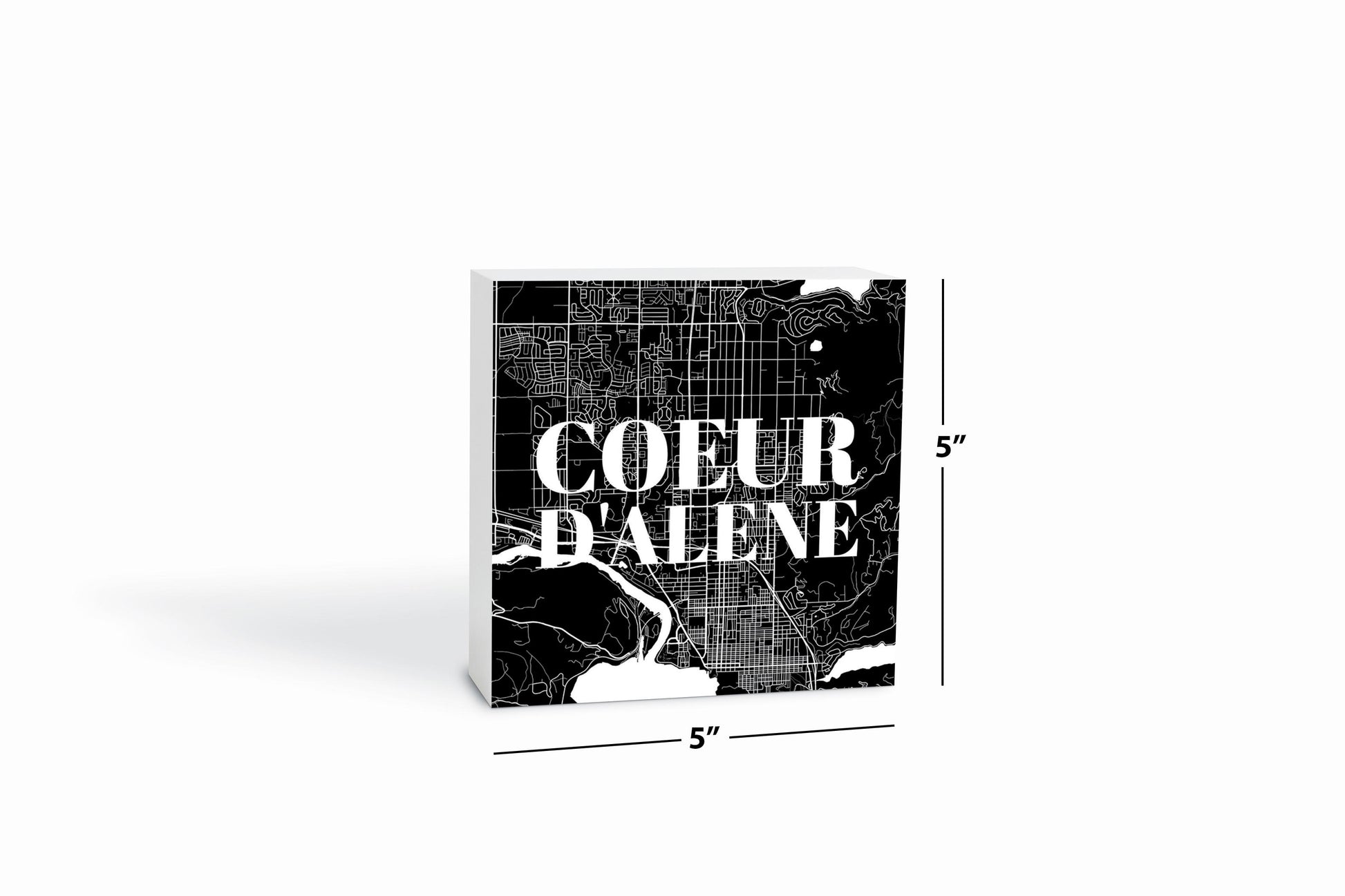 Minimalist B&W Idaho Coeur Dalene Map | Wood Block | Eaches | Min 4