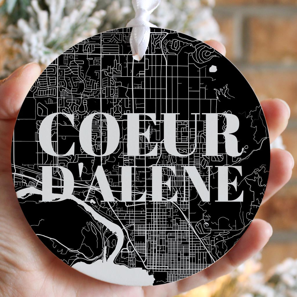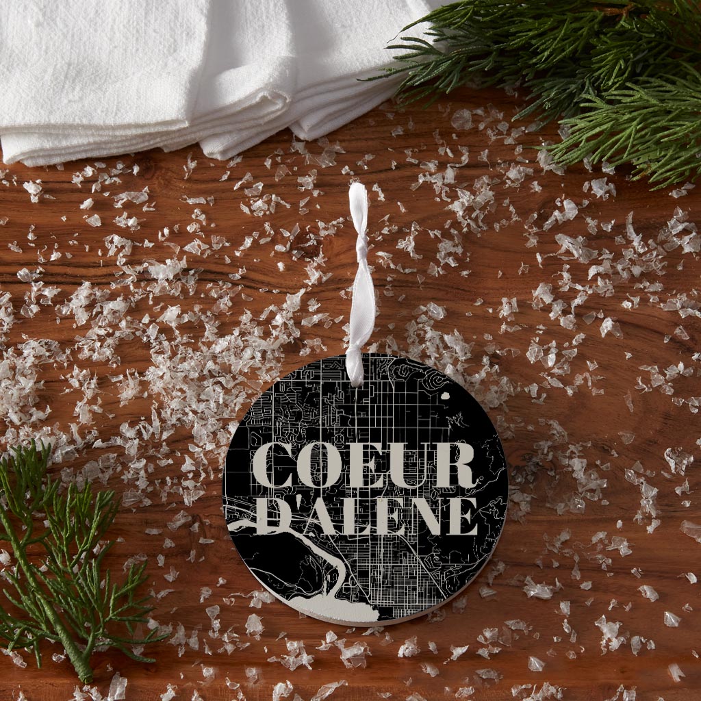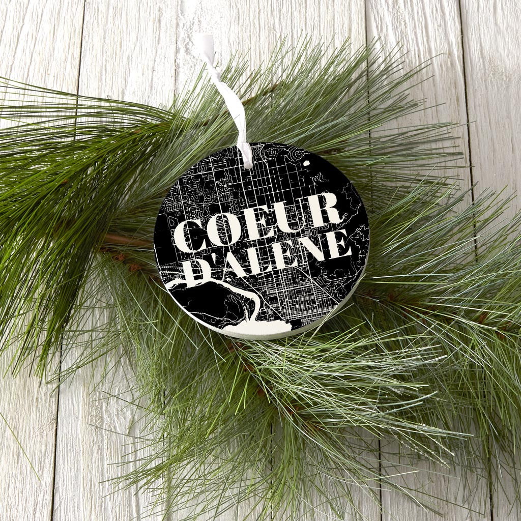 Minimalist B&W Idaho Coeur Dalene Map | Wood Ornament | Eaches | Min 6