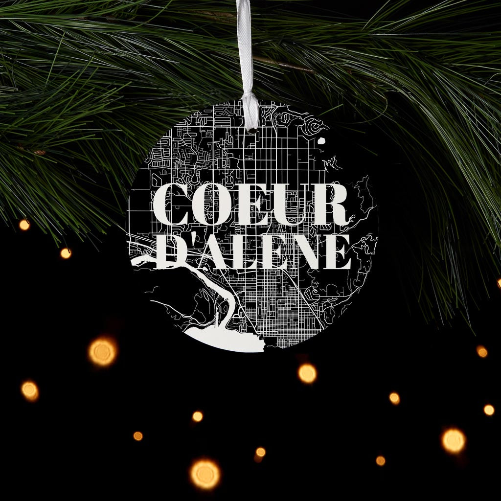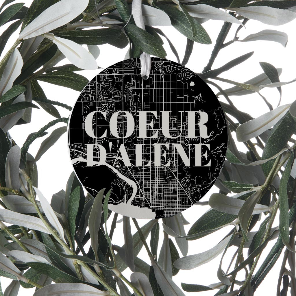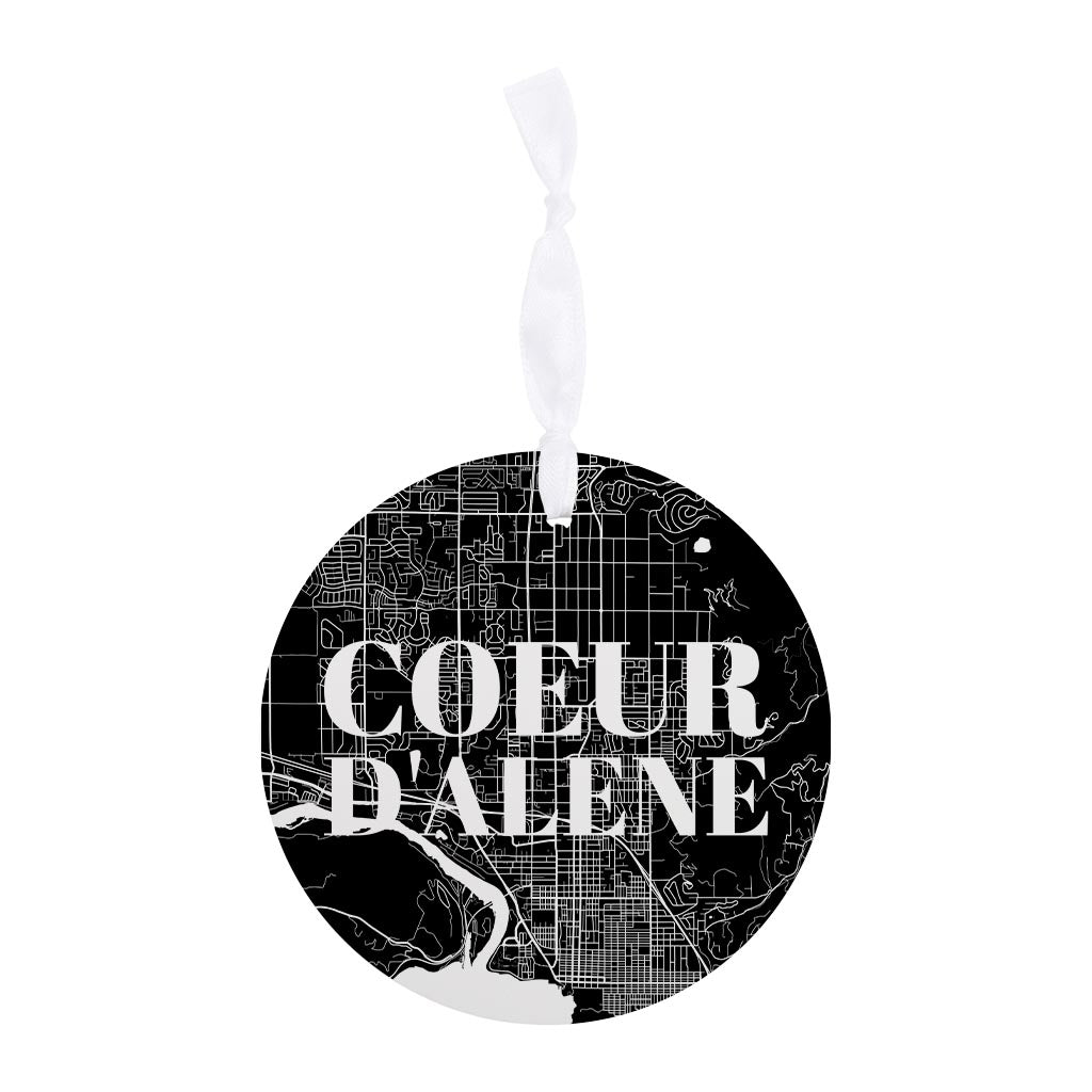 Minimalist B&W Idaho Coeur Dalene Map | Wood Ornament | Eaches | Min 6